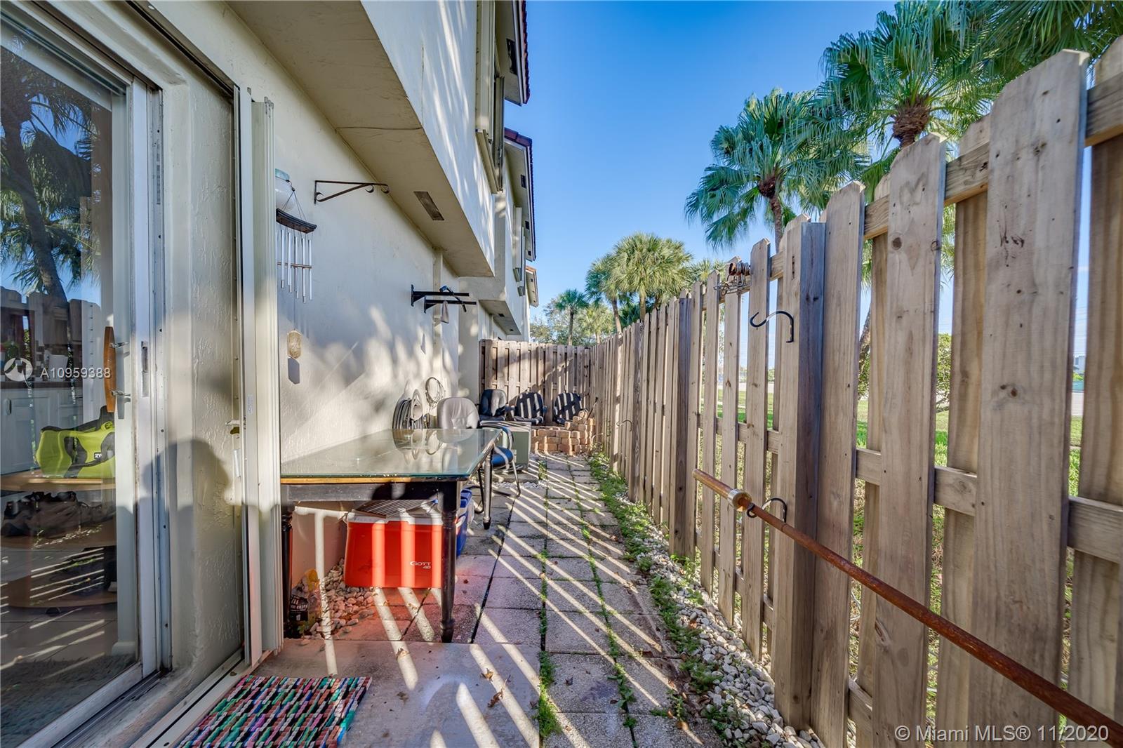 Pride in Ownership! This beautifully maintained corner home features 3 bedrooms and 2.5 bathrooms with a custom built bar area. The townhome is a corner unit but feels more like a single family home. The property features an updated kitchen and bathrooms and even a private backyard area. Complete with full hurricane protection, the property is centrally located near great shopping, dining, A rated schools and major highways. The entire property was recently re-plumbed to replace all the poly piping so insurance rates will be favorable. Home furnishings can be sold separately.