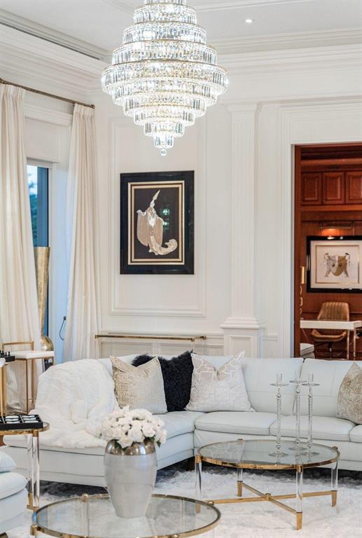 This Gatsby-like mansion is an entertainer's galore! The elegant waterway estate is located in the highly sought after Royal Plaza Drive, in the prestigious Las Olas Isles. Boasting over 35,229 square feet on a triple waterfront lot, and featuring over 12,000 square feet of living space, 310 feet of water frontage, a 1,600 square foot outdoor terrace, a 5,000 bottle wine cellar, and a separate guest house equipped with a custom collector's lounge and showroom, which allows you to showcase your luxury cars in the comfort of your own home. The property features glamorous chandeliers throughout, high-end finishes in all bathrooms and the kitchen, beautiful millwork throughout the home, grand staircases, hidden passages, high ceilings, elegant water features......