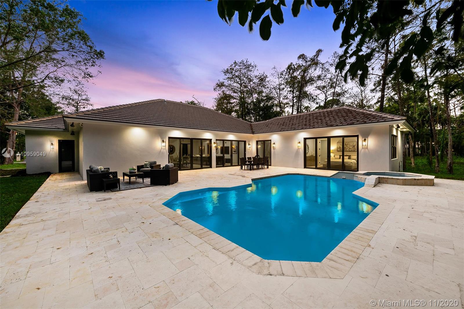 INSTANT EQUITY! Appraised at $1,075,000. Welcome to your new home in desirable Pine Tree Estates! Brand new 2020 construction modern estate w/no HOA on acre lot! BRAND NEW ROOF. Custom built residence w/spacious, one-story floor plan. 5 full bedrooms & 4 full bathrooms. Luxurious lagoon-style pool with spillover spa. New travertine + new pool equipment. Oversized driveway with upscale covered entry. New irrigation system, water filtration, and septic. Over $100,000 of site work completed. All IMPACT WINDOWS & DOORS. Premier finishes throughout. Italian Brescia Capraia polished marble countertops + waterfall kitchen island. Designer Fisher & Paykel pro-grade stainless steel appliances + custom hardwood cabinets. Pre-wired for low voltage, cable, alarm & gate systems. Parkland A Schools!