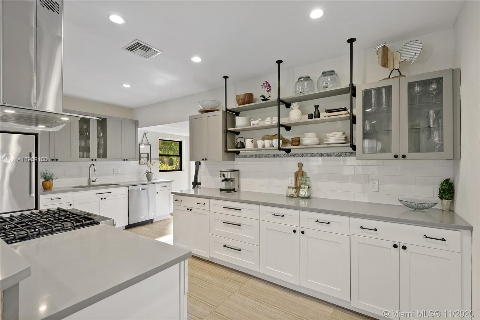 Completely renovated Victoria Park 3 Bedroom/2 Bath pool home. Large open kitchen in center of home with Kitchen Aid appliances, quartz countertops, gas stove, and unique open-shelving. Focal point of the home is the wood burning fireplace in the spacious living area. All windows and doors are hurricane impact. Bathrooms are modern and bright. Secluded backyard features pristine swimming pool in tropical setting. Paver driveway leads to detached 2 car garage with separate laundry room. Convenient location next to Holiday Park for tennis, dog park, and more! This home must be seen!