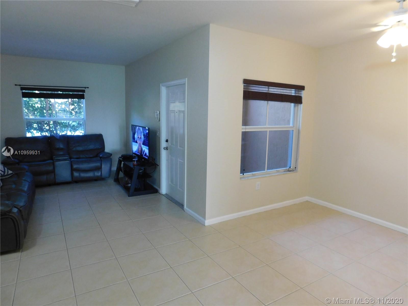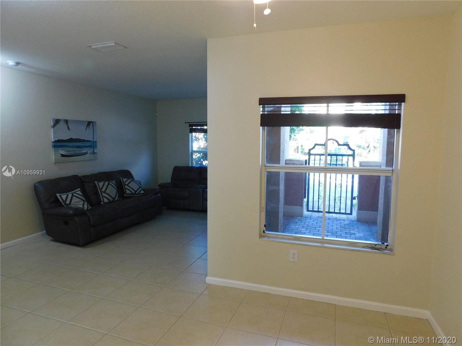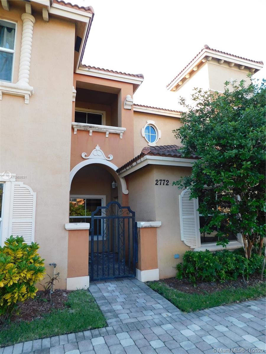 Unique and ready to move beautiful townhome in the heart of Miramar, FL. This 2 bedrooms and 2.5 bathrooms property is located in the quiet and gated community of Martinique No.2, minutes away from Miramar Square and Monarch Town Center. This property has stainless steel appliances, ceiling fans, tiles on first floor and wood floor on the two master bedrooms; both bedrooms with their own full bathrooms. First floor with half bathroom, breakfast area, dining/living room, formal dining and laundry. This property has two car spaces assigned, open porch and small patio in the back. Community offers pool and playground for children. **HOA is currently painting all buildings in the community ***