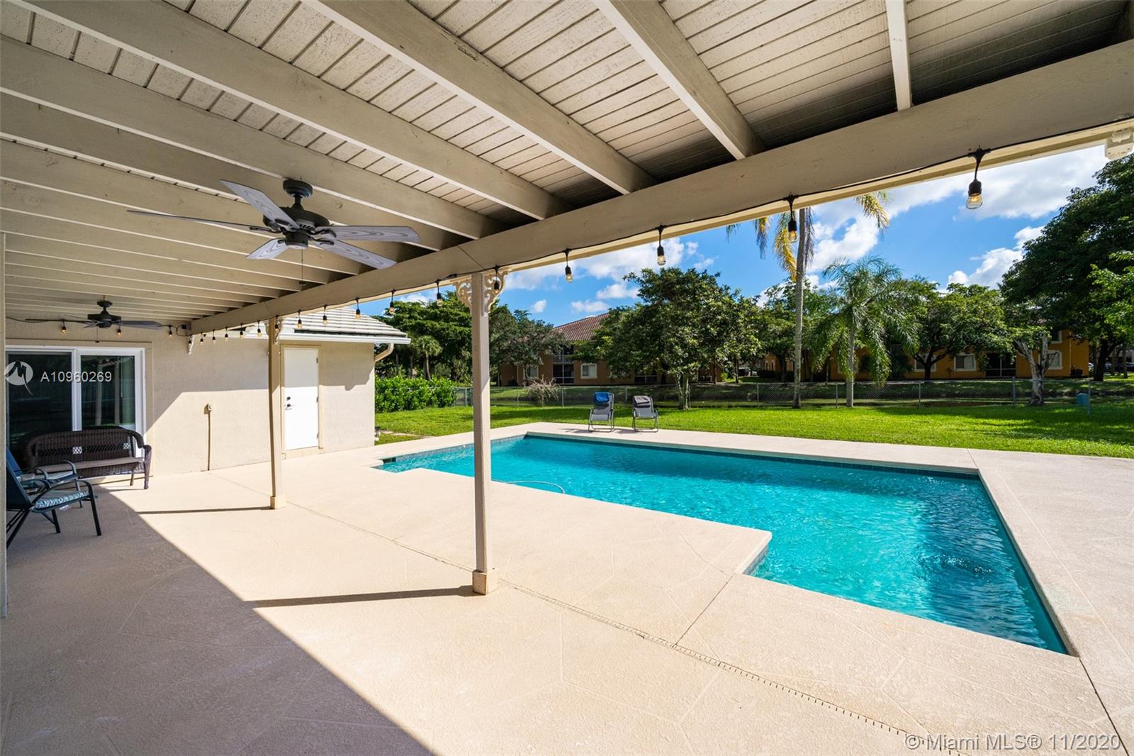 Elegant and renovated 3 beds 2 bath home in the neighborhood of Coral Springs. Perfect for a growing family, this home is in a great school district with elementary, middle, and high schools within walking distance. The home features a number of upgrades including a full home sound system with 5 dedicated zones, recently renovated bathrooms, brand new porcelain flooring in all bedrooms, ceiling fans, recess lighting throughout common areas and in the master bedroom. Fall in love with the covered patio overlooking your newly refurbished pool, updated exterior electrical power service panel, hurricane impact windows, and doors throughout the entire home, a double car garage with a hurricane grade double car garage door, new garage door motor, and epoxy flooring.