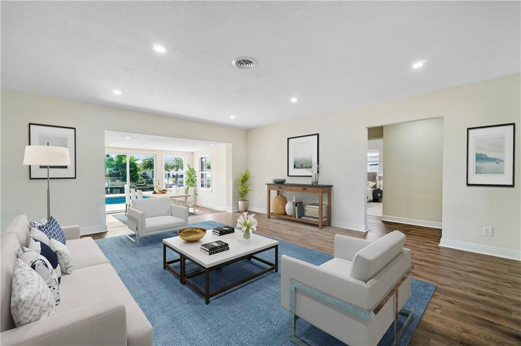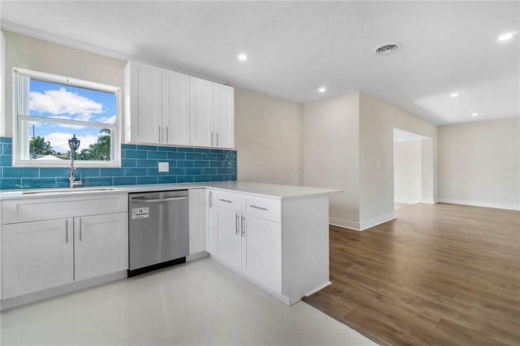 Back on the Market with a new hurricane impact front window! Completely remodeled! New kitchen with soft close shaker cabinets, quartz countertops, new appliances, new wood laminate flooring throughout the main living areas and 3rd bedroom, new electrical panel and electrical wiring throughout the house so its up to code, new seawall footer and dock, 2 car garage! Pool! and located on an Ocean Access canal! New recess lighting, interior/exterior paint, landscaping, etc! You name it! A must see and a steal at $654,900! Oh new circular brick pavered driveway! 3rd bedroom is small and would be best utilized as a office or kids room.