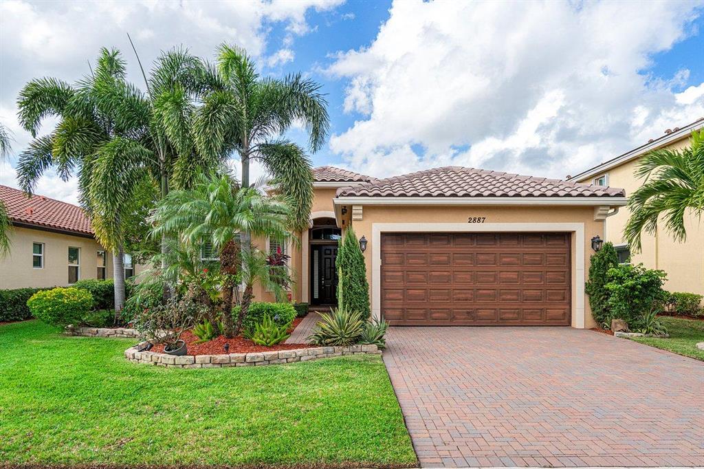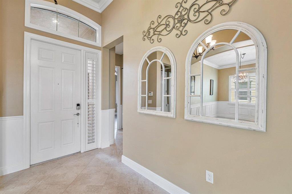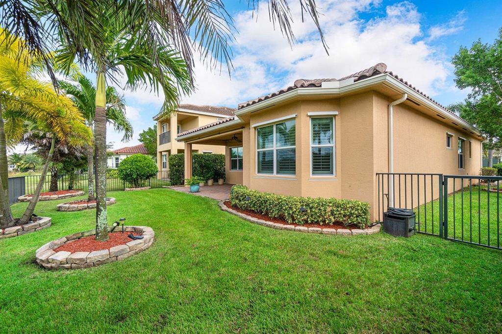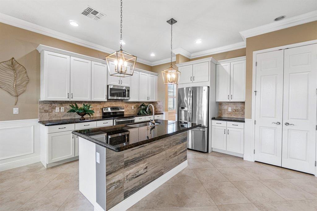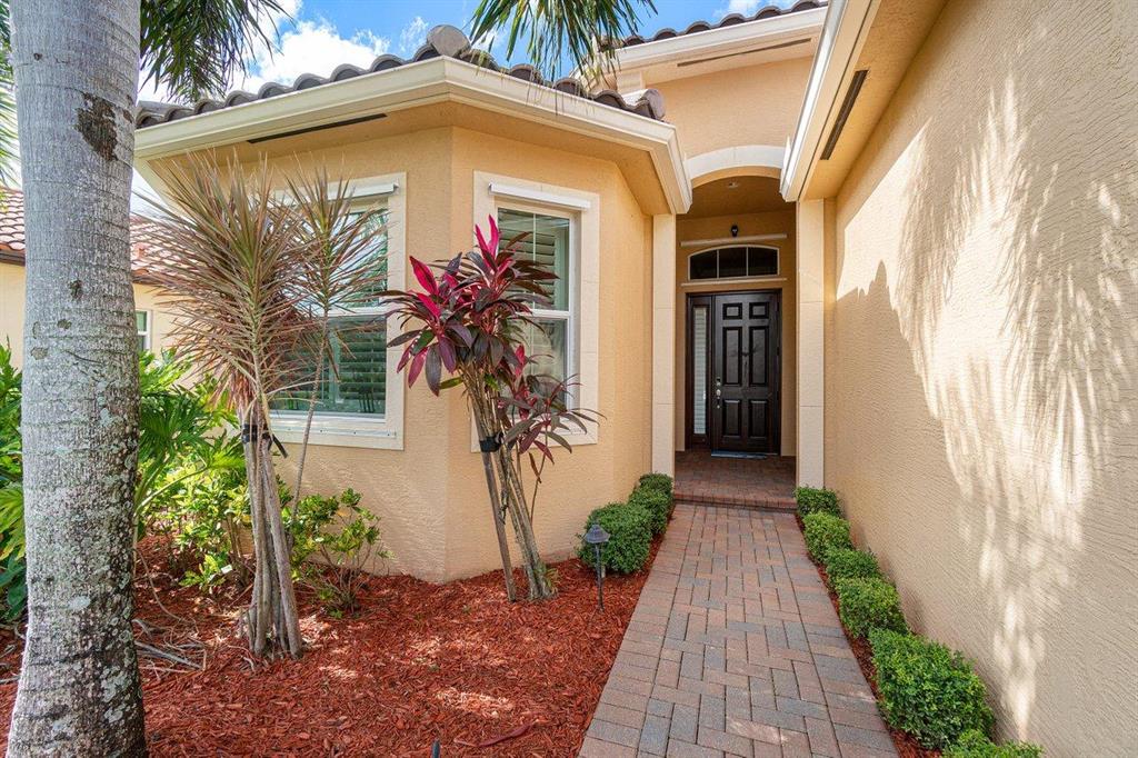 LIKE NEW BUT BETTER! This 3 bed 2 bath split-design WATERFRONT Smart Home in the beautiful & pristine Portosol Neighborhood has been upgraded to perfection! Tranquil preserve views & stunning architectural details await as you enter the foyer & marvel at the designer touches that give this home a high-end feel. The custom wood accent wall in the living room matches the wood front of the kitchen island which beautifully tie the rooms together. Kitchen boasts tumbled marble backsplash, stainless appliances, granite counters & designer cabinetry. Relax or entertain family/friends on your covered, extended stone patio overlooking the water-filled grassy preserve & enjoy bonus lake views as you step into the yard. Master suite is spacious w/ water views, his & hers closets w/ custom shelving, &