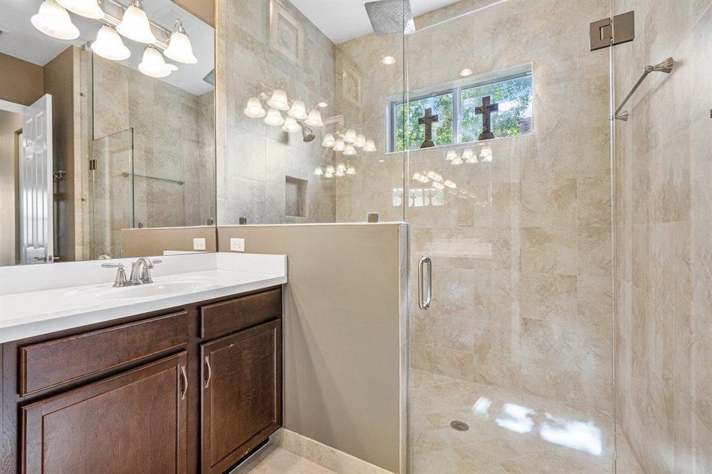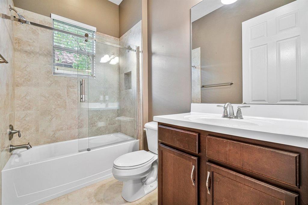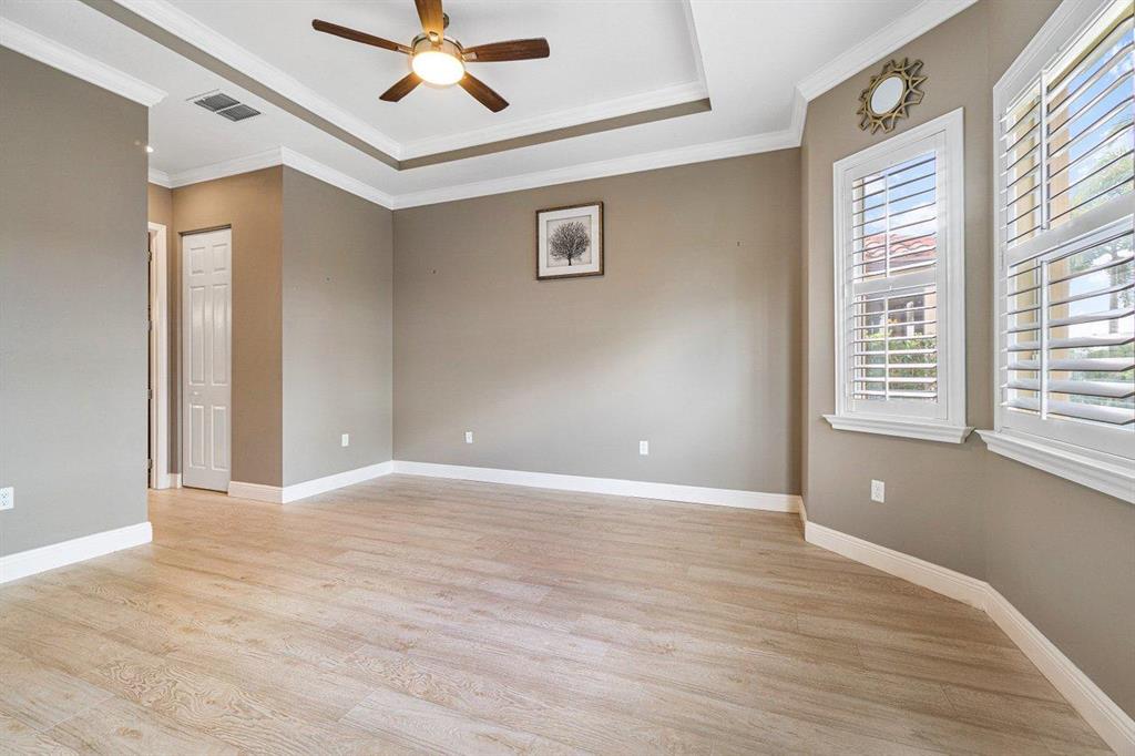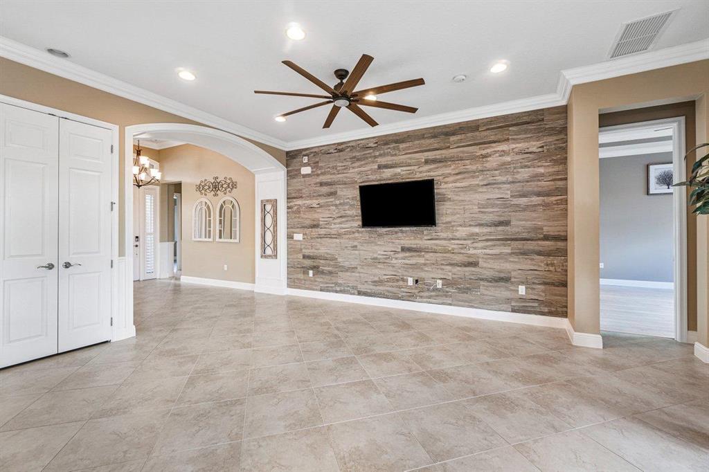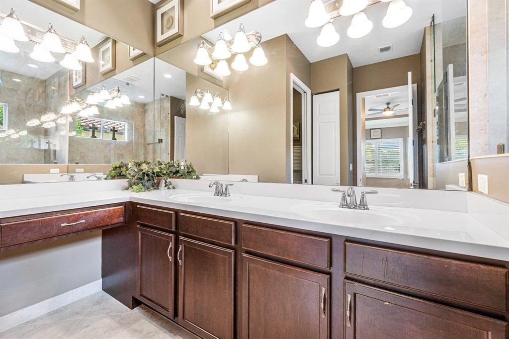 LIKE NEW BUT BETTER! This 3 bed 2 bath split-design WATERFRONT Smart Home in the beautiful & pristine Portosol Neighborhood has been upgraded to perfection! Tranquil preserve views & stunning architectural details await as you enter the foyer & marvel at the designer touches that give this home a high-end feel. The custom wood accent wall in the living room matches the wood front of the kitchen island which beautifully tie the rooms together. Kitchen boasts tumbled marble backsplash, stainless appliances, granite counters & designer cabinetry. Relax or entertain family/friends on your covered, extended stone patio overlooking the water-filled grassy preserve & enjoy bonus lake views as you step into the yard. Master suite is spacious w/ water views, his & hers closets w/ custom shelving, &