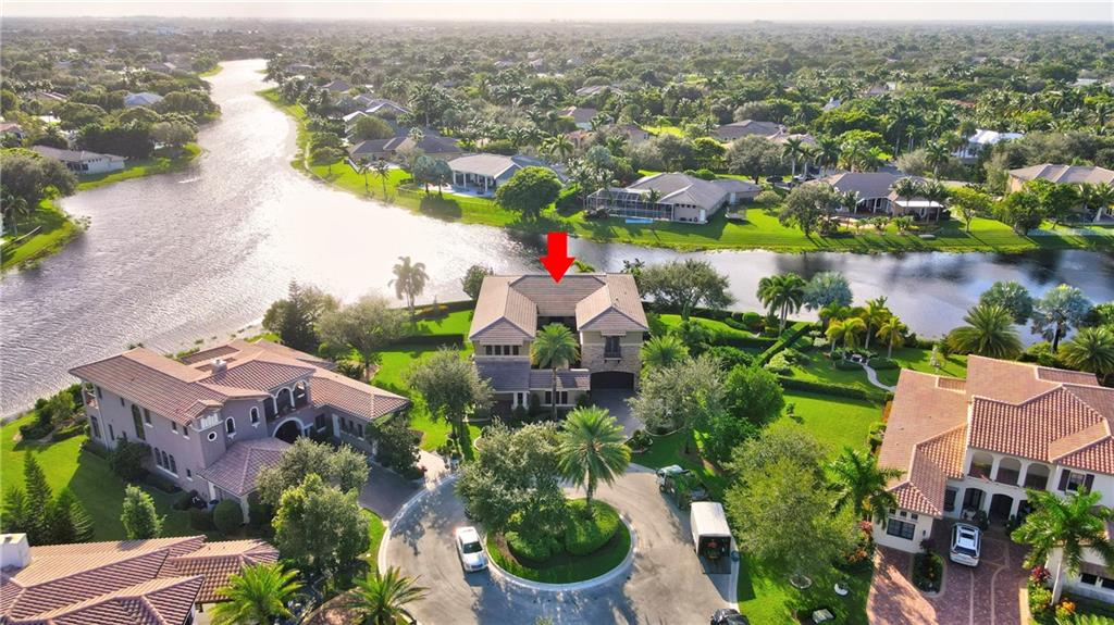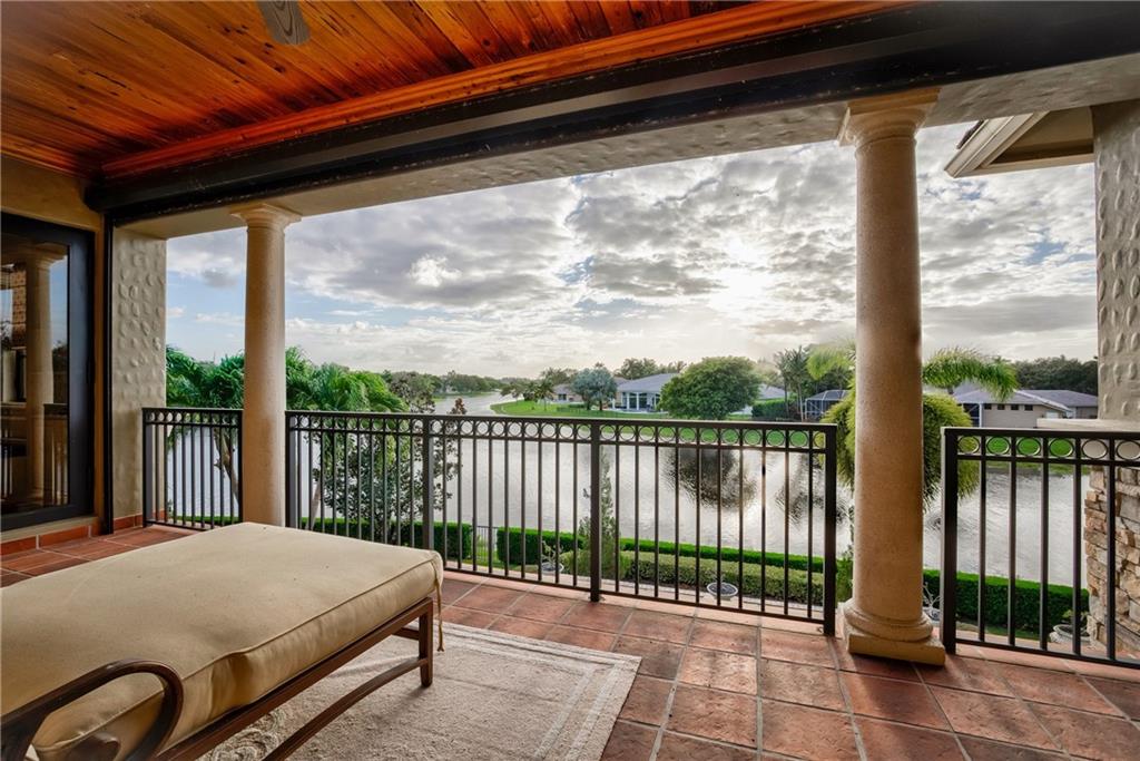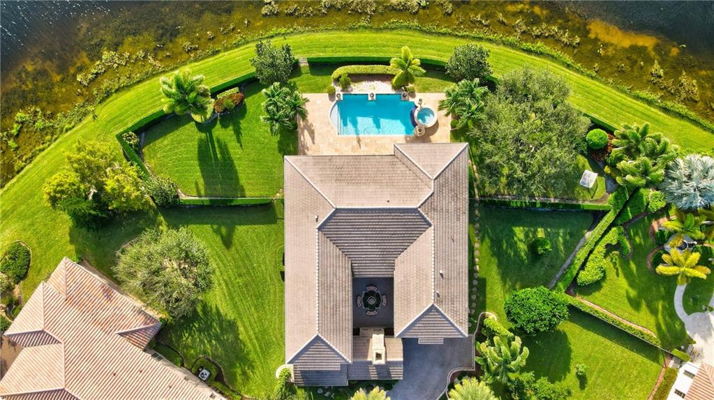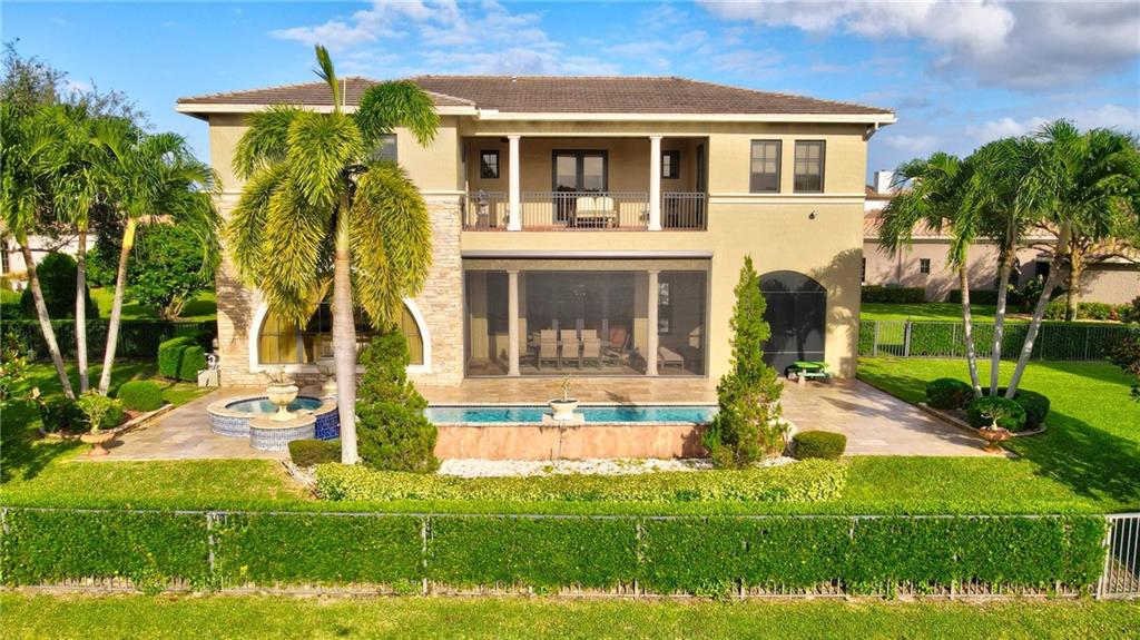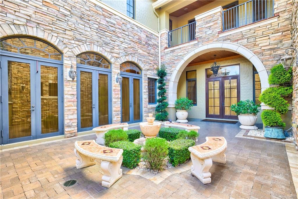 Magnificent Prado Model sits on a wide water expanded oversized cul de sac lot. Perfectly manicured landscaping surrounds the private pool & spa. Walk up to a private courtyard w fountain, benches & outdoor fireplace. Step into a mini tuscan mansion featuring 5 BEDROOMS, 4.5 BATHS, + BONUS RM, FORMAL LIVING $ DINING RMS. The gourmet kitchen hosts SS appliances, dbl ovens, large center island, 42" wood cabinets, granite, pantry, serving bar & a wall of windows overlooking the pool and water. Wine cellar, marble & two toned top of the line wood floors throughout, no carpet. One bedroom, 1.5 baths down. Master bedroom has an oversized balcony overlooking the expansive water views. Attention to detail is found in this beautiful old world light tuscan charm. Location, Location, Location!