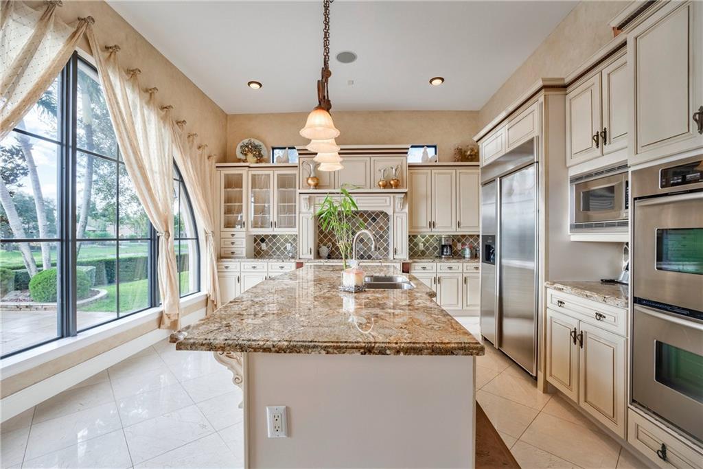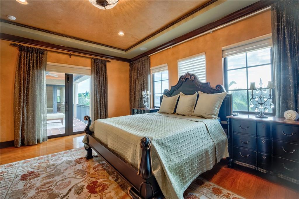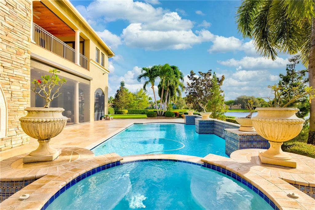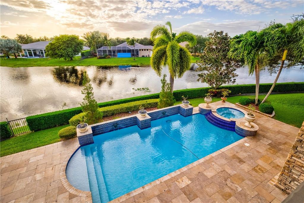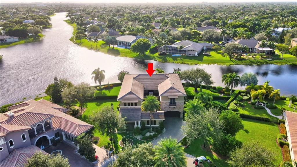 Magnificent Prado Model sits on a wide water expanded oversized cul de sac lot. Perfectly manicured landscaping surrounds the private pool & spa. Walk up to a private courtyard w fountain, benches & outdoor fireplace. Step into a mini tuscan mansion featuring 5 BEDROOMS, 4.5 BATHS, + BONUS RM, FORMAL LIVING $ DINING RMS. The gourmet kitchen hosts SS appliances, dbl ovens, large center island, 42" wood cabinets, granite, pantry, serving bar & a wall of windows overlooking the pool and water. Wine cellar, marble & two toned top of the line wood floors throughout, no carpet. One bedroom, 1.5 baths down. Master bedroom has an oversized balcony overlooking the expansive water views. Attention to detail is found in this beautiful old world light tuscan charm. Location, Location, Location!