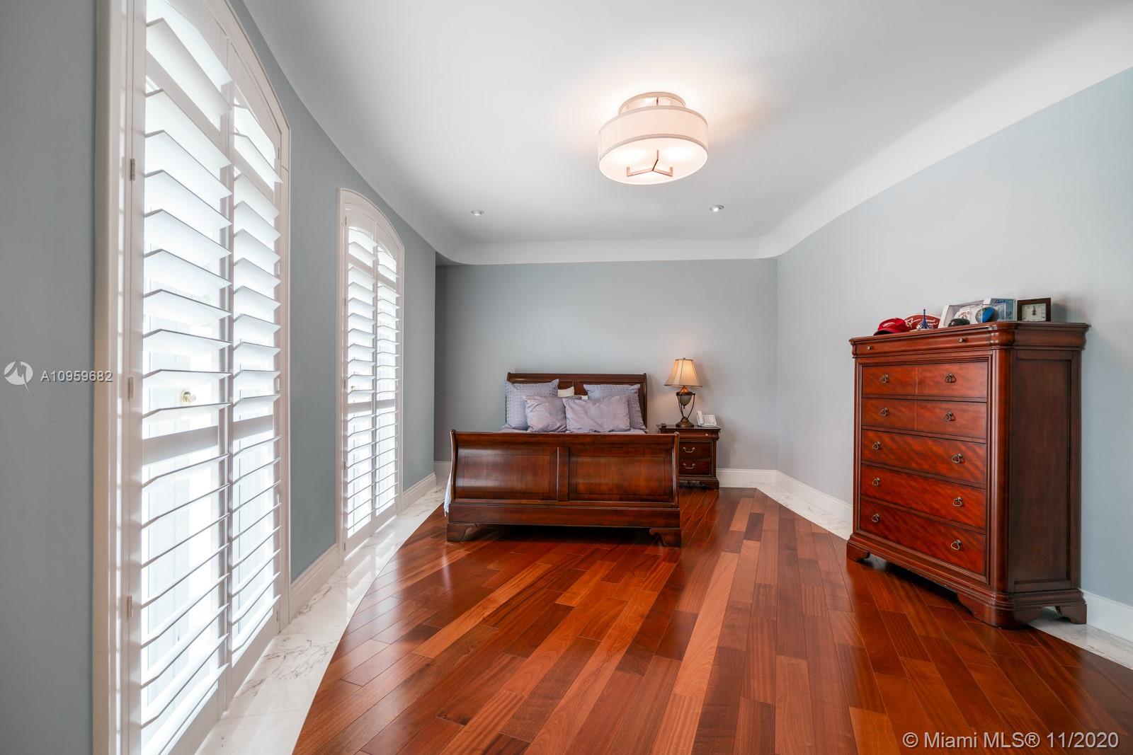 Sophisticated French Transitional masterpiece on a corner lot.This unique sanctuary features one of a kind style & leaves no detail spared.Upon entering 12ft ceilings & custom millwork are breathtaking.Principal suite is adorned with grand entrance,fireplace & extensive master spa bath.Home has 2 master suites & large balconies from every bedroom that flow right thru to the exquisite outdoor spaces.Solid wood professional chef kitchen fully equipped.Stunning dining w 900 bottle wineroom.Smart home w ample measures of security & fiber optic lighting thru-out.Full house Generator, Elevator, Theatre & Guest House.Ultra luxury living, wood & marble flooring throughout. This rare design was done with the highest quality finishes & professional landscaping. This gated gem is truly one of a kind.