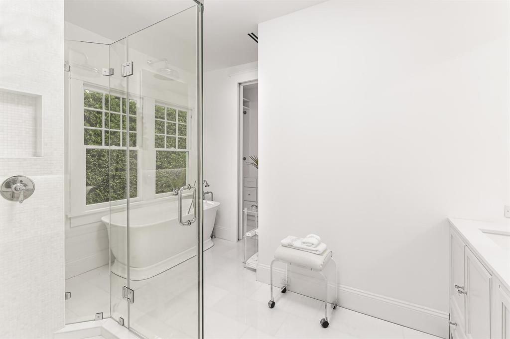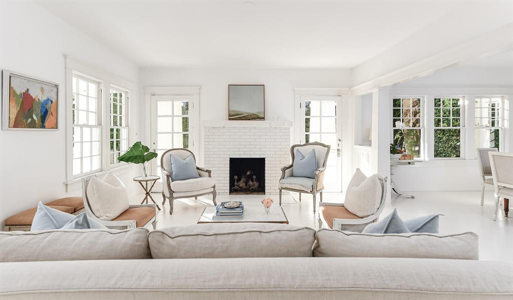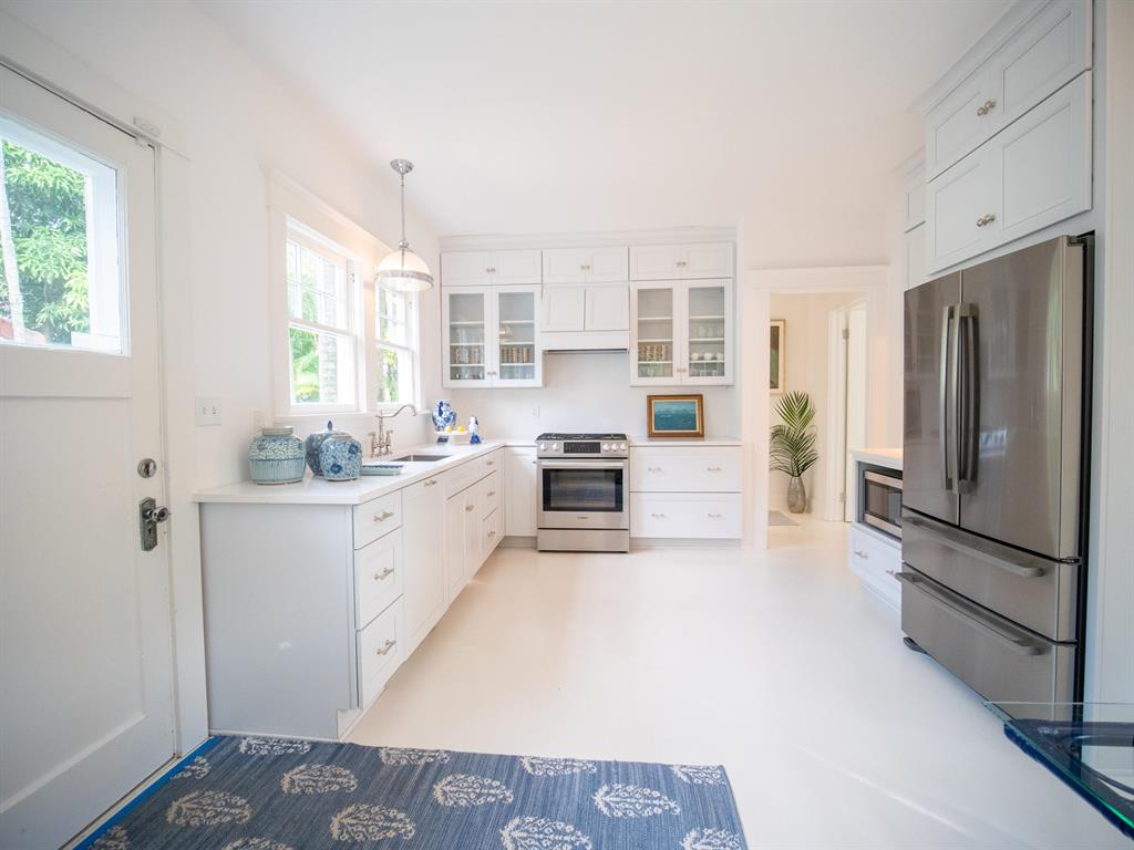 Located on one of the most desirable in town streets, this freshly renovated and ideally located chic home is the perfect Palm Beach retreat. The residence is situated in the center of an oversized 75' x 122' lot with generous green space in the front, rear and side gardens with ample distance from neighboring homes and allowing the lovely ocean breezes, and an abundance of natural light to completely surround the property. The additional greenspace this lot provides is also ideal for children and pets. The landscape has a large hedge for security and privacy, as well as majestic mature palm trees and lovely tropical gardens. The sun filled home has newly painted high gloss white floors and beautiful open living spaces. Two French doors in the living room open to the front porch, wi