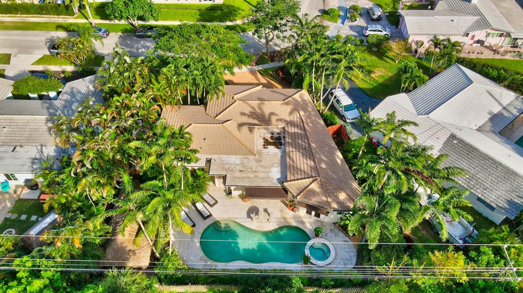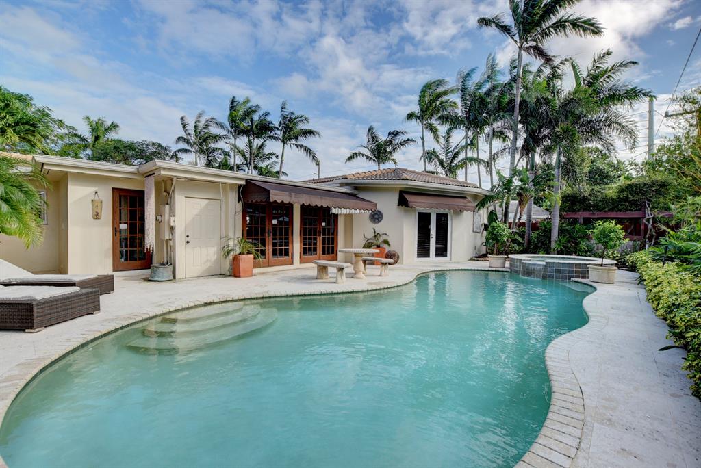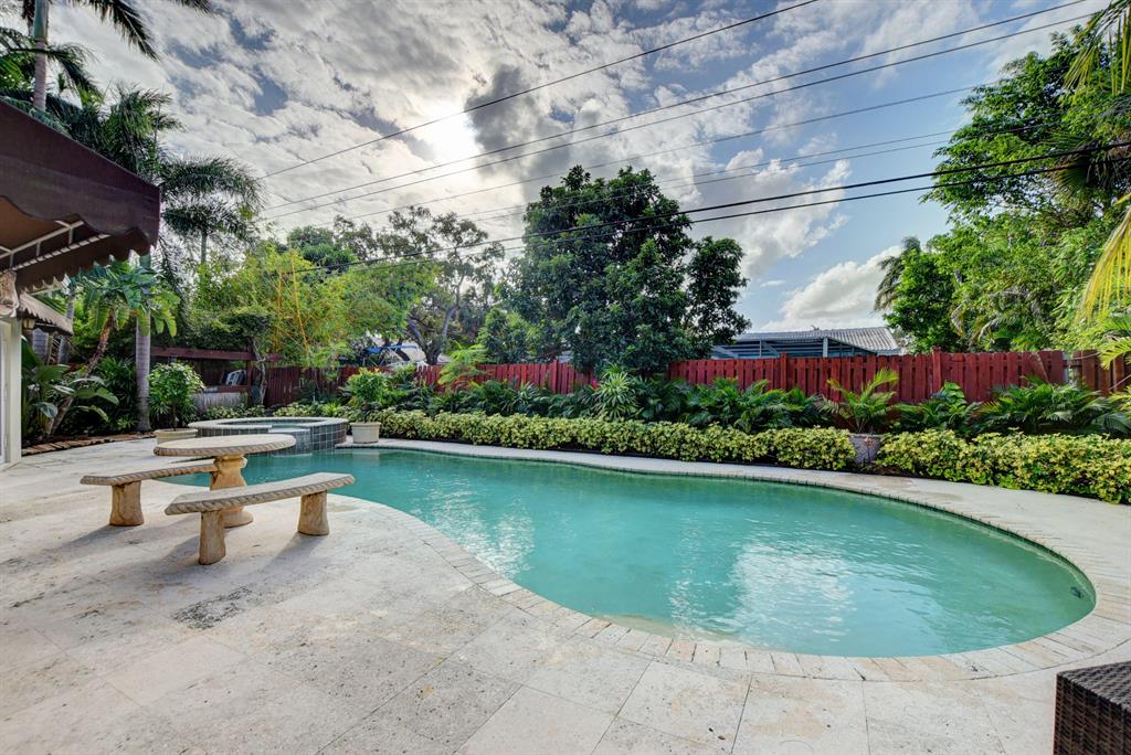 Updated and expanded 3/2 plus Florida room pool home in East Boca. Enjoy the large master suite and custom master bath suite along with marble flooring throughout, impact windows, French doors, Chicago Brick driveway and walkways, free form pool with spa. You'll love the oversized Tiki Hut surrounded by lush tropical landscape in the backyard providing lots of privacy and great for entertaining. The covered front porch is a wonderful place to sit out in the evenings to enjoy the warm Florida breezes. Excellent location, A rated schools, easy access to shops, restaurants and a just a bike ride away to the beaches.