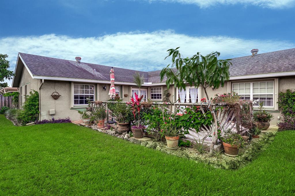 Come see this turnkey West Boca Raton home with 4/2 and 2 car garage and fully fenced back yard with great patio deck for entertaining, lush landscaping and fruit trees! Home offers custom kitchen, brand new stainless steel appliances and granite countertops. Split plan with master on one side and 3 bedrooms 1 bath on the other. Tile throughout with wood floors in bedrooms. Walk-in closet in master! Accordion shutters for hurricane protection, and an alarm system already installed! Community offers two playgrounds, pool, tennis courts, and basketball court. This is a great neighborhood with sidewalks throughout. Excellent ''A'' grade schools, and very low HOA fee. Close to shopping, and dining and only a 20 minute drive to Boca Raton beaches!