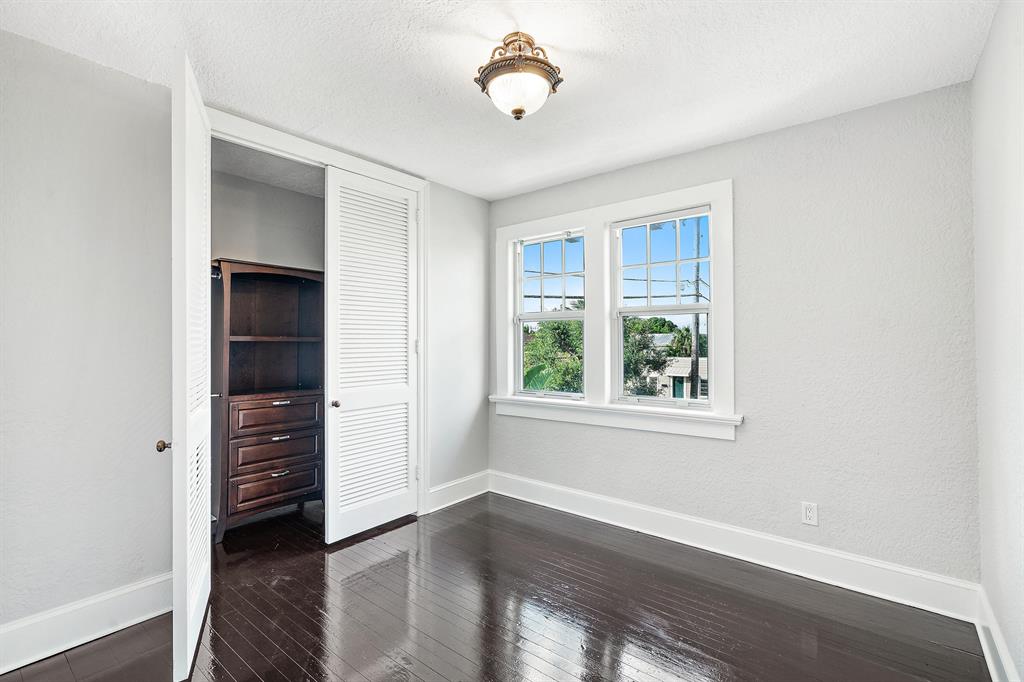 Antique Row gem! 1931 Old Spanish charmer with guesthouse within walking to distance to local shops and restaurants. The main home is almost 1700 sq ft under air plus a beautiful front porch and screened lanai off of the kitchen, 3 large bedrooms with amazing closet space, upstairs laundry , 2.5 baths. Large updated kitchen and a den or home office. Gorgeous working fireplace and solid hardwood throughout. Newer a/c, hot water heater and newly resurfaced roof. Large pavered driveway and patio allow for plenty of parking. The detached garage has a renovated 1/1 guest apartment with separate electrical meter and a lower unfinished space would be a fantastic workshop or storage. Tour this standout home today!
