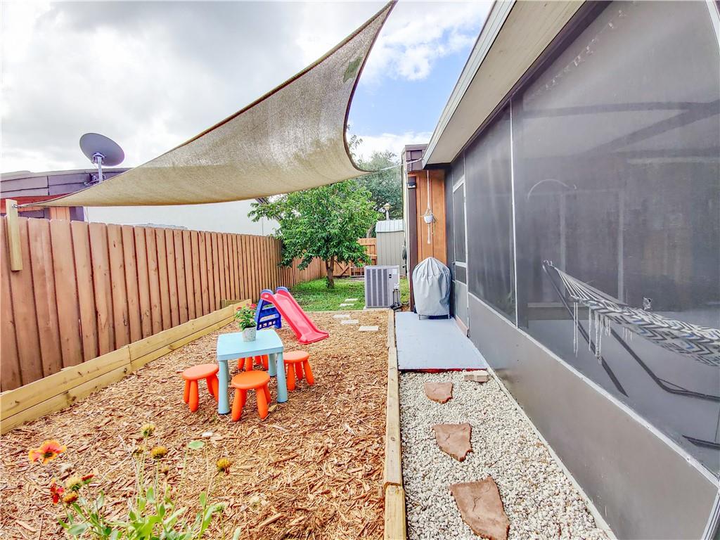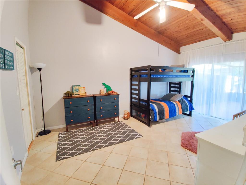 Spectacular one story / corner villa with exposed vaulted cedarwood beams throughout. Remodeled bathroom. Newer stainless steel appliances. BONUS LOFT ROOM - the perfect space for a home office, playroom or homeschooling room. The AC and Electrical was replaced in 2019 and the roof is less than 8 years old. Rear glass sliders (include accordion shutters) open to the spacious screened patio overlooking a butterfly garden and fruit trees. This villa is only one minute walk to the neighborhood lake/playground/jogging/stroller path. MASK WILL BE REQUIRED