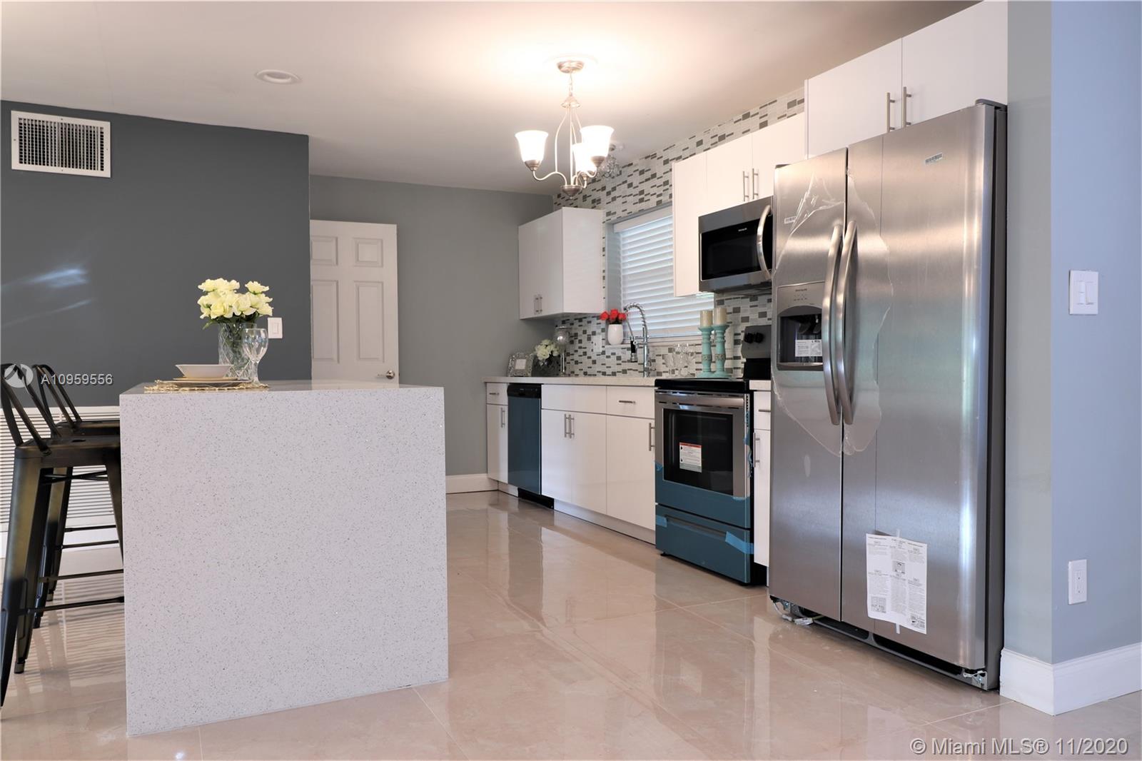 Luminous elegant single family home with 3 Bedrooms,2 Full Bath, completely remodeled from head to toe in a beautiful neighborhood.New Roof, New A/C on permit.New tile Flooring through home and Wood laminate in bedrooms.New waterline from meter through the house.New Sewer connection. New hard wood vanities w/Glass Doors in bathrooms.All doors are New.New quartz counter top on wood cabinets with New SS Appliances. New full size Washer and Dryer. New plumbing and Electrical Fixtures. New irrigation system with New piping,timer and heads. New exterior and interior electric Panel, new electric wiring almost entire of the house. New Smoke detectors.Freshly painted interior and exterior building. Centrally located in heart of Fort Lauderdale and close to highway and everything .No HOA,Must See.