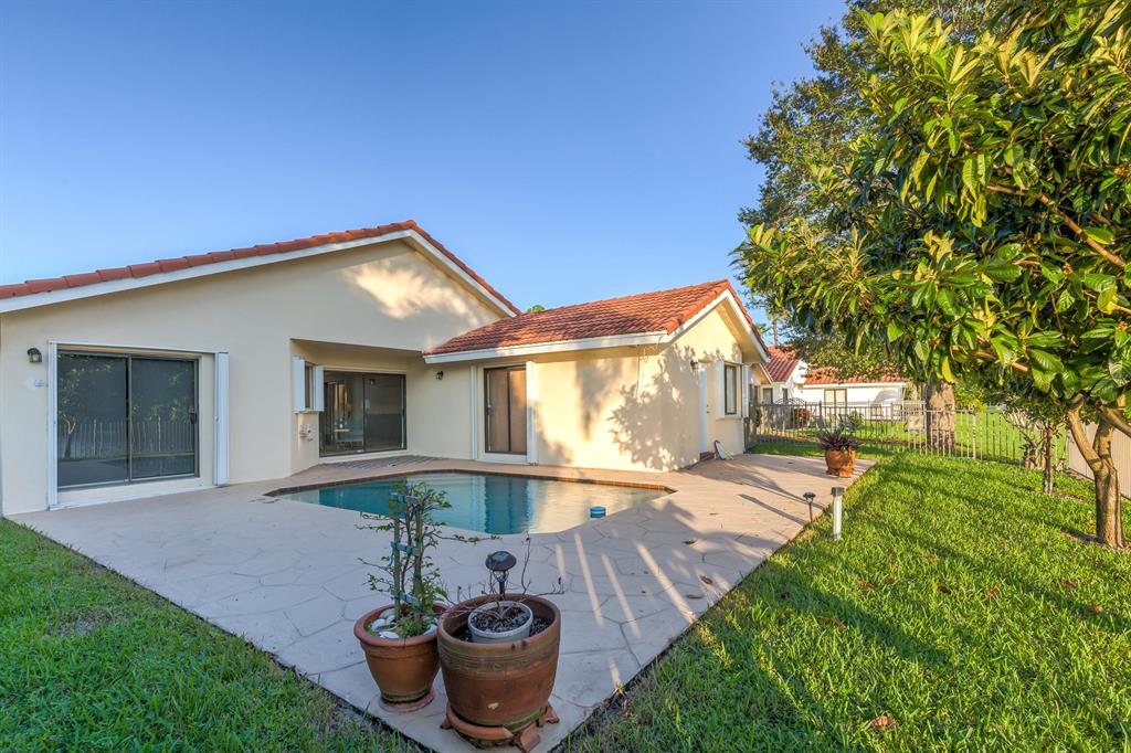 Welcome to ''Vista Verde'', central Boca's most Desirable and Intimate Community! In a beautifully landscaped and relaxing neighborhood set among lakes and parks, this gorgeous home is literally steps away from the brand new Verde Elementary School and upscale shopping and dining at Boca's Town Centre Mall. Featuring a spacious vaulted ceiling open floor plan with stunning lake views from virtually every room, gorgeous hardwood and travertine tile floors, plus eat-in kitchen with stainless appliances. Stunning wide granite topped bar in the kitchen/family room area. Master suite bath features magnificent slate tiles with dual sinks and large soaking tub. Enjoy the sounds of nature and sunsets over the lake from your private pool and deck. Vista Verde homes seldom are for sale, visit soon!