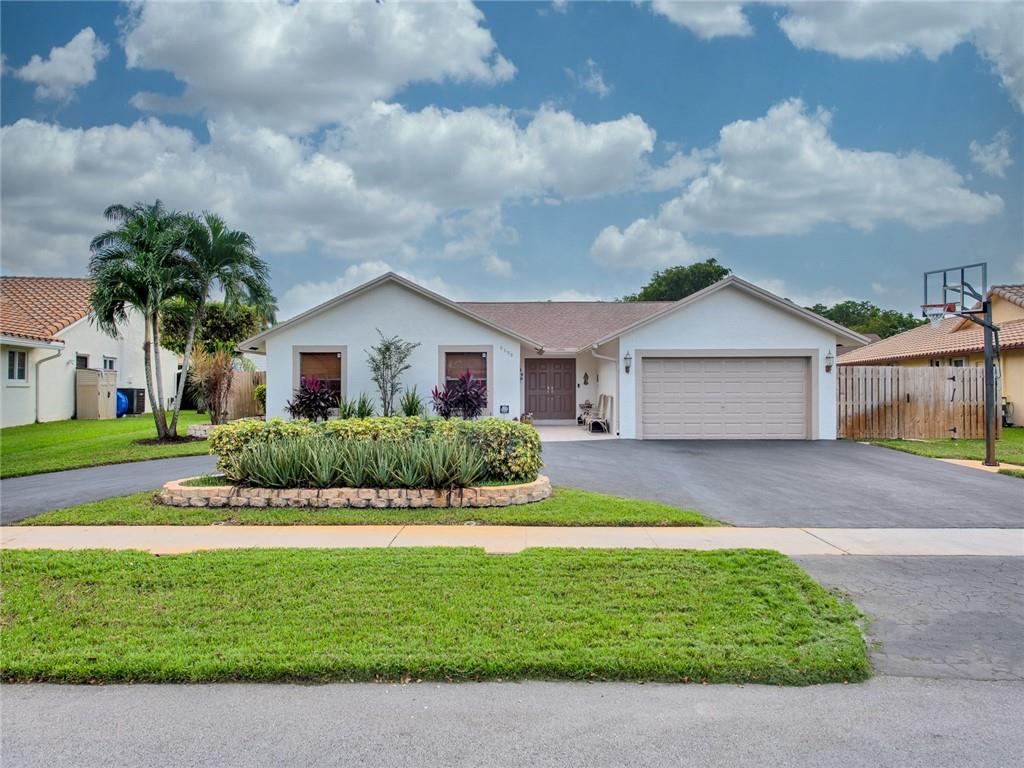Wonderful four bedroom home in desirable Jacaranda Lakes. Centrally located close to schools, shopping, city parks and recreation with short drive to local restaurants and major highways. Oversized interior lot with private fenced rear yard area. Custom built oversized inground pool (32’x 16’) with jacuzzi jet sitting deck. Newer Trane central air unit with updated insulated ductwork system (2017). Entertaining Great Room with vaulted ceilings and hi-hat lighting. Updated eat-in kitchen with Kraftmaid cabinets, Silestone counters, and island ideal for food prep. Updated bathrooms with Kraftmaid cabinets and tile flooring. ***$10k Seller Credit to Buyer(s) (Can be used towards hurricane shutters, carpet/flooring replacement in bedrooms, or towards any other misc items or repairs, etc...)***