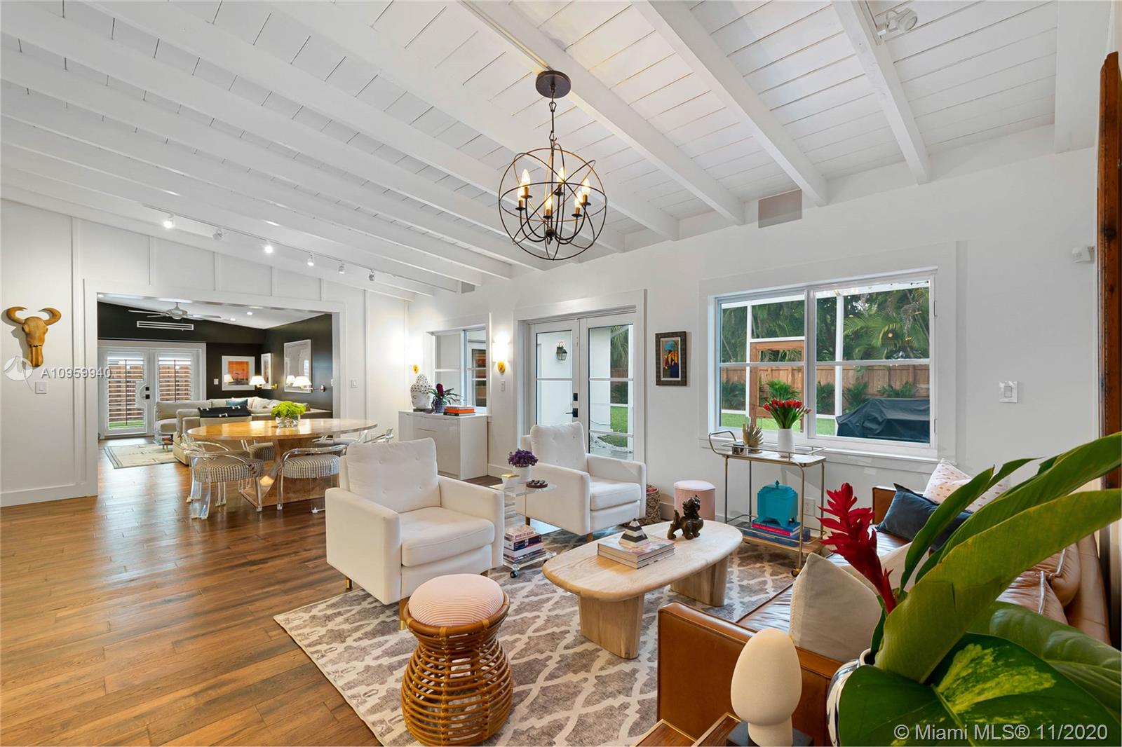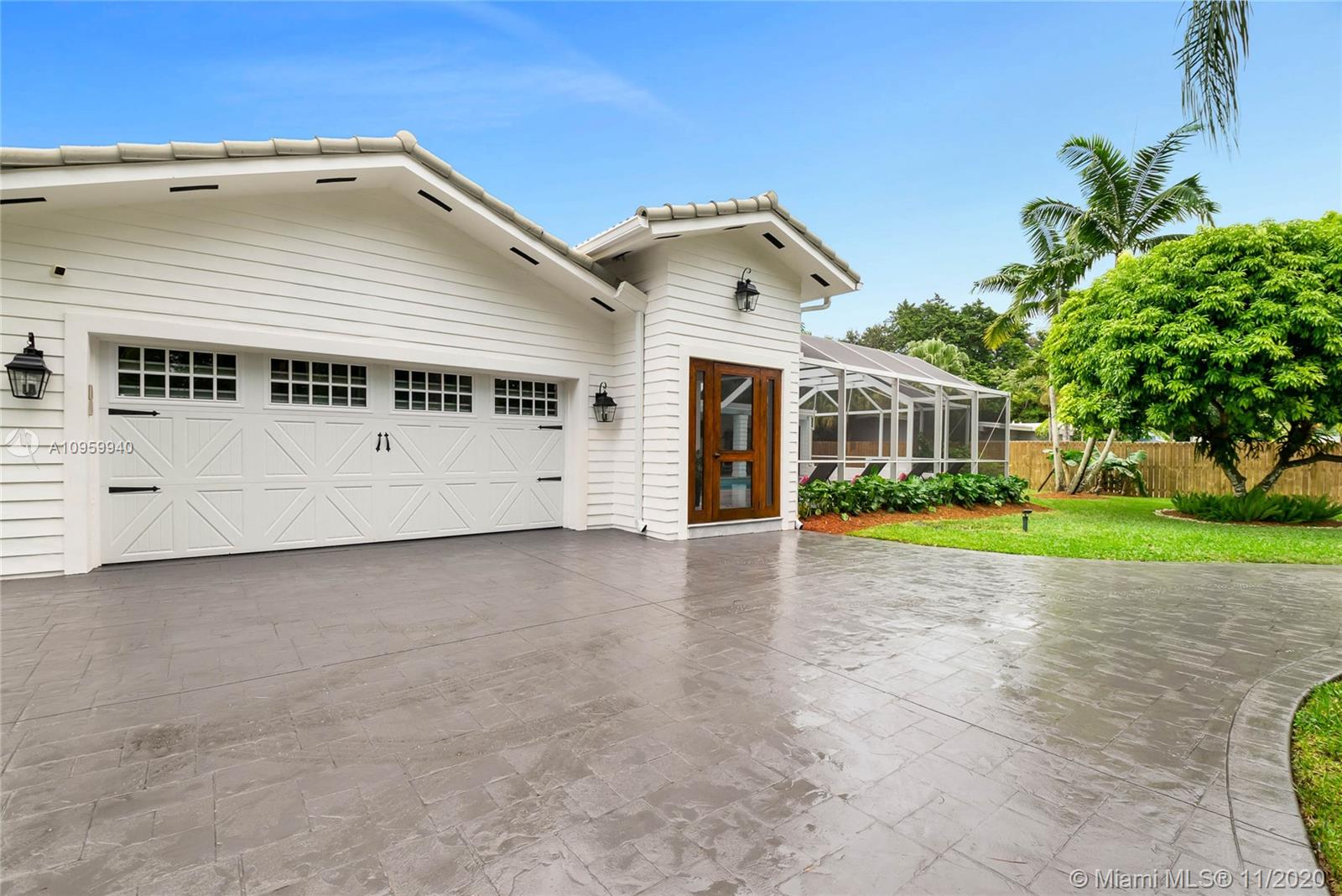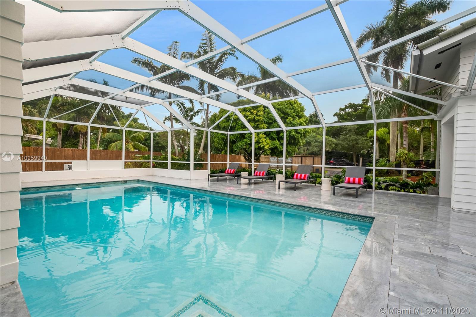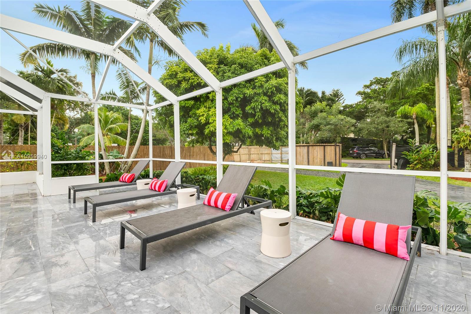 Roof & front fence to be replaced PRIOR to closing by owner with approved permits from City of Pinecrest. Enter the front privacy gates to a stylish and chic, renovated half-acre estate. Designed around a beautiful pool courtyard the lifestyle this property conveys is flexible for family weekends & entertaining. Gorgeous eat-in kitchen is a place to congregate & adjacent to French doors opening up to screened-in pool & patio. Fantastic spaces include family room w/artistic built-ins & a screened-in rear terrace perfect for lounging. Living room & dining rooms open to the kitchen-very open floor plan! Lot configuration provides ample grassy area in backyard for pets and family soccer matches. Perks include complete privacy from street, vaulted ceilings & fruit trees.
