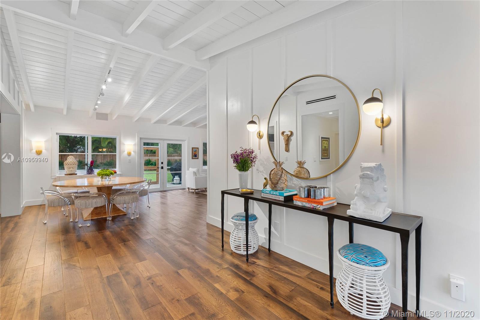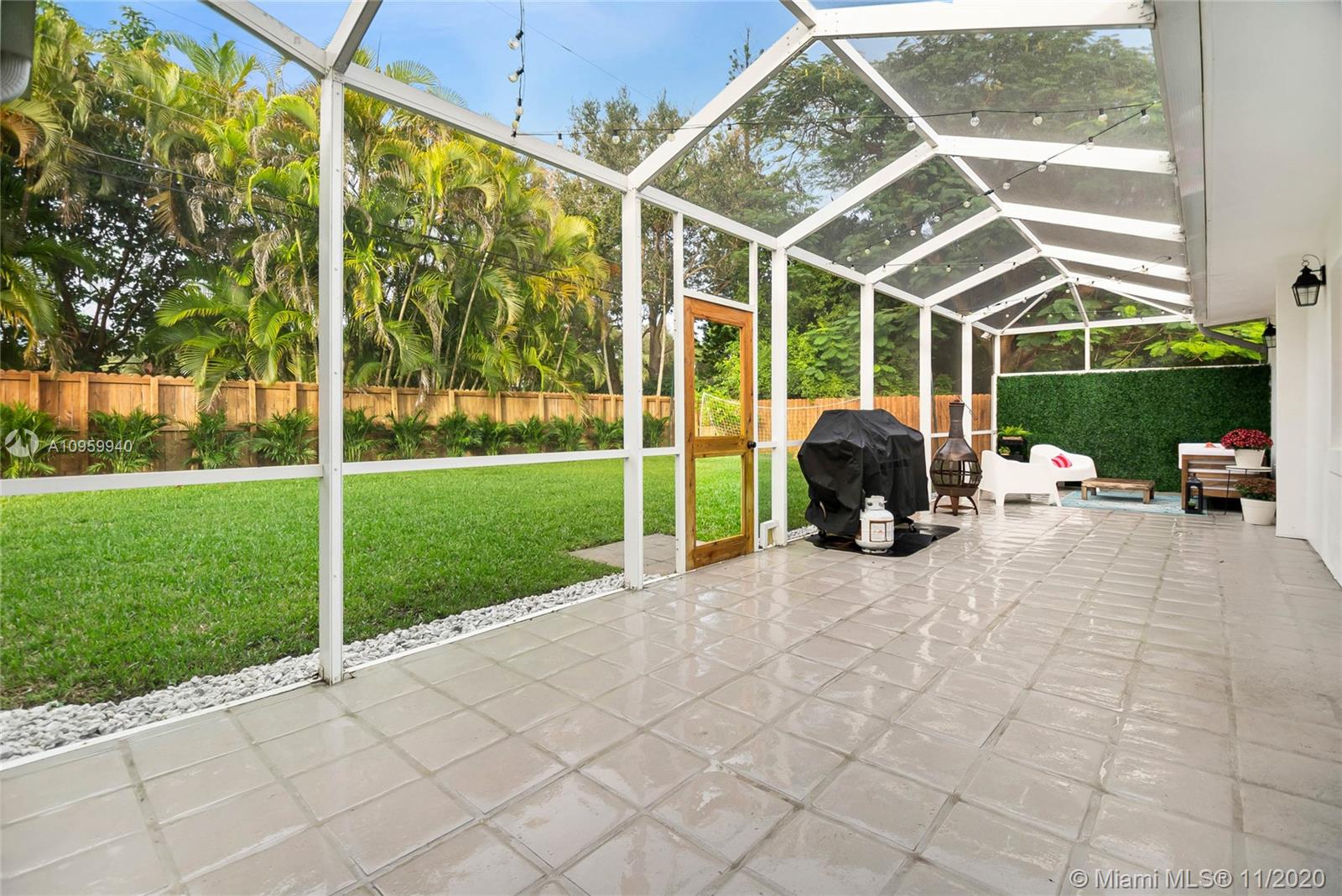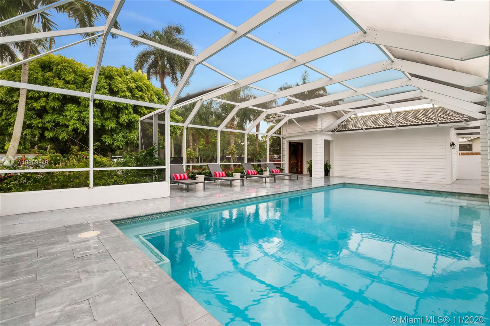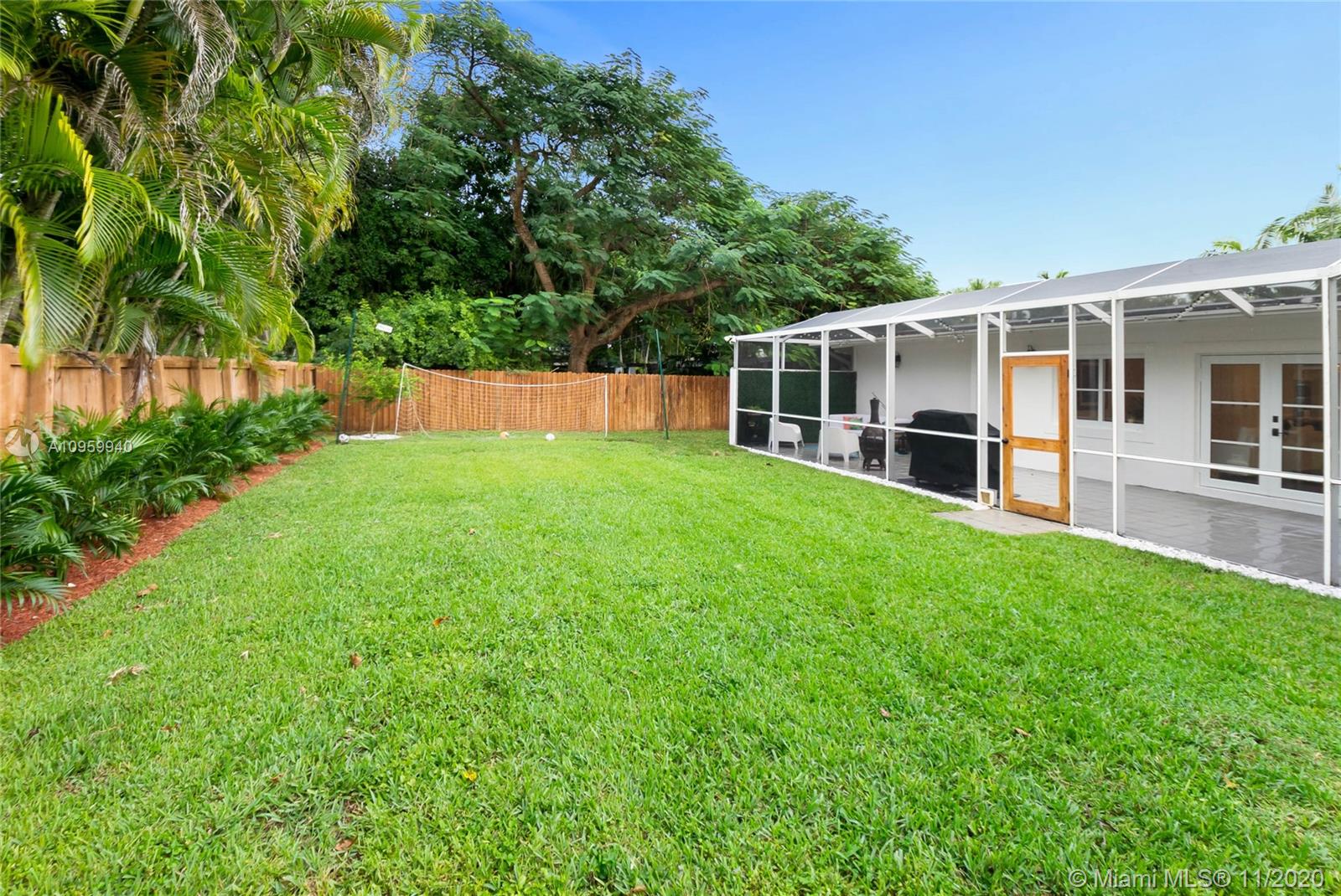 Roof & front fence to be replaced PRIOR to closing by owner with approved permits from City of Pinecrest. Enter the front privacy gates to a stylish and chic, renovated half-acre estate. Designed around a beautiful pool courtyard the lifestyle this property conveys is flexible for family weekends & entertaining. Gorgeous eat-in kitchen is a place to congregate & adjacent to French doors opening up to screened-in pool & patio. Fantastic spaces include family room w/artistic built-ins & a screened-in rear terrace perfect for lounging. Living room & dining rooms open to the kitchen-very open floor plan! Lot configuration provides ample grassy area in backyard for pets and family soccer matches. Perks include complete privacy from street, vaulted ceilings & fruit trees.