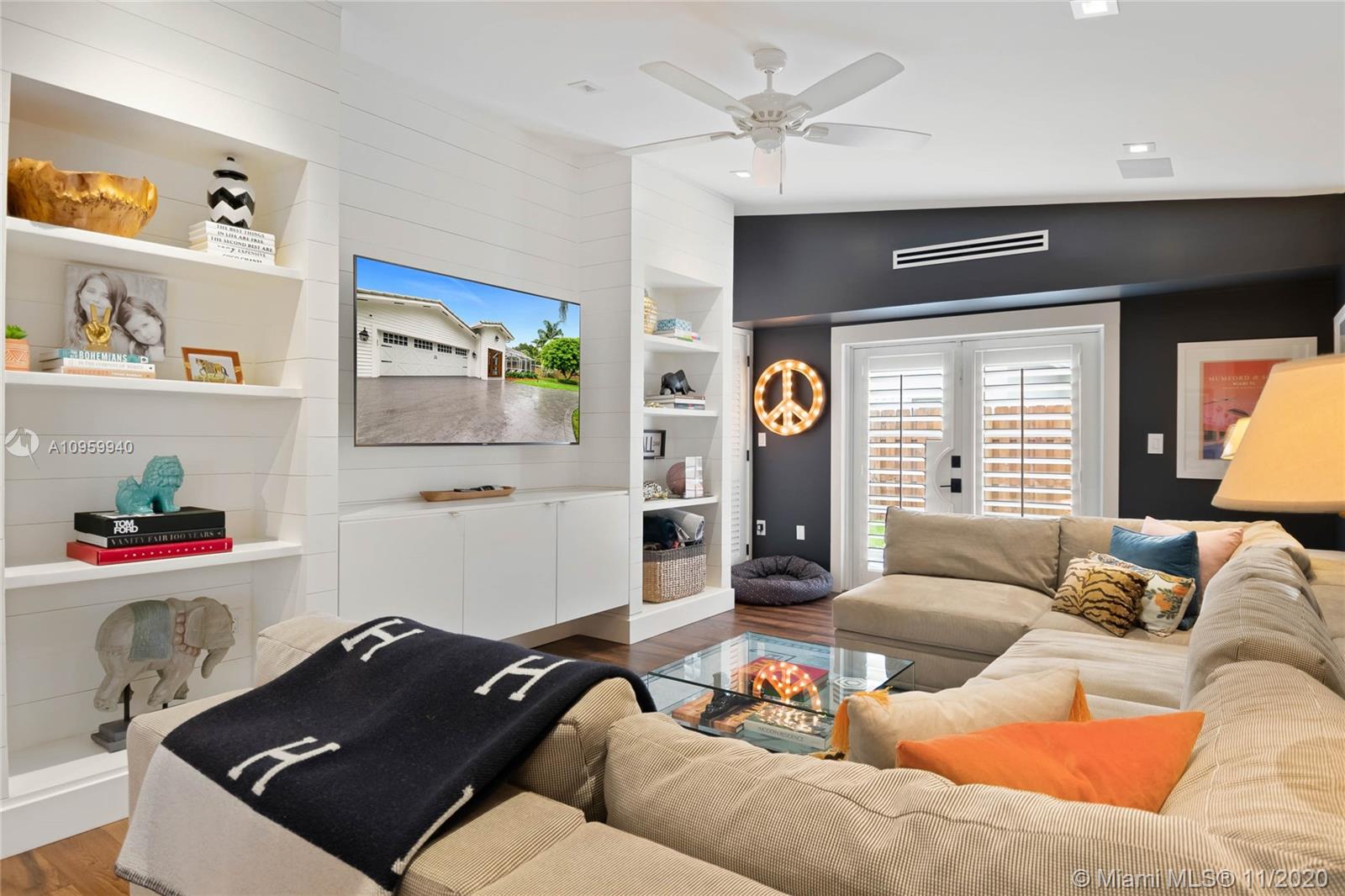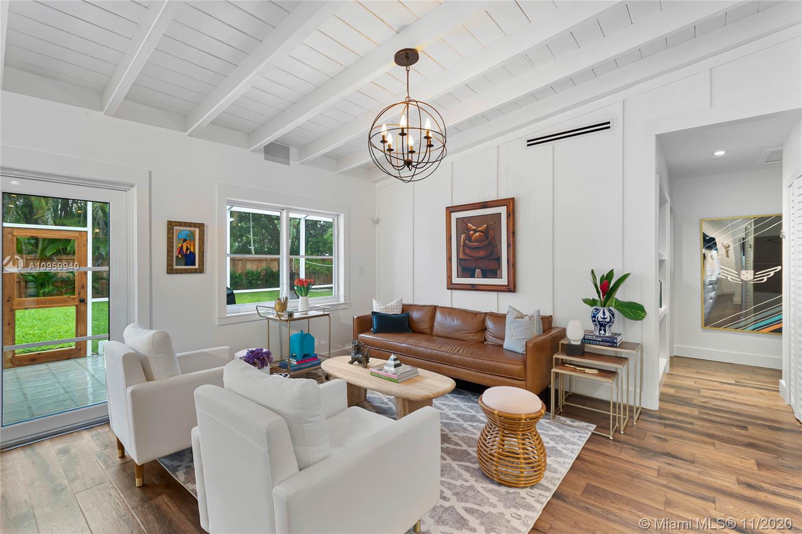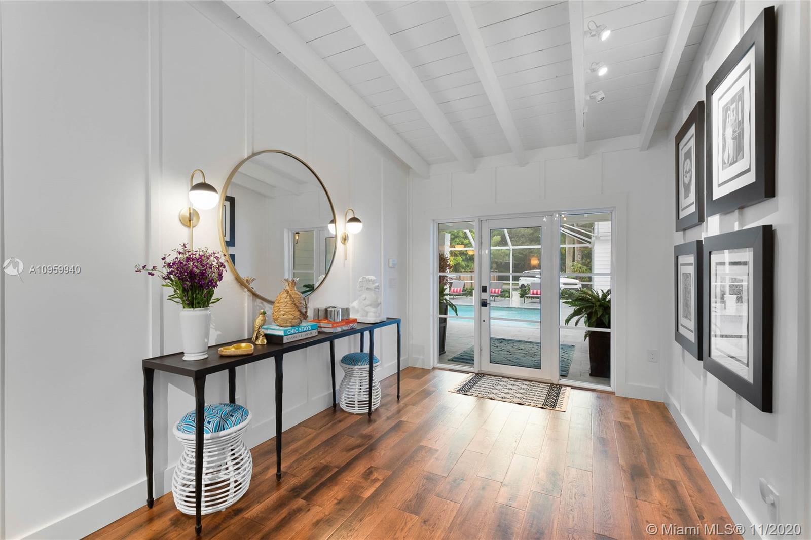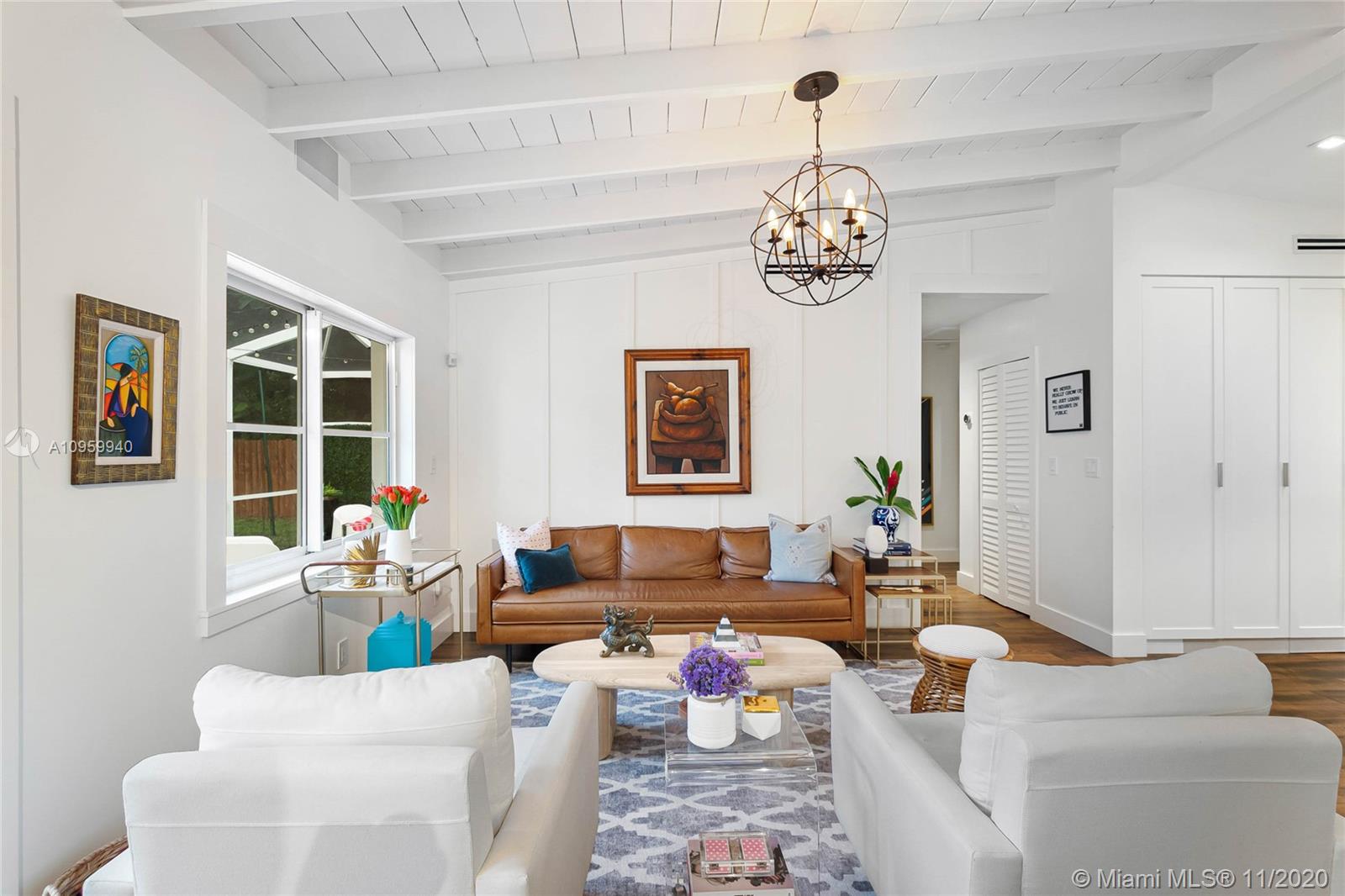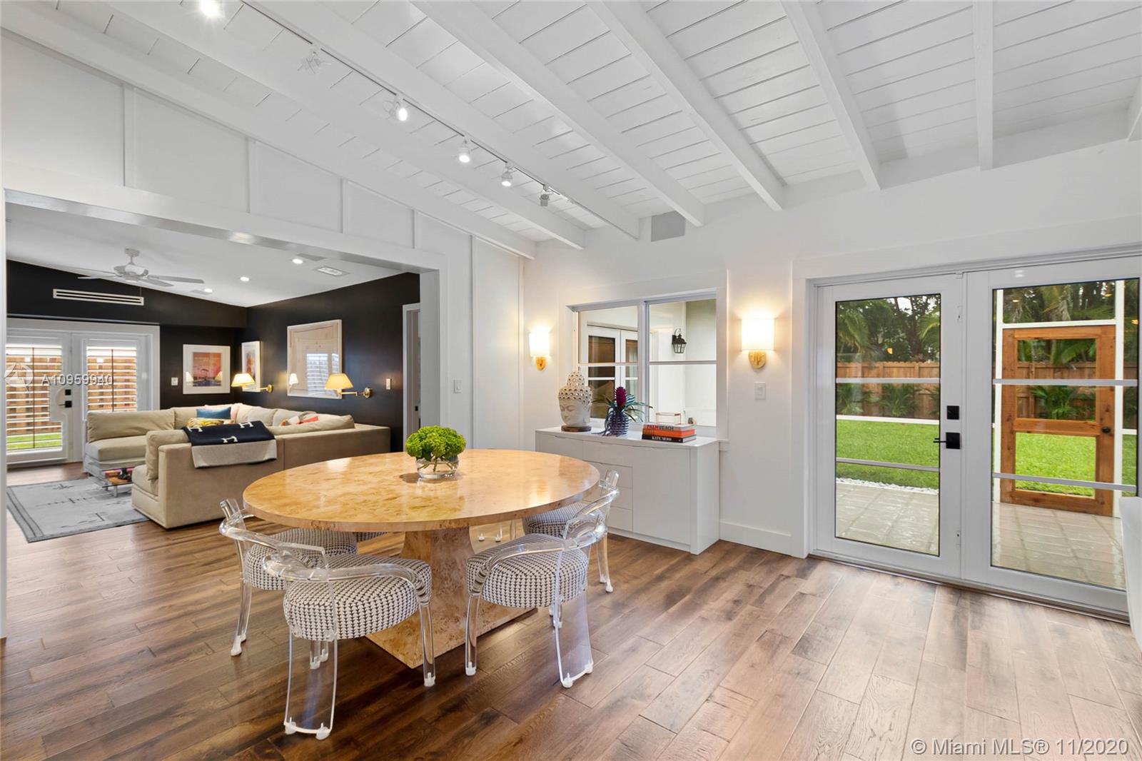 Roof & front fence to be replaced PRIOR to closing by owner with approved permits from City of Pinecrest. Enter the front privacy gates to a stylish and chic, renovated half-acre estate. Designed around a beautiful pool courtyard the lifestyle this property conveys is flexible for family weekends & entertaining. Gorgeous eat-in kitchen is a place to congregate & adjacent to French doors opening up to screened-in pool & patio. Fantastic spaces include family room w/artistic built-ins & a screened-in rear terrace perfect for lounging. Living room & dining rooms open to the kitchen-very open floor plan! Lot configuration provides ample grassy area in backyard for pets and family soccer matches. Perks include complete privacy from street, vaulted ceilings & fruit trees.