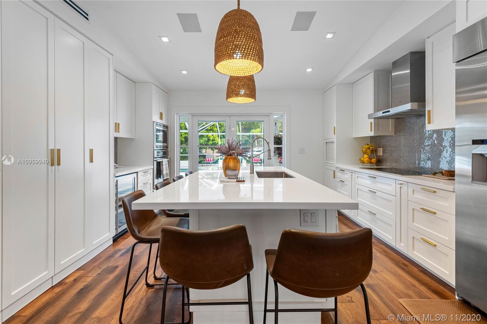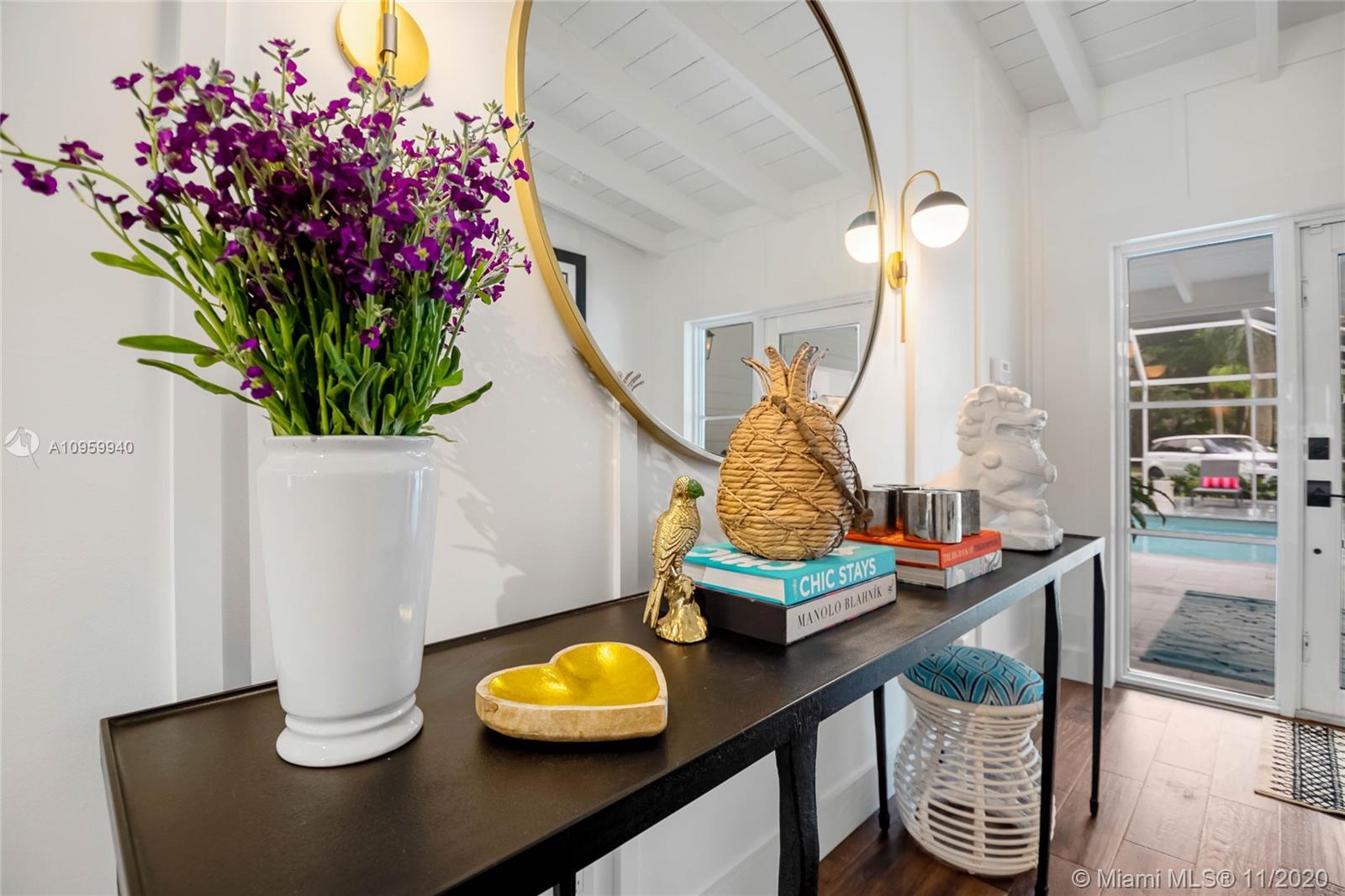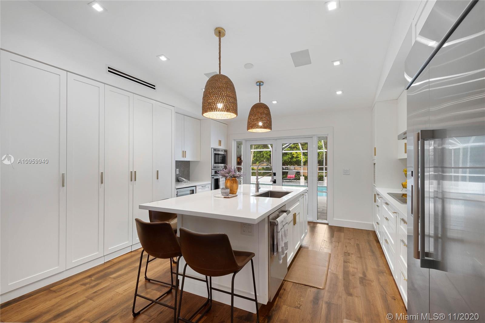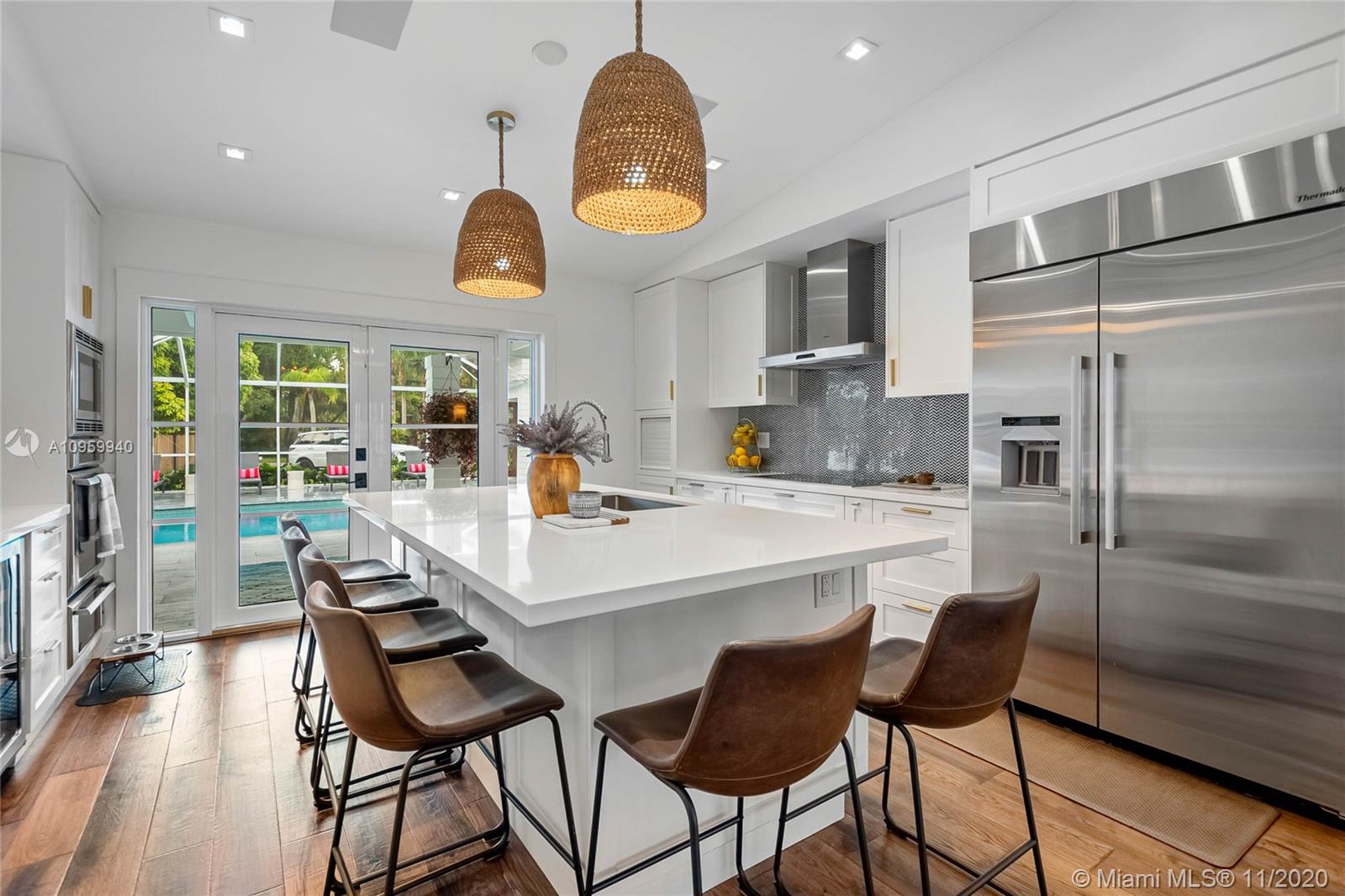 Roof & front fence to be replaced PRIOR to closing by owner with approved permits from City of Pinecrest. Enter the front privacy gates to a stylish and chic, renovated half-acre estate. Designed around a beautiful pool courtyard the lifestyle this property conveys is flexible for family weekends & entertaining. Gorgeous eat-in kitchen is a place to congregate & adjacent to French doors opening up to screened-in pool & patio. Fantastic spaces include family room w/artistic built-ins & a screened-in rear terrace perfect for lounging. Living room & dining rooms open to the kitchen-very open floor plan! Lot configuration provides ample grassy area in backyard for pets and family soccer matches. Perks include complete privacy from street, vaulted ceilings & fruit trees.