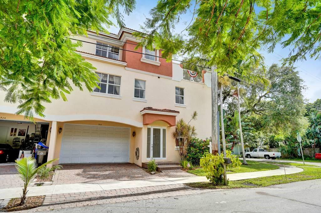 Laidback living within walking distance of Fort Lauderdale in this quaint, eclectic Tarpon River neighborhood. Magnificent 3 story, 4 bedroom, 3.5 baths townhome w/ a large beautiful rooftop terrace to sit and watch the gorgeous Florida sunsets. Move-in ready! Highlights of this corner lot property include Hurricane Windows and Doors, 8' French Doors opening up to a splendid yard with a very regal Florida Live Oak Tree. It sits on an offset corner lot with a lovely landscaped yard for entertaining outdoors. This home also features a bright open floor plan with impeccable features, which include 12' high ceilings on the first floor, travertine floors on 1st floor and bathrooms, new Berber carpet in all bedrooms and landing. A spacious kitchen w/ brand new energy efficient appliances.