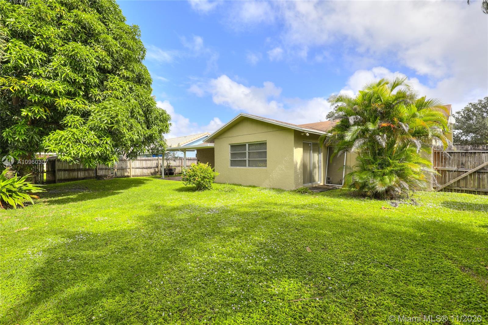 Fantastic 3/2 split floor plan home in Palm Aire Village with tile floors throughout and lots of light and bright open spaces. Lots of storage in this house with a walk-in closet in the primary bedroom and a ton of cabinets in the large kitchen. There is a Florida room for your enjoyment and a big fenced-in backyard with plenty of space for a pool.
