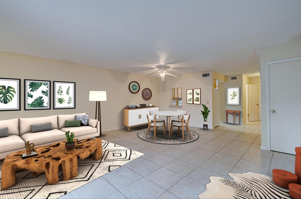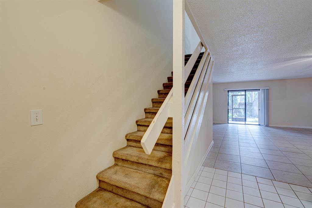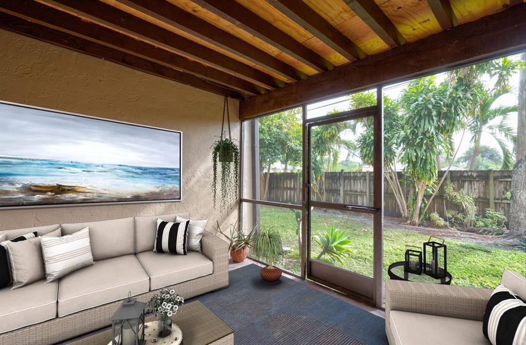 Live the downtown lifestyle in this updated Hollywood townhouse. The ideal floorplan features an updated kitchen, spacious living area, and a half bath on the first floor. The second floor offers two bedrooms and a full bath. Spacious master with an oversized walk-in closet, a vanity, and sliders to the private veranda. The kitchen boasts stone backsplash, oak cabinetry, and a pass through to the dining area. The living room has lots of natural light, neutral tile, and double sliding glass doors that take you to a private patio and garden area. Pass through the sliders to discover a screened-in patio with a garden view and a utility closet with full size washer/dryer and a Whirlpool water heater. Abundant storage. The roof was replaced in 2015. Steps to the community pool.