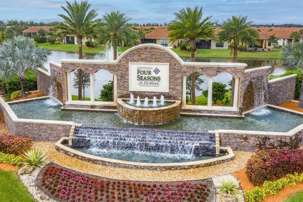 Fabulous opportunity to move into this Stunning, Vera Model, Professionally Designed Home in Four Seasons Parkland. 55+ Living at its Best! 24HR Guard Gated Security. Outstanding Lake View Lot. Spectacular upgrades throughout the home. Neutral Porcelain Plank Flooring and Crown Molding throughout. Multiple Tray Ceilings. All New LED Lighting with Dimmers. Hunter Douglas Remote Controlled Shades. Custom Draperies. Gourmet Kitchen with Granite Counter Tops and Marble Backsplash. Custom Contemporary Barn doors on Master Bedroom Closets. Extended covered oversize Patio Lanai that overlooks Lake with Unobstructed View. Freshly Painted Interior of Home. Impact Windows and Doors. This home is immaculate and turn key ready to move in.