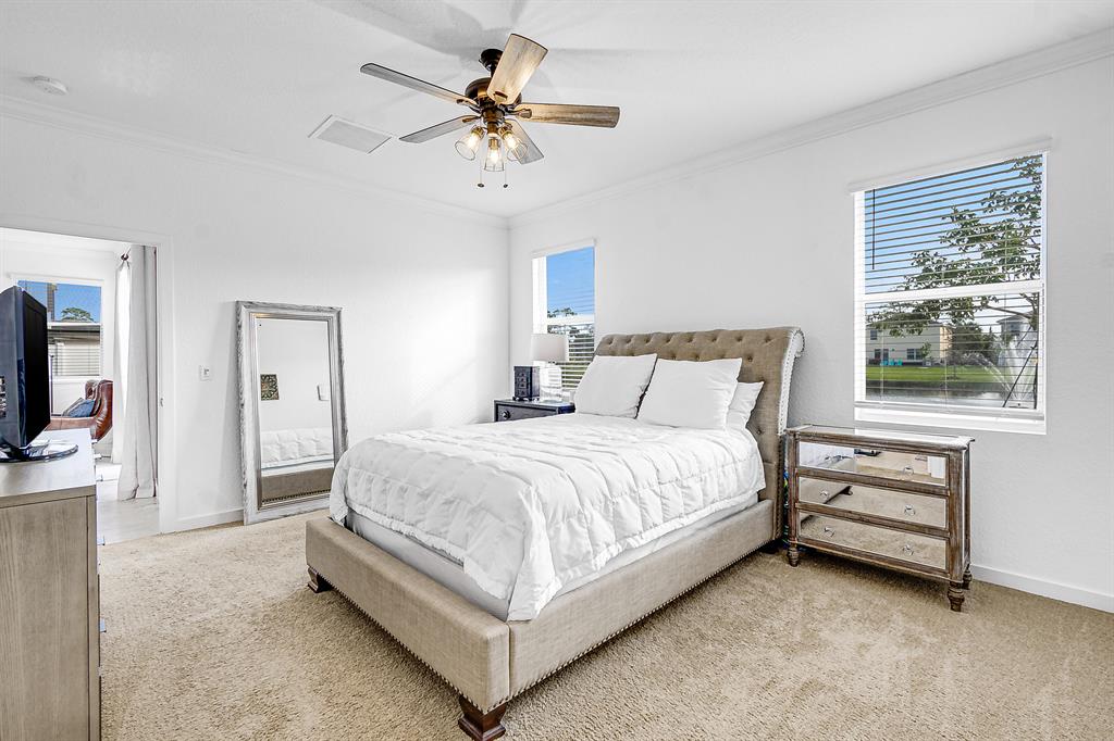 New construction, built in 2018 centrally located in Palm Beach County. Beautiful home with a open floorplan offering 3 bedrooms plus a flex space 2 baths and a 2 car garage. Upgraded tile and crown molding throughout the main living areas, large kitchen with modern designed 36 in cabinets and amazing quartz counters in the kitchen and stainless steel appliances . Calming water views from the living room and main bedroom. Enjoy Florida sunshine from the spacious back yard. Owner's suite features crown molding, dual sinks, a step in shower and a large walk in closet.