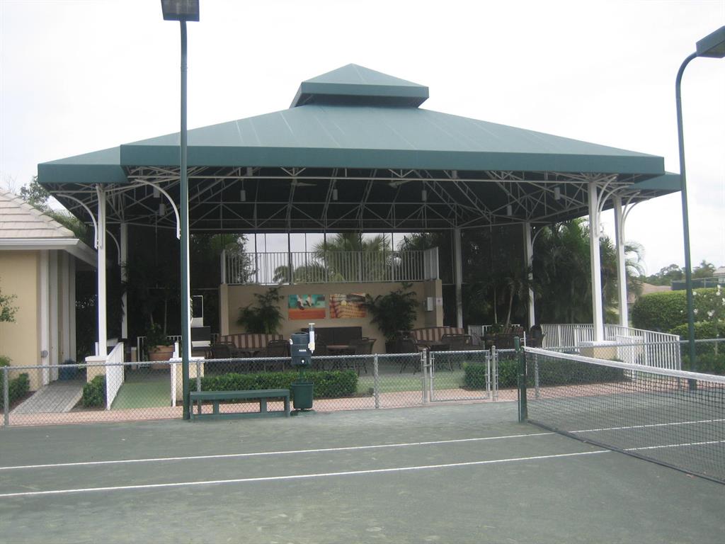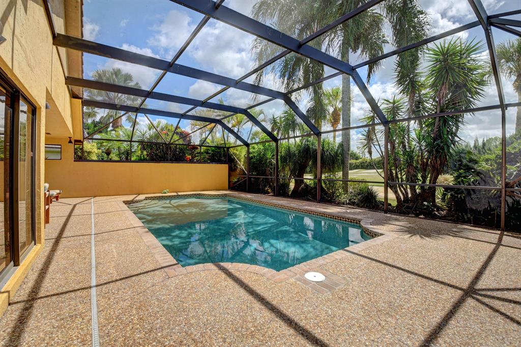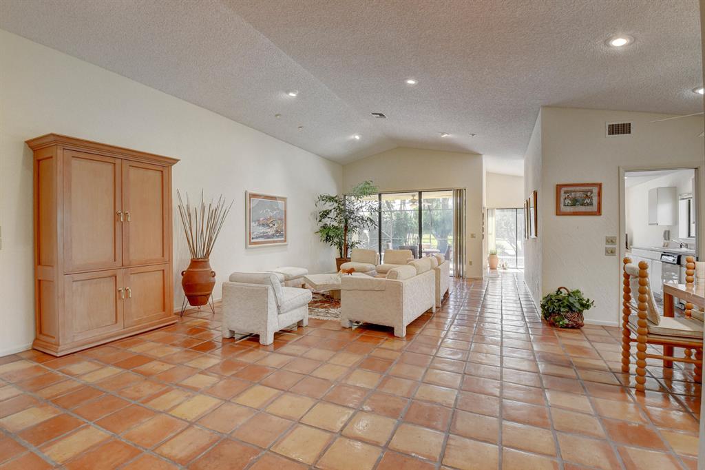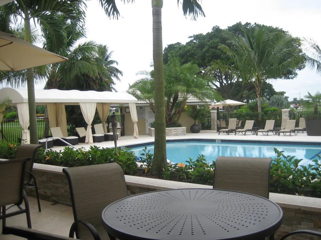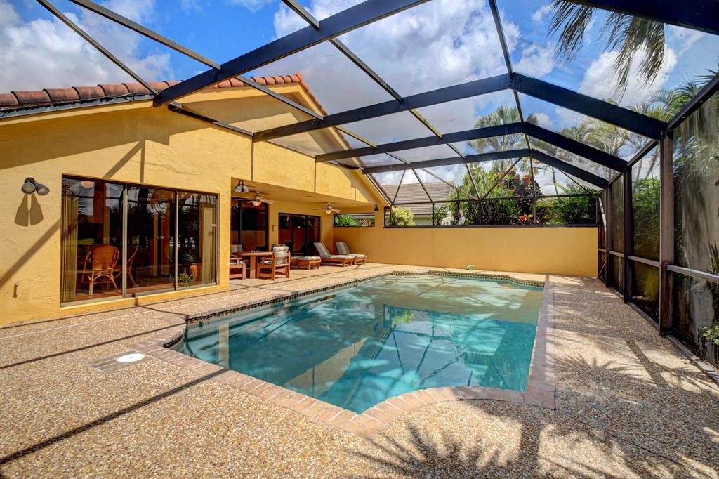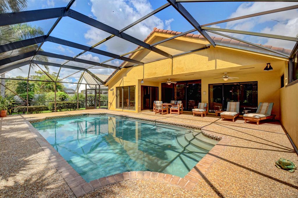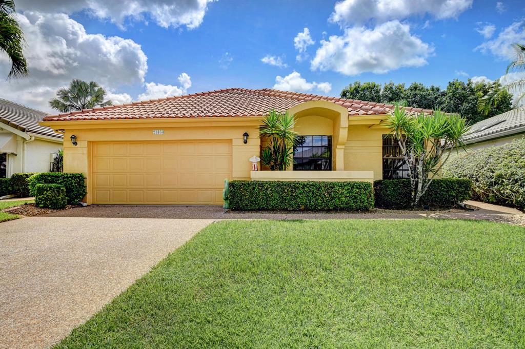 Bright and beautiful single family pool home with golf and water views. Open design of today with expansive volume ceilings. Split bedroom floor plan, 2 bedrooms, 2 baths, convertible den and 2 car garage, on a quiet cul de sac street. Cable and internet service, low taxes, 24 hours manned gated and security patrol, all age community. Full country club membership required. $65,000 paid 10 days prior to closing. Privately-owned golf carts permitted. The club features: two 18-hole golf courses including practice facilities- tennis-pickle ball- bocce ball- state of the art fitness center, pool- casual and formal dining rooms- card rooms-book clubs-valet parking for owners & guests-great entertainment and trips.