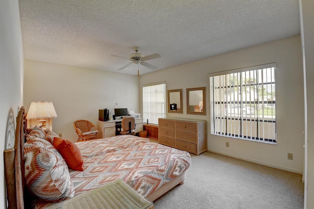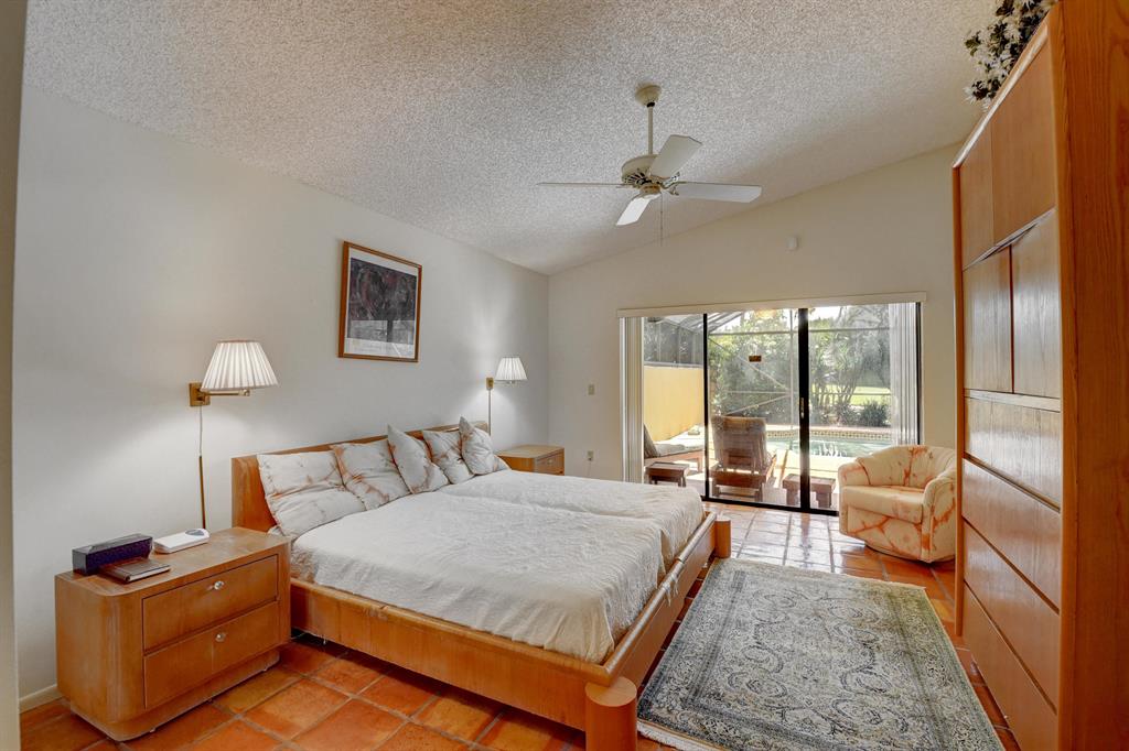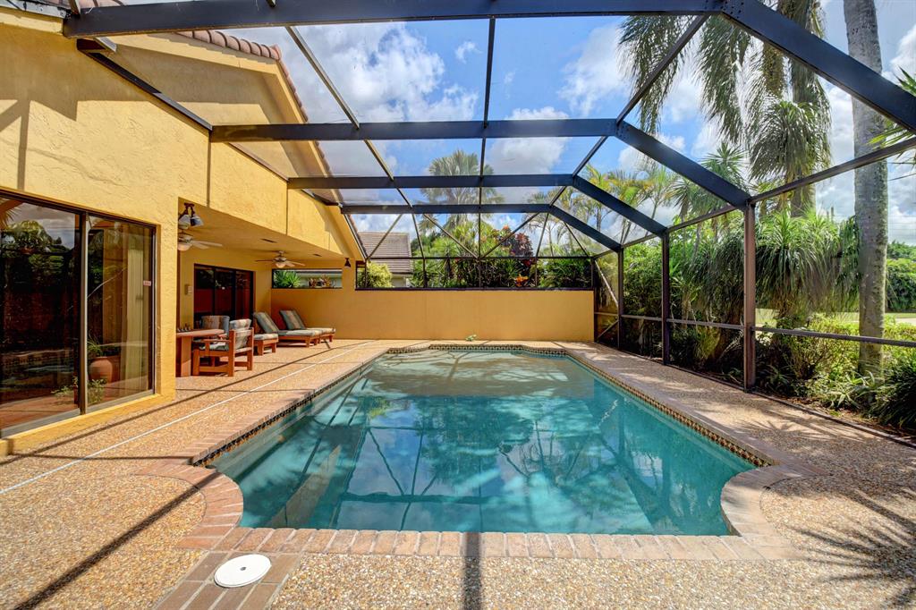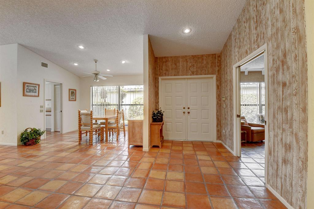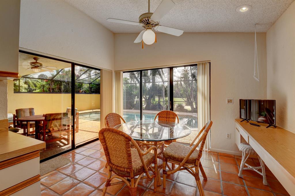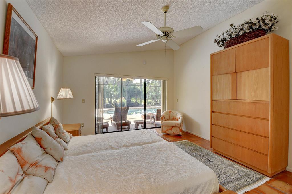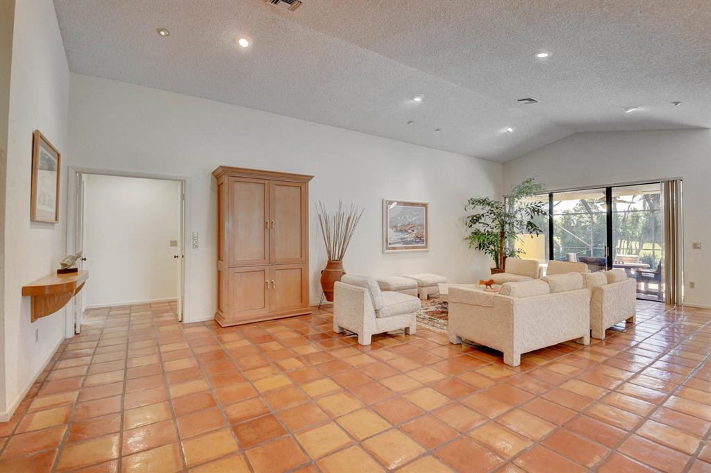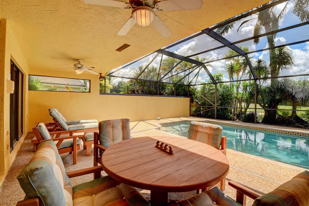 Bright and beautiful single family pool home with golf and water views. Open design of today with expansive volume ceilings. Split bedroom floor plan, 2 bedrooms, 2 baths, convertible den and 2 car garage, on a quiet cul de sac street. Cable and internet service, low taxes, 24 hours manned gated and security patrol, all age community. Full country club membership required. $65,000 paid 10 days prior to closing. Privately-owned golf carts permitted. The club features: two 18-hole golf courses including practice facilities- tennis-pickle ball- bocce ball- state of the art fitness center, pool- casual and formal dining rooms- card rooms-book clubs-valet parking for owners & guests-great entertainment and trips.