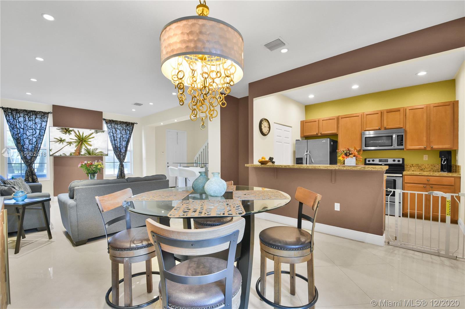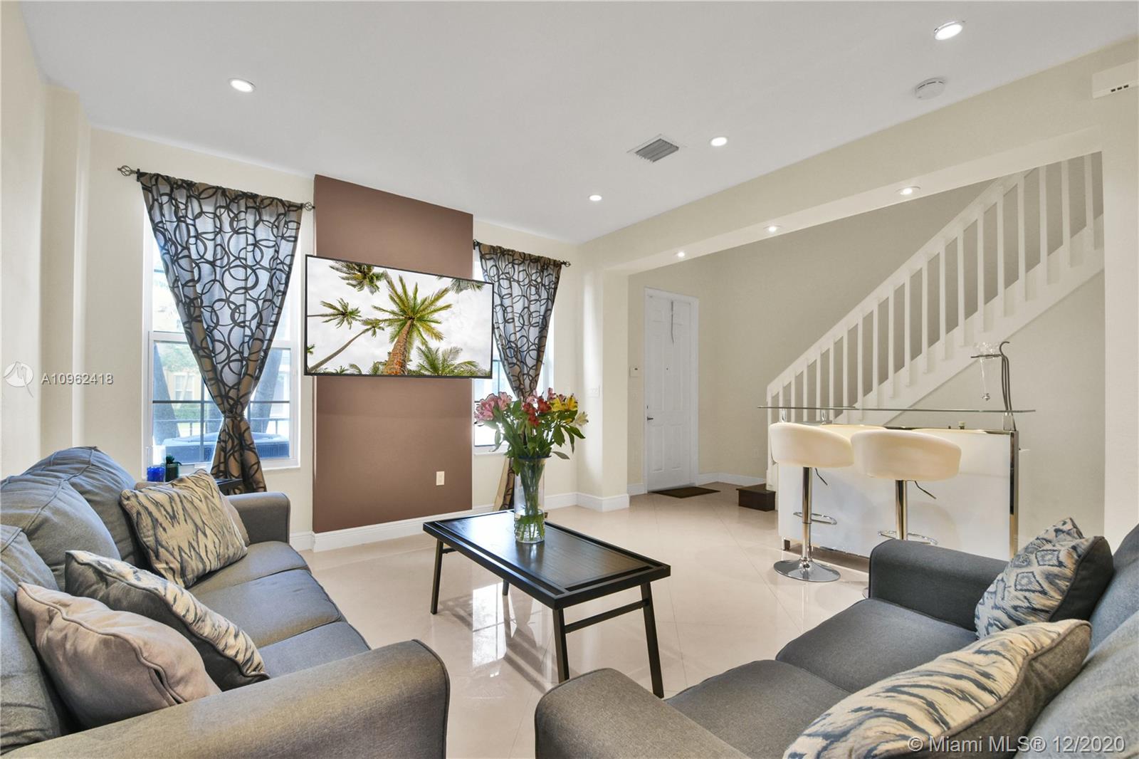 Cobblestone of Pembroke Pines, an elegant place to live. Stylishly appointed town home with large format porcelain tile flooring throughout the first floor; gorgeous wood flooring all the way through the staircase and upstairs living areas. Elegant recessed high hat lighting and gorgeous light fixtures; 9.5' ceilings. Maple cabinetry & granite counters in the kitchen & bathrooms; stainless steel Whirlpool appliances; brand new Samsung Washer&Dryer. 1 full bedroom & bathroom downstairs. All hurricane impact windows & doors. Upstairs loft & balcony. Courtyard & spacious 2-car garage. Perfect location near many major highways,restaurants,malls,supermarkets&universities. Gated Community,Clubhouse,Swimming Pool,Sun Deck,Children's Tot-lots,Fitness Center,Gazebo,Bus Stop,Jogging Track.