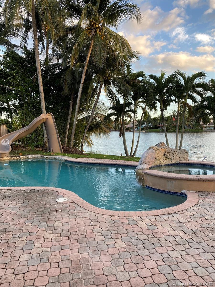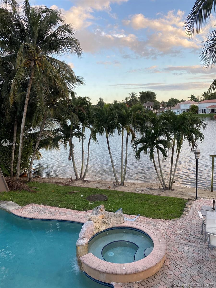 Great Lake Front with pool view 2 Story home located in the resort style community of Doral Isles featuring 5 bedrooms 3 baths, 2 car garage. Gray porcelanato on the first floor.