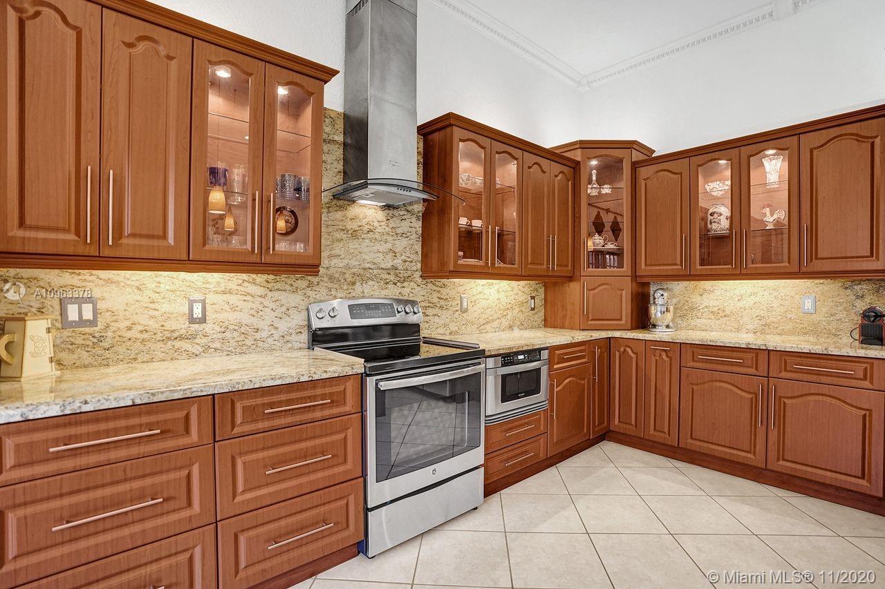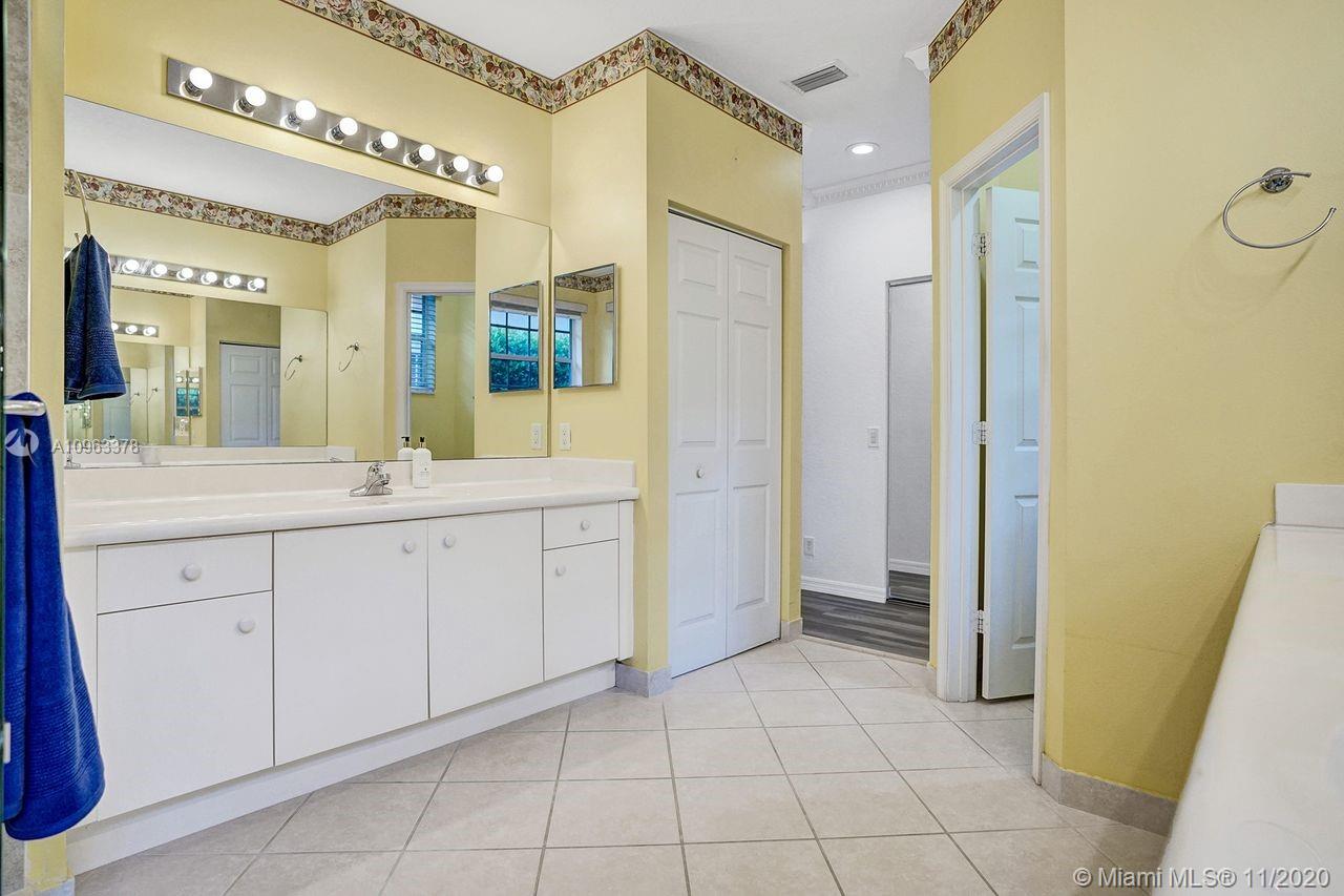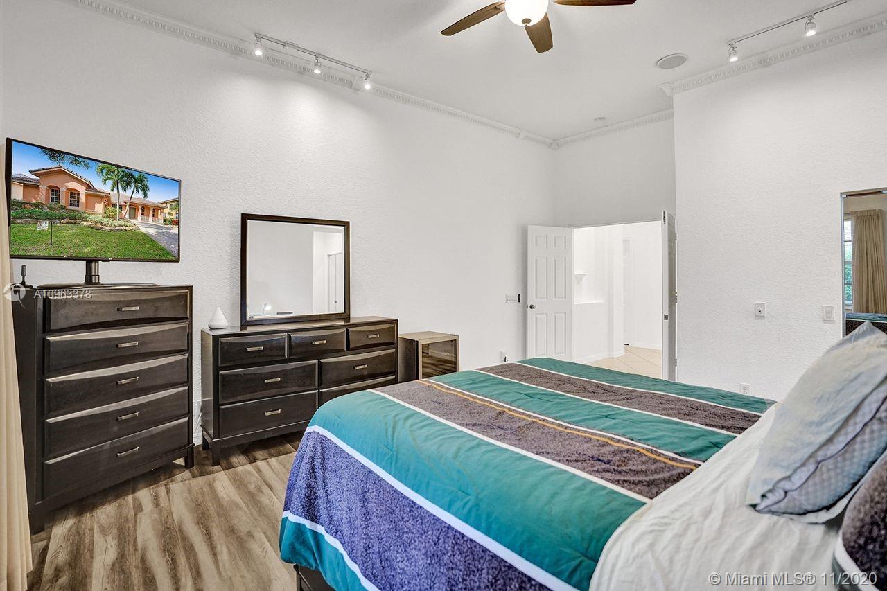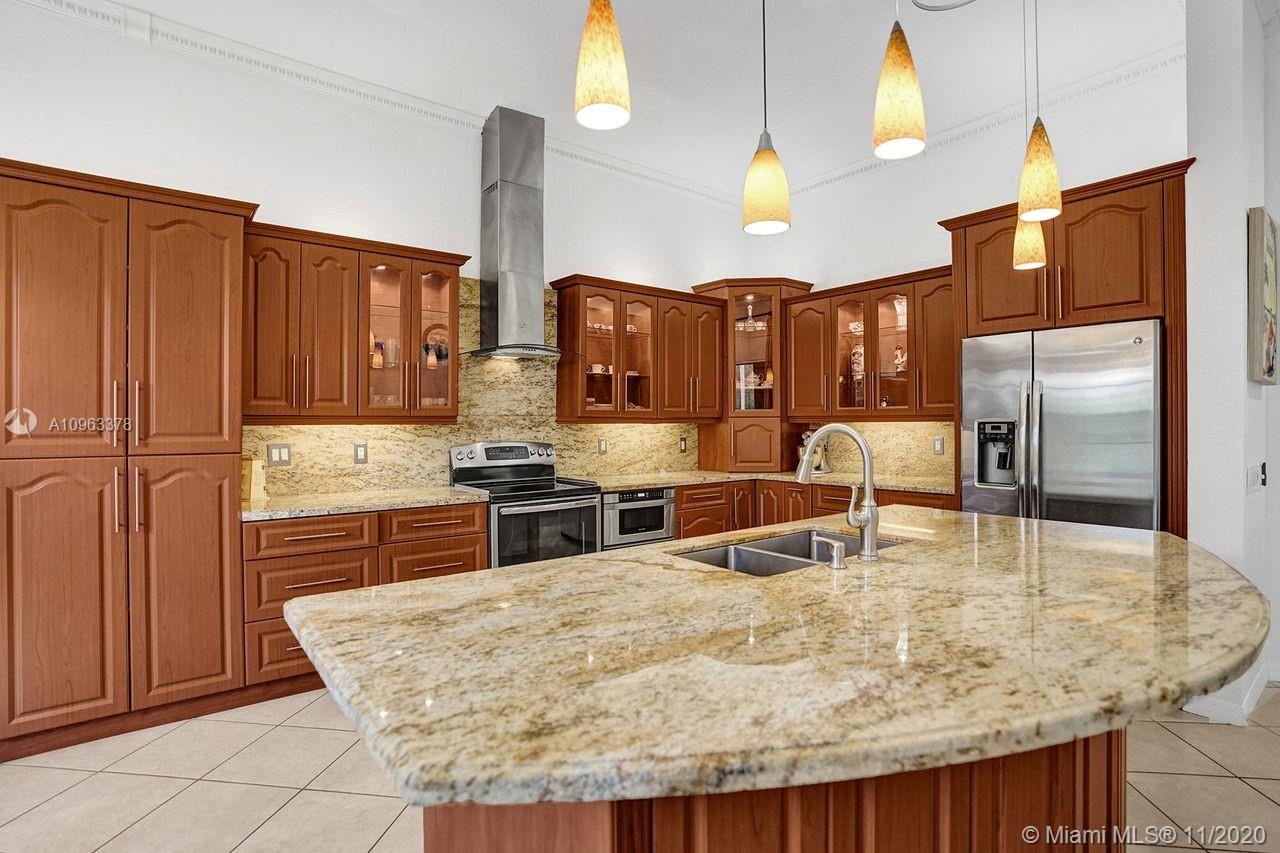 Spectacular family home in Weston desirable Savanna resort style community. One story 4 bedrooms, 2.5 baths, open concept living area with high ceilings, crown molding. Front porch and nice curb appeal. Newer kitchen is spacious with granite countertops, a separate breakfast area, built-in bar, a desk and plenty of cabinet space. Large kitchen island provides extra eating space. There is an oversize covered and screened in back patio/porch for extra outdoor living perfect for entertaining. Master bedroom has also high ceilings with organized closet space. Separate laundry area leads to two car garage with plenty of storage. Tile floor on living area and laminate wood floor on bedrooms. The two-bathroom showers were recently remodeled. Close to A+ schools.