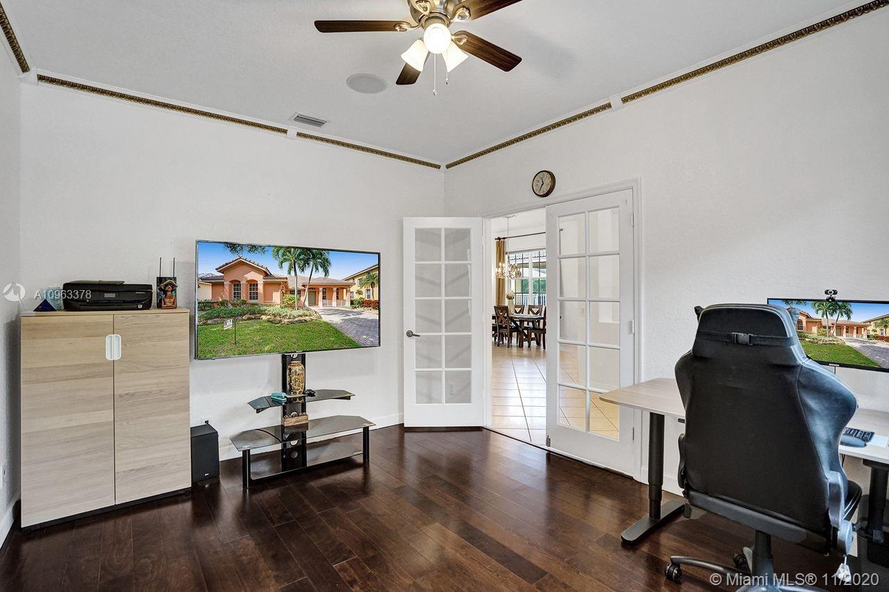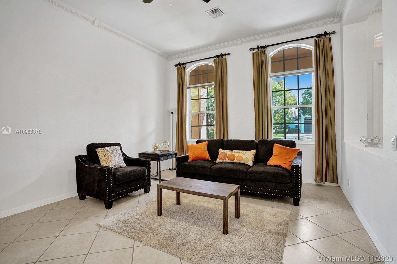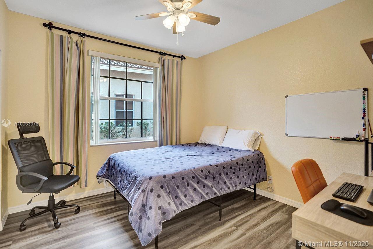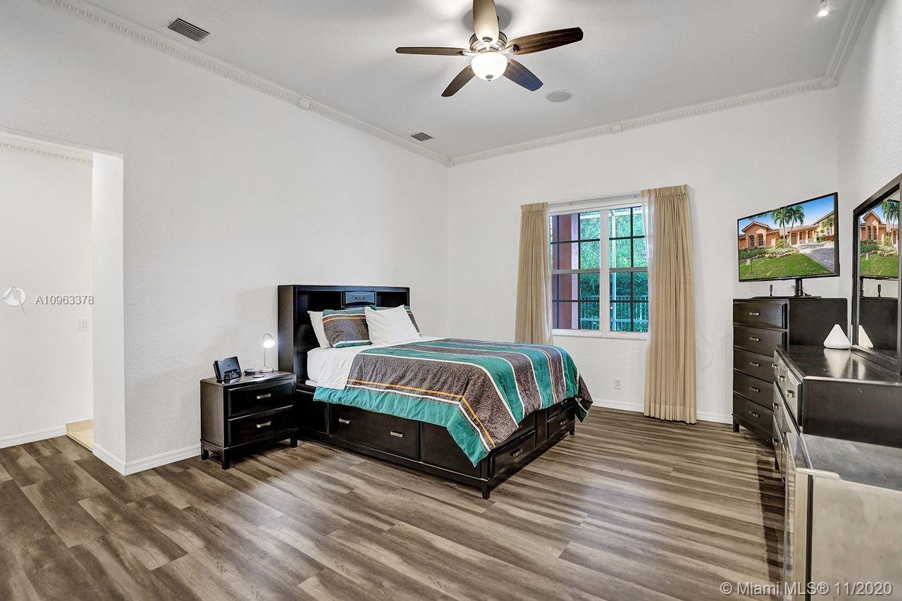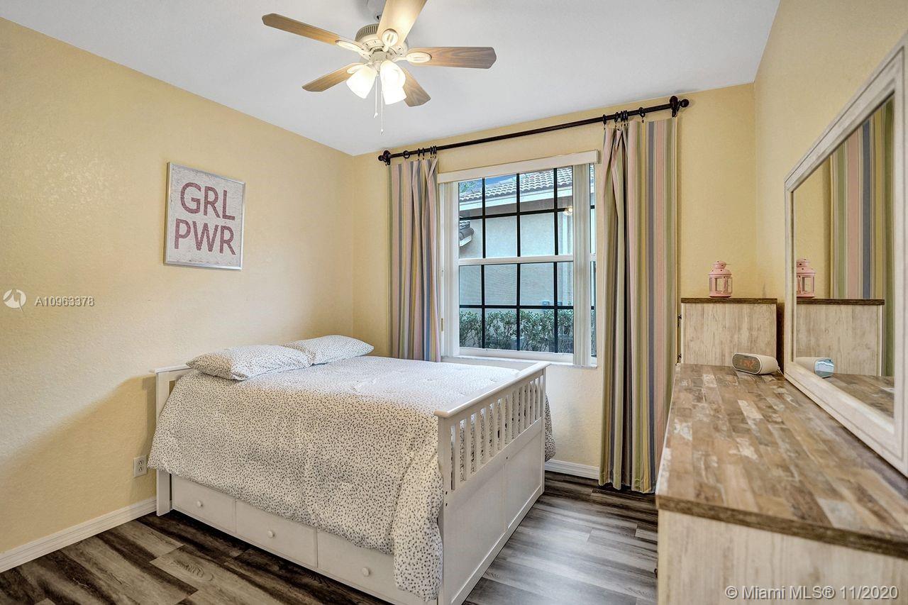 Spectacular family home in Weston desirable Savanna resort style community. One story 4 bedrooms, 2.5 baths, open concept living area with high ceilings, crown molding. Front porch and nice curb appeal. Newer kitchen is spacious with granite countertops, a separate breakfast area, built-in bar, a desk and plenty of cabinet space. Large kitchen island provides extra eating space. There is an oversize covered and screened in back patio/porch for extra outdoor living perfect for entertaining. Master bedroom has also high ceilings with organized closet space. Separate laundry area leads to two car garage with plenty of storage. Tile floor on living area and laminate wood floor on bedrooms. The two-bathroom showers were recently remodeled. Close to A+ schools.