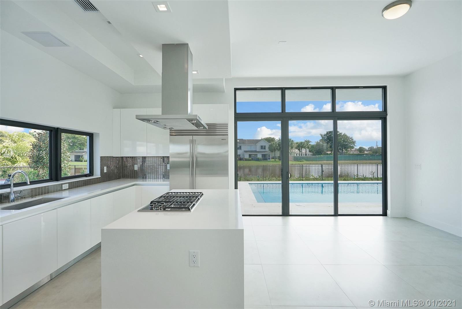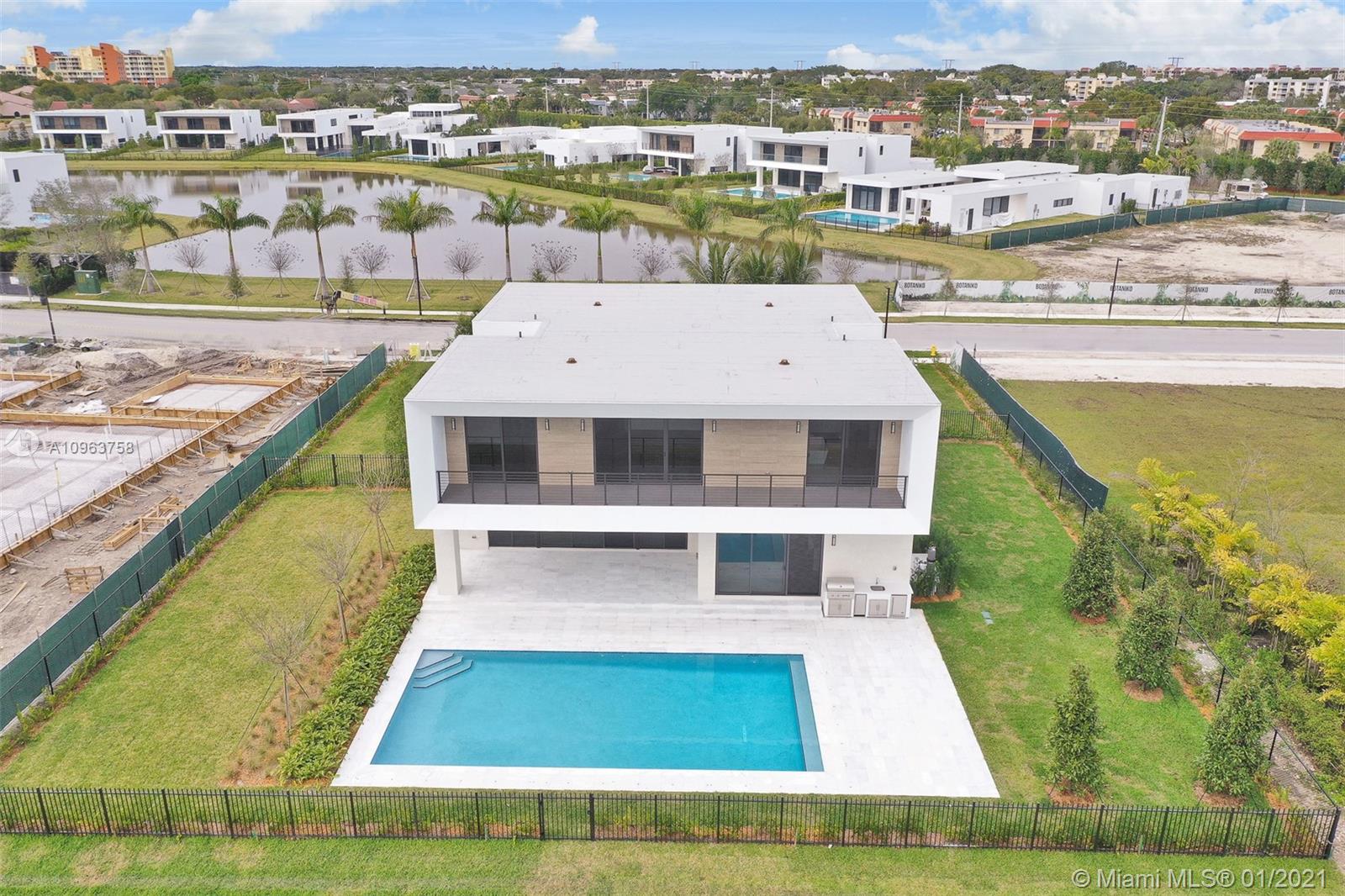 BOTANIKO WESTON NEW AND MODERN BEST PRICE. Oversized 20,000 SF lakefront/back lot with unobstructed front view, inviting open concept dinning room/living room. Media room and staff quarters on first floor and 4 huge bedrooms with en suite and extra family room upstairs. Amazing outdoor living with huge 20x40 swimming pool, upgraded oversize deck, upgraded cabana bath and summer kitchen with top of the line gas BBQ, ice maker and fridge perfect for entertaining. Kitchen area with beautiful white quartz waterfall island and wet bar with 24 bottle Captain cooler. Appliances include SubZero wide refrigerator, Bosch Built-in coffee maker, dishwasher, gas stove. Gorgeous upgraded glass staircase. This is an unbelievable house available just reduced for a quick sale. READY TO MOVE IN.