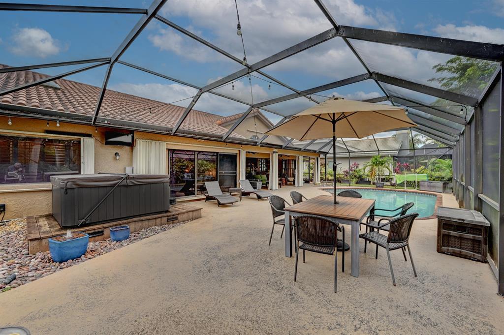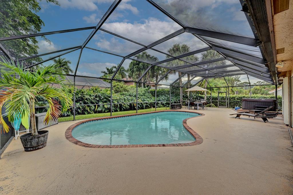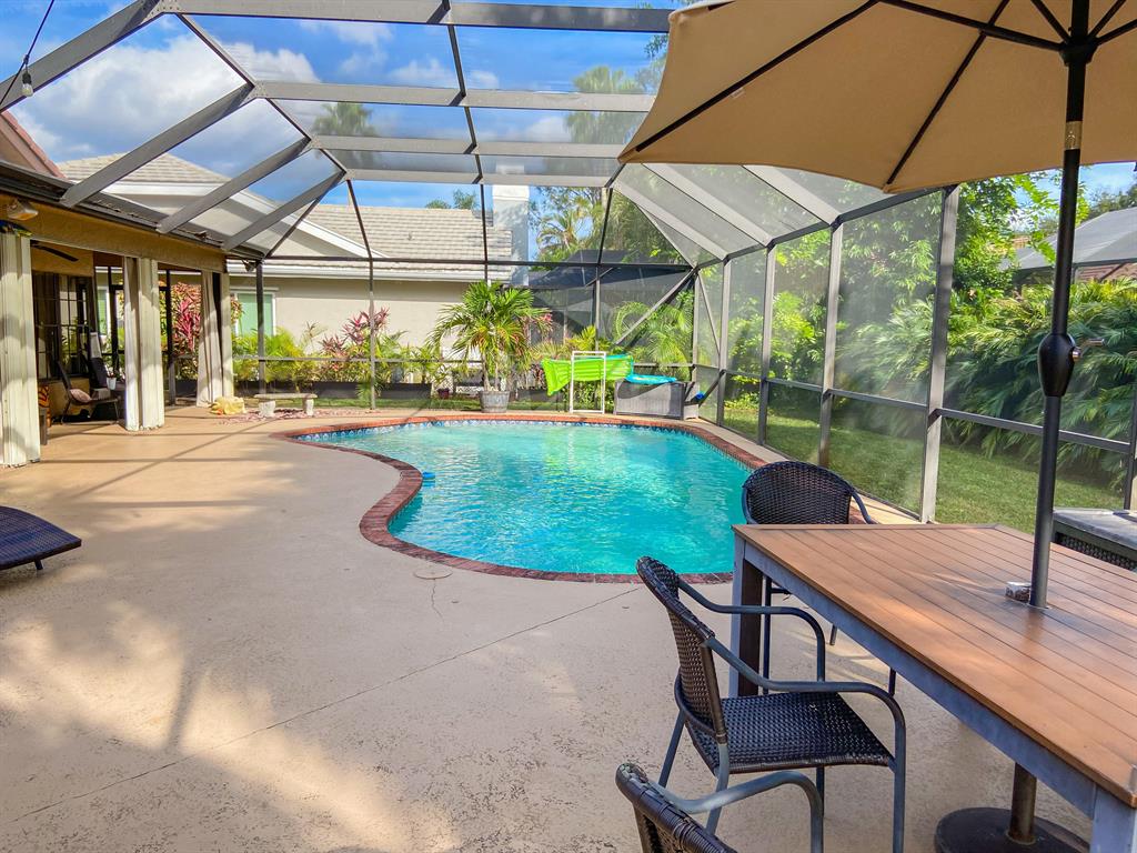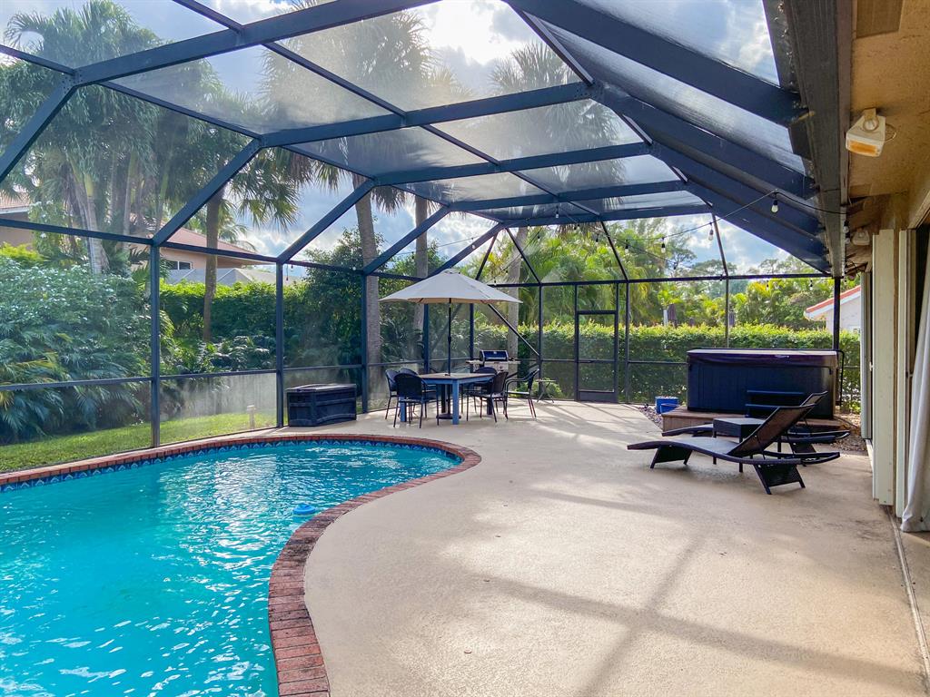 This 4 bedroom 3 bath pool home is nestled in the gated community of Country Point Estates on a cul-de-sac. Large open floor plan. The 4th bedroom is being used as a den. This home is tastefully decorated with plantation shutters, crown molding and travertine floors. Updated kitchen includes granite countertops, stainless steel appliances, and an eat-in kitchen area. All bedrooms have engineered wood flooring. Oversized screened in patio has lots of room for entertaining or just enjoying your privacy. Private above ground spa for relaxing. The Large Covered Patio is great for spending time outdoors. Impact rated garage doors installed approximately 8 years ago. Home has a real wood burning fire place and is fully equipped with Accordian Shutters and hurricane panels. Low HOA fees.