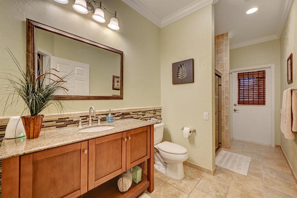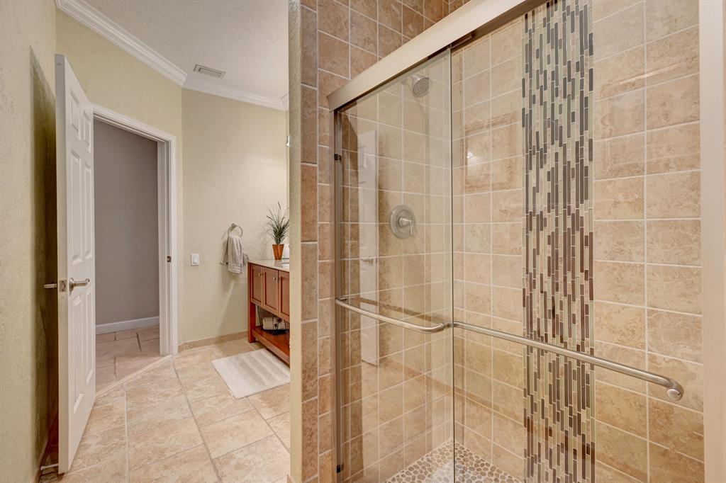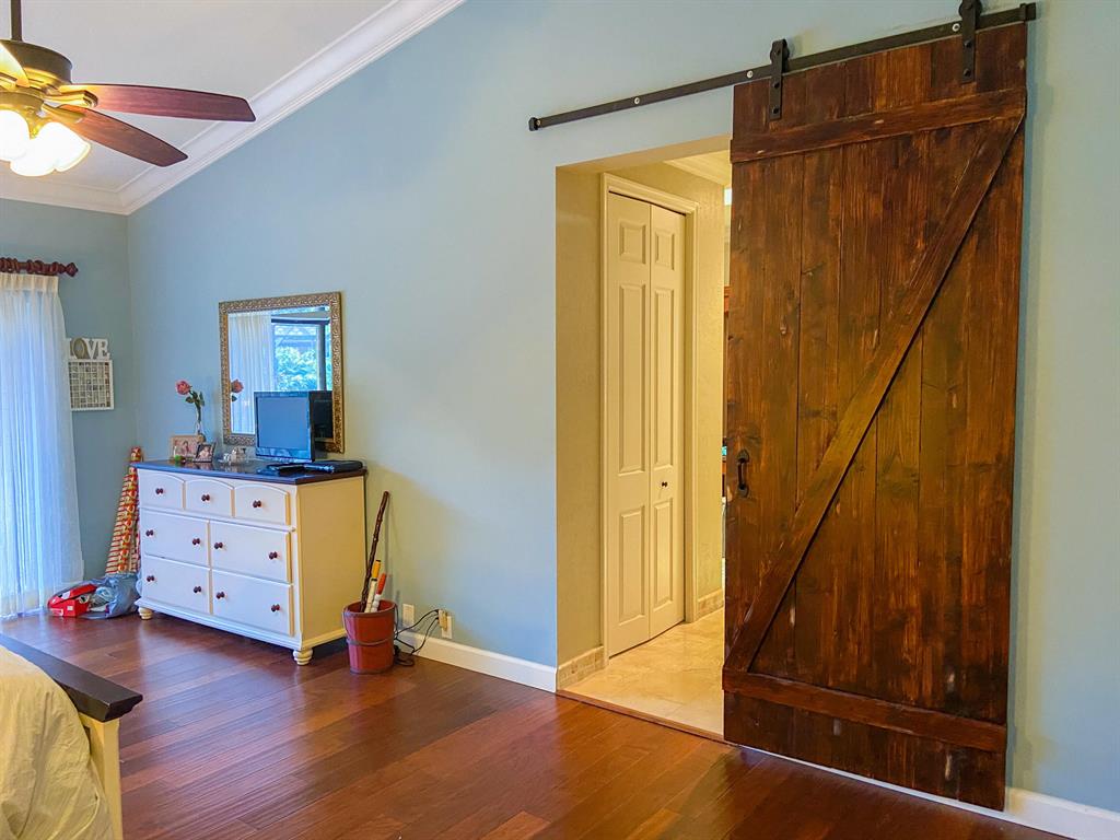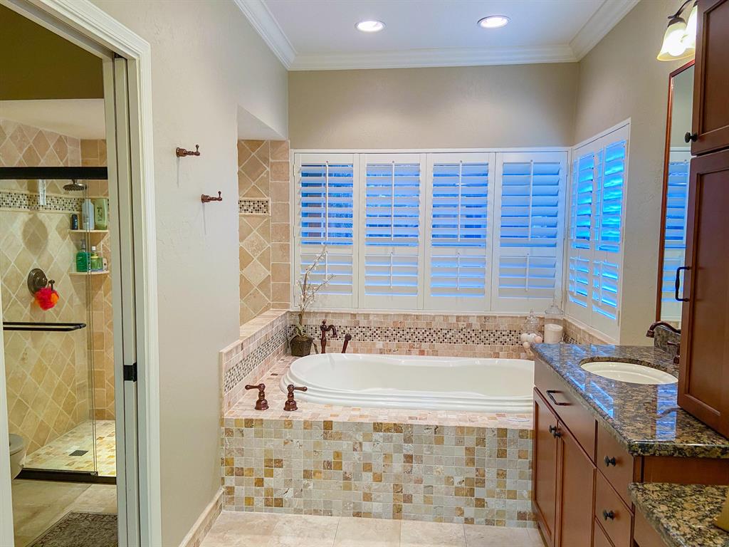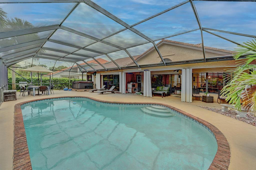 This 4 bedroom 3 bath pool home is nestled in the gated community of Country Point Estates on a cul-de-sac. Large open floor plan. The 4th bedroom is being used as a den. This home is tastefully decorated with plantation shutters, crown molding and travertine floors. Updated kitchen includes granite countertops, stainless steel appliances, and an eat-in kitchen area. All bedrooms have engineered wood flooring. Oversized screened in patio has lots of room for entertaining or just enjoying your privacy. Private above ground spa for relaxing. The Large Covered Patio is great for spending time outdoors. Impact rated garage doors installed approximately 8 years ago. Home has a real wood burning fire place and is fully equipped with Accordian Shutters and hurricane panels. Low HOA fees.