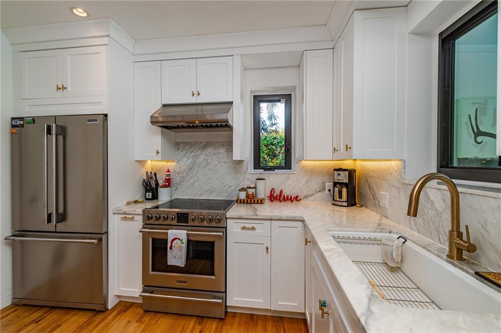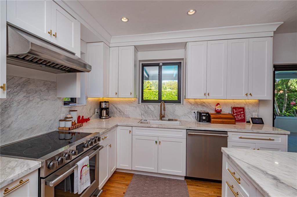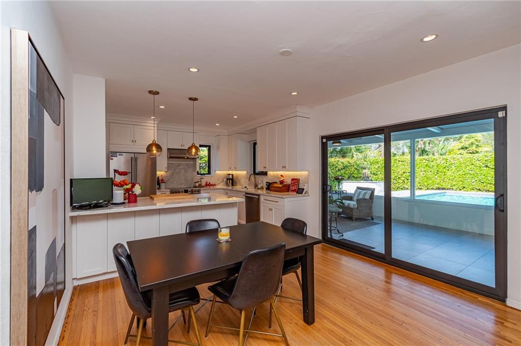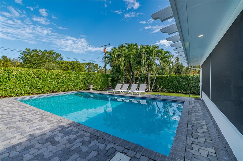 Lovely home displaying excellent care and elegant upgrades. Appealing screened patio overlooking the large pool and garden, great for entertaining and/or kids activities. This beautiful two story home features impact windows & doors, wood flooring throughout the interior. Spacious kitchen w/white cabinets (solid wood), Carrara marble countertop & backsplash. Equipped w/ Frigidaire stainless steel appliances. Wireless home alarm/cameras. Automatic sprinkler-system w/deep well, no stains will occur. Great location at Miami Shores, easy commute to the beach, downtonwn and much more. It is a must see.