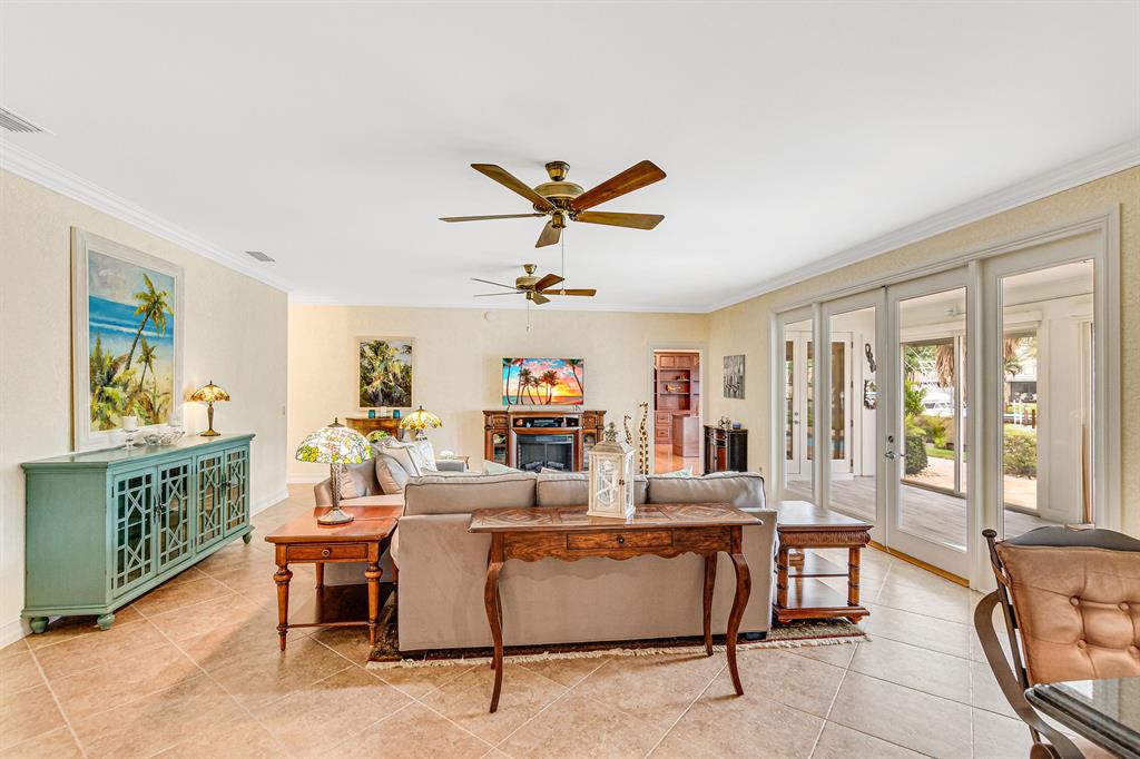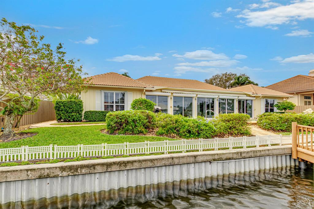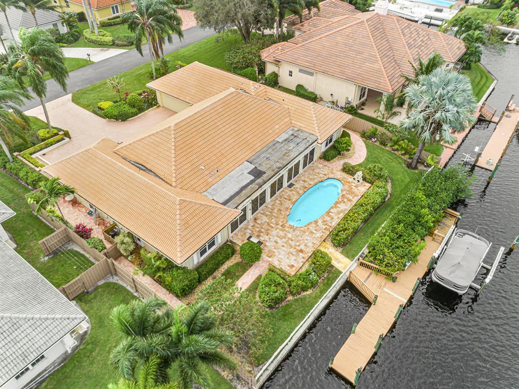 Rare opportunity in boating community with NO fixed bridges! Move in ready. 4 bedroom/3 full bath with formal dining room and den. Open air pool/patio area with dock. 3 zone AC all under 2 years, closed in patio with floor to ceiling windows, plantation shutters, built in office, walk in closets, gated community in the heart of PBG. Close to shopping, 95, Turnpike, Downtown the Gardens.