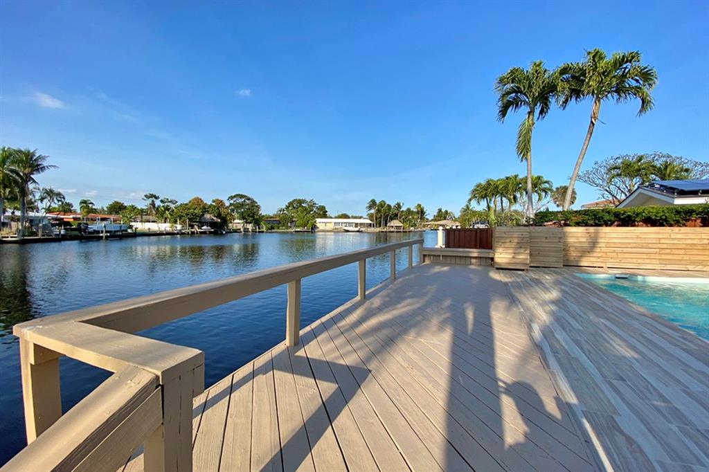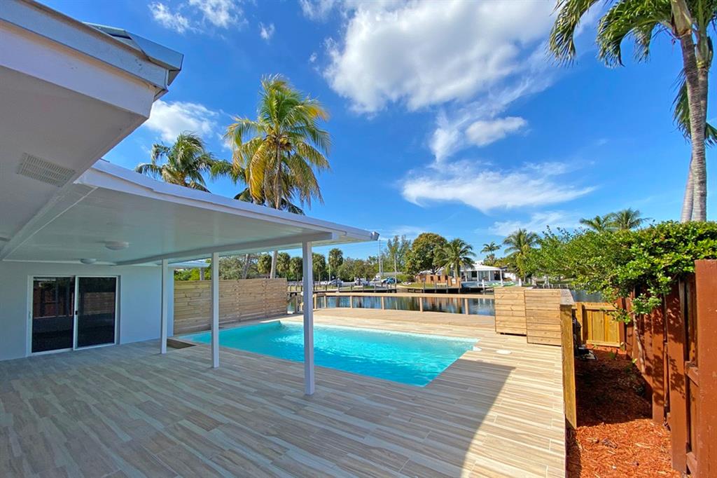 Do not miss this waterfront masterpiece just minutes by boat to the ocean! Be the envy of your friends and family as you show off the practically endless canal and poolside views just across the bridge from Wilton Manors. Boasting a brand-new metal roof, a grand kitchen with custom white cabinetry and high-end appliances, quartz countertops, impact windows and doors, ceramic tile throughout, 3 bedrooms, 2 fully renovated bathrooms, a laundry room and a massive family room in the front, your new luxury estate is completely rewired to today's standards. With a split bedroom floorplan and covered deck directly accessible from the master bedroom and living room, you and your guests will flow seamlessly from indoors to out, all the while retaining the privacy you long for.