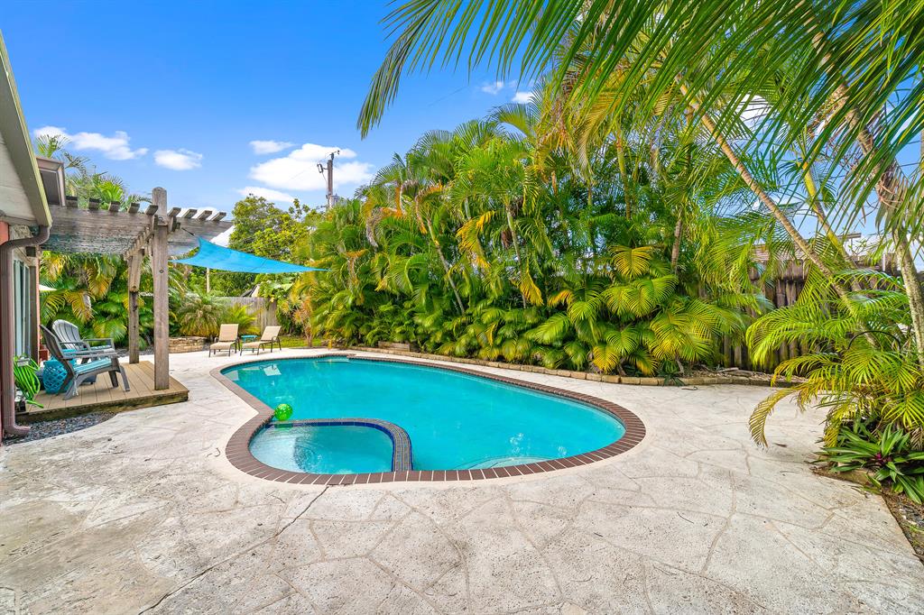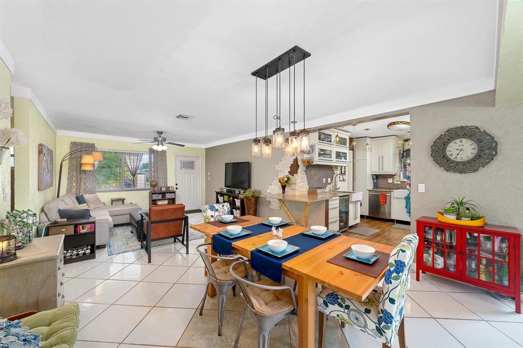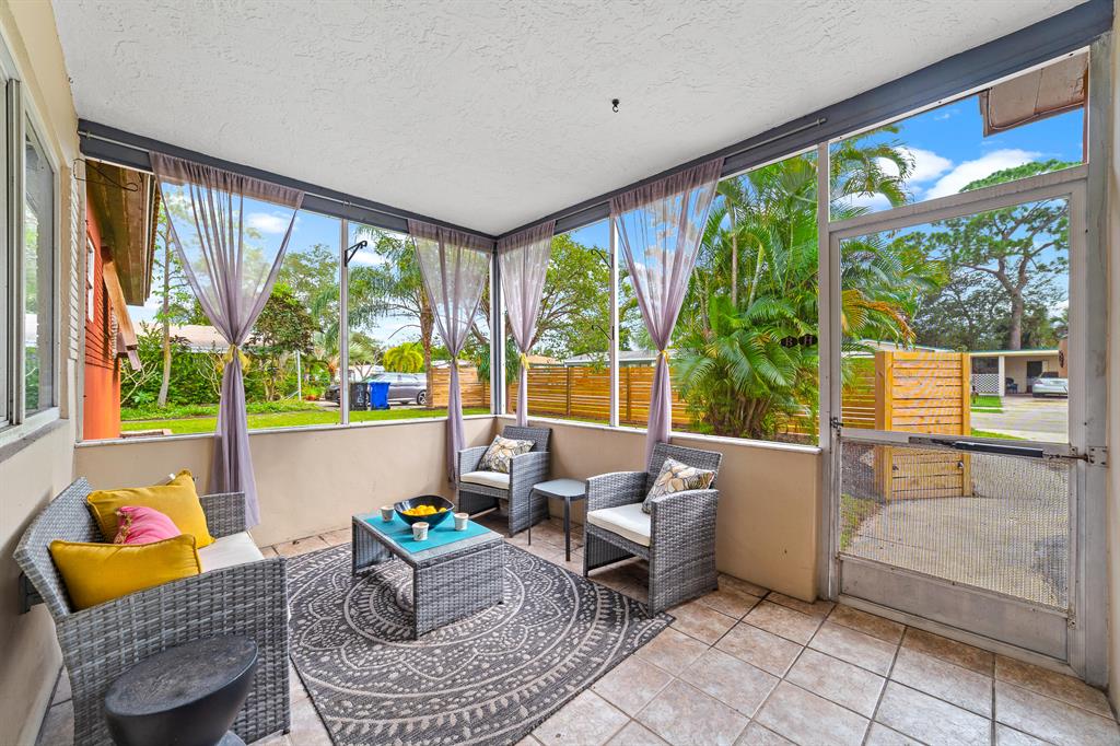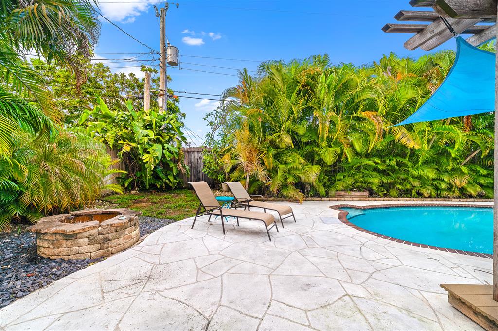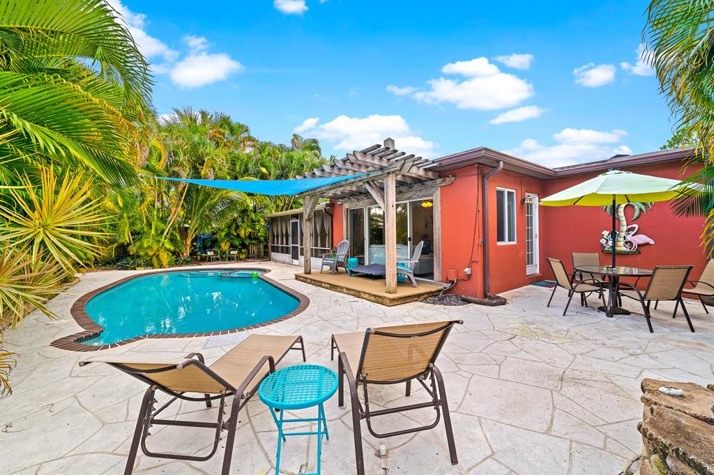 This charming Fort Lauderdale home features lush landscaping with a private front yard, ample driveway parking, a one car garage and comfortable front porch. The home has a modern beachy feel and is extremely well maintained. The property boasts an updated kitchen with newer stainless steel appliances and white cabinetry. The open concept tiled living room opens up into the dining room on through to a cozy seating area. Both secondary bedrooms overlook the pool and private backyard and have wood flooring. The primary bedroom has newer carpeting and plenty of space. Both bathrooms have been updated. The backyard has a tropical feel with large pool and total privacy. The large rear screened porch has ample room for entertaining and relaxing. The home has some impact windows and the
