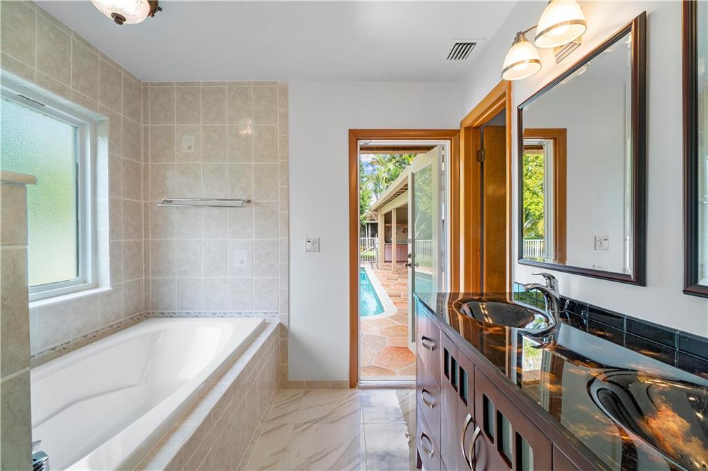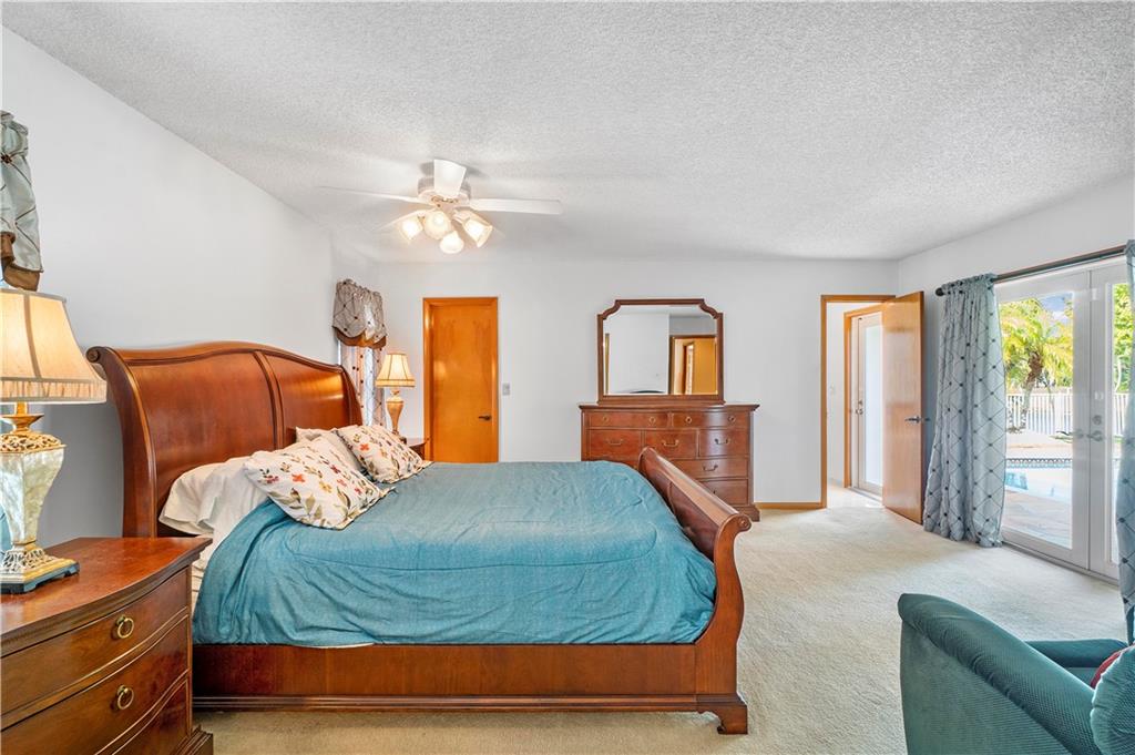 A rare find in Popular tree lined Maplewood! Welcome to wide WATERFRONT views, cul de sac 3 bedroom plus bonus 4th bedroom (no closet) plus 3 CAR GARAGE and 2.5 baths with ALL IMPACT Windows and Doors! Vaulted ceilings, open floor plan, fireplace, circular paver driveway, led lights, 2 newer AC's, New WH, closet organizers, generator ready! Outdoor backyard is perfect for entertaining with new Euro patio decking, fenced pool area, shower, patio has built in with sink & plenty of grass area to see sunset. Sprinkler runs off lake. Baths are updated with new designer 2 sink vanities(tub and separate shower in master) . Kitchen has huge breakfast nook that opens to updated private side deck, granite counters, soft close drawers ,SS. NO HOA FEES! Close to shopping, schools, & parks.