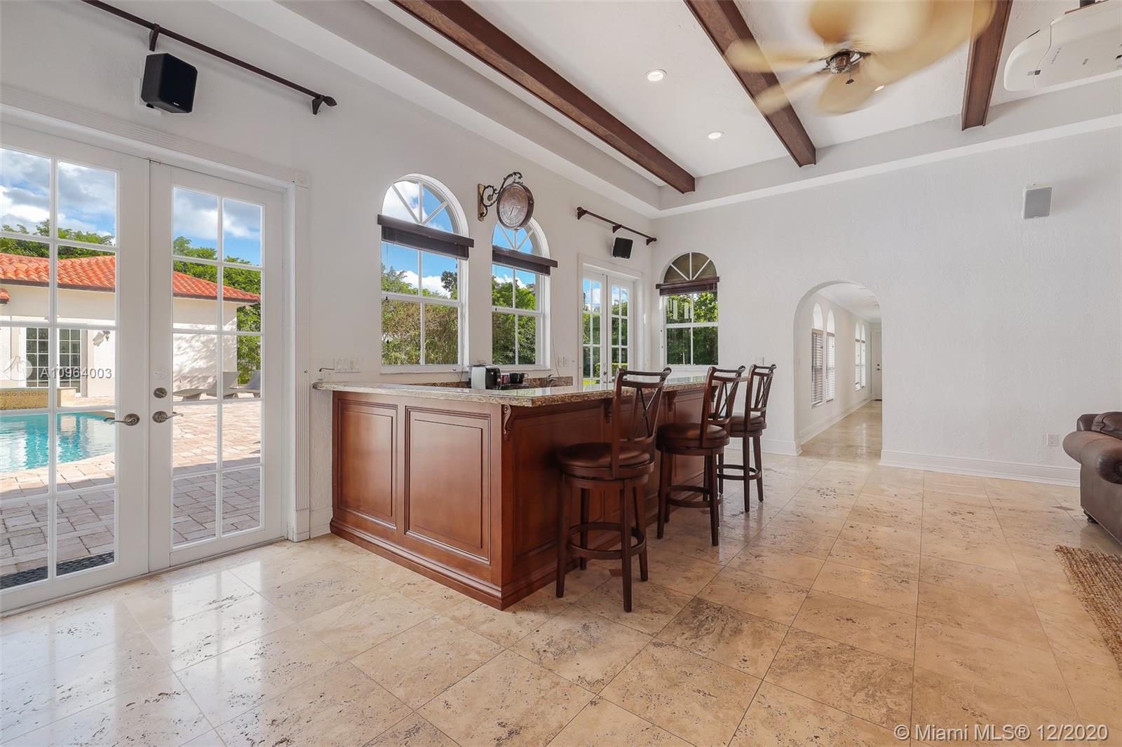 This expansive north Pinecrest estate sits on a very private acre lot, on a calm street. The house is perfect to isolate from the rest of the world and enjoy the peaceful Pinecrest quality of life, but also perfect to entertain! The 6 bedroom house offers spacious rooms with a convenient split layout for a separate office area or teenage quarters. Light pours into the house throughout. The master suite takes up a wing of the houses is very private. The U shaped property allows to see the garden and pool from everywhere. The movie theater and inside bar contribute to the entertainment excitement. The outdoor area also offers amazing entertaining with a covered patio and outdoor wet bar around the pool. The house is easy to show. We are just a phone call away!