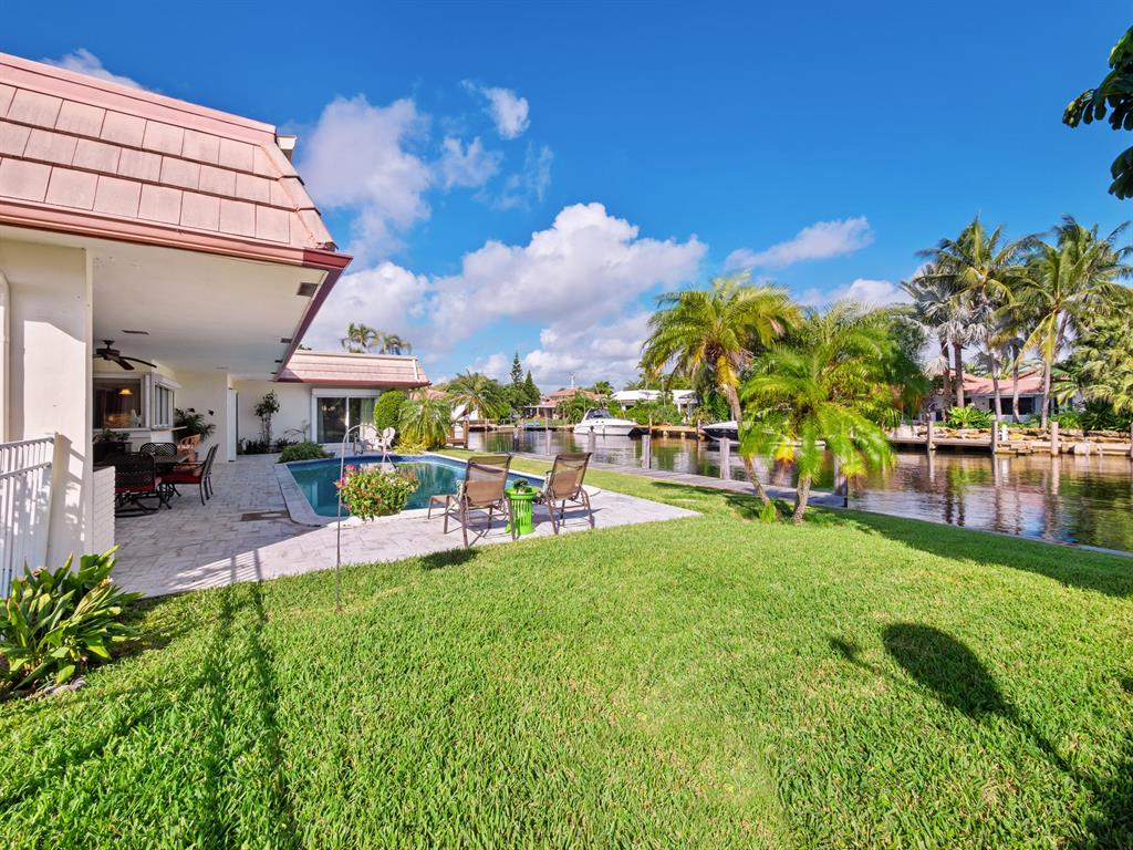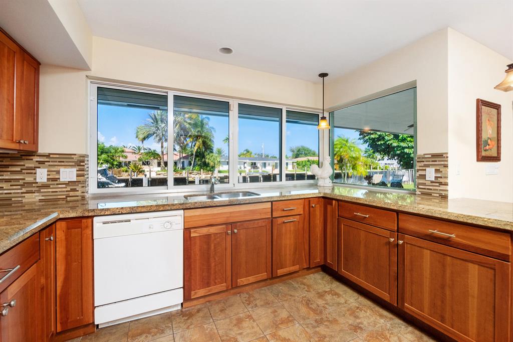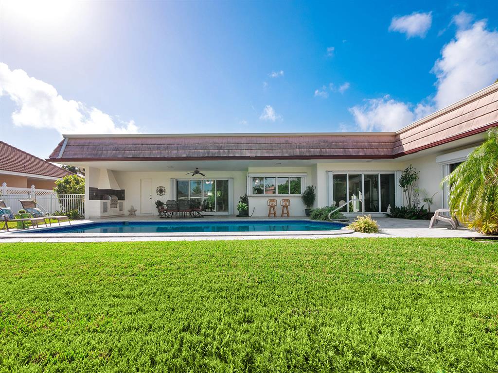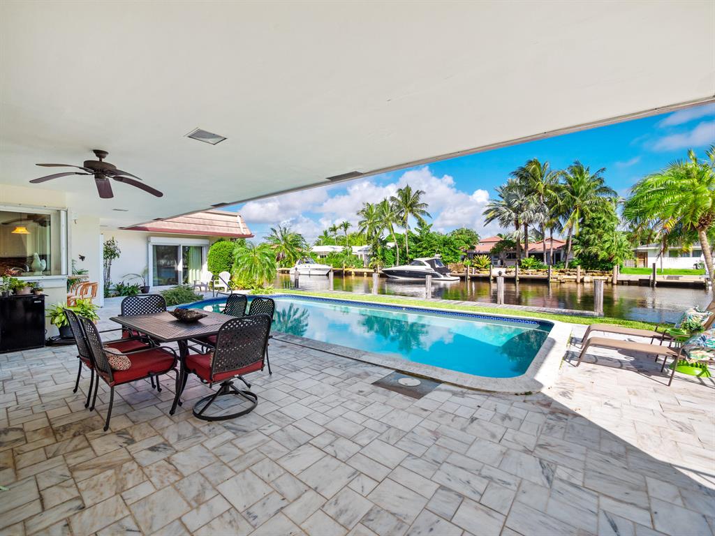 Motivated Seller! Make sure you bring your clients to this charming American ranch-style waterfront house with no fixed bridges, a 106 feet long seawall, and with its own boat dock. Located in the wonderful exclusive neighborhood of Fort Lauderdale known as The Landings, this 4,175 square foot, 4 bedrooms and 4 full bathrooms, house has a great location with a spectacular view from both the living room and kitchen. The kitchen features genuine wood cabinetry, granite counter tops, and has windows that open to conveniently serve as a bar area with outdoor seating.