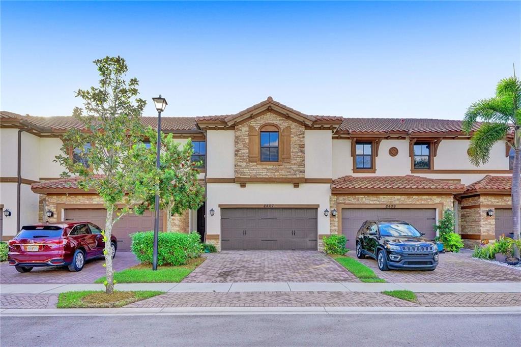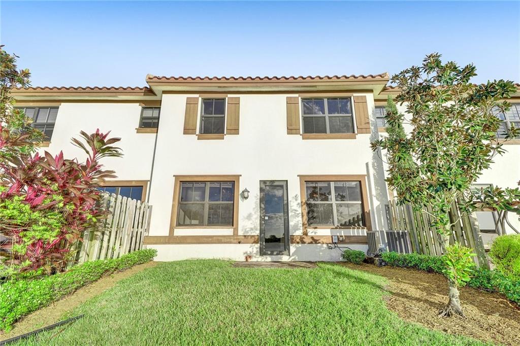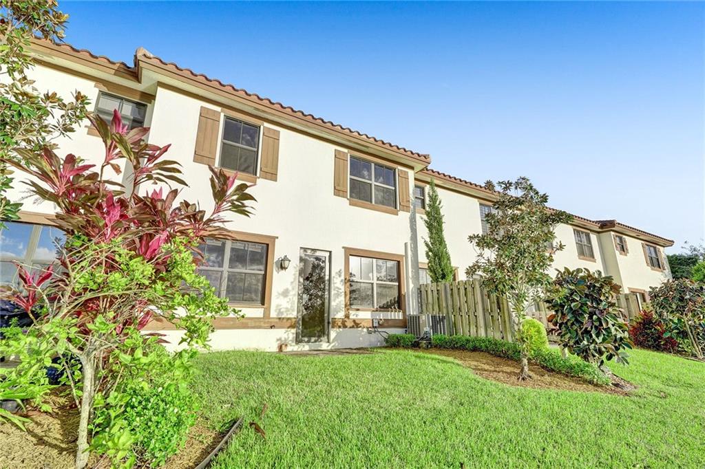 New floors! Best Value on best view in all of Town Parc @ MiraLago, 4/3.5, Laguana Model townhouse with a spectacular sunset view. Build 2015, all Concrete Block Construction, Impact Windows and doors. Floors on the 1st floor are being changed. All tiles down stairs and laminate stairs and upstairs, granite counter tops, stainless appliances, recessed lighting, Moen faucets, larger fenced yard. Large master bedroom w/ walk-in closet plus 3 additional roomy bedrooms and one is an en-suite. 2-car attached garage & walking distance to the community pool. Gated community, A+ schools, residents also have access to resort style facilities like sports courts, pool, gym, billiards & more at MiraLago