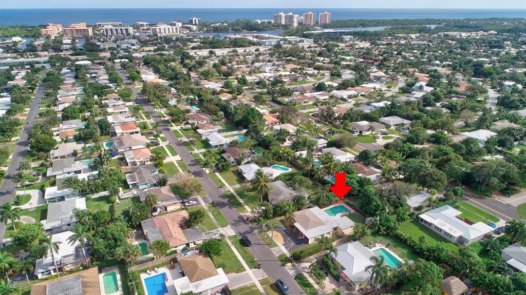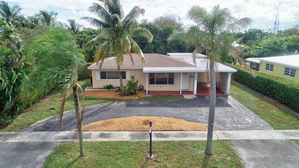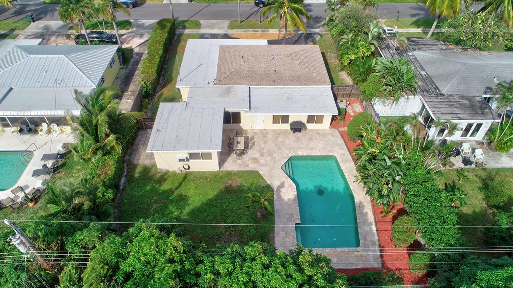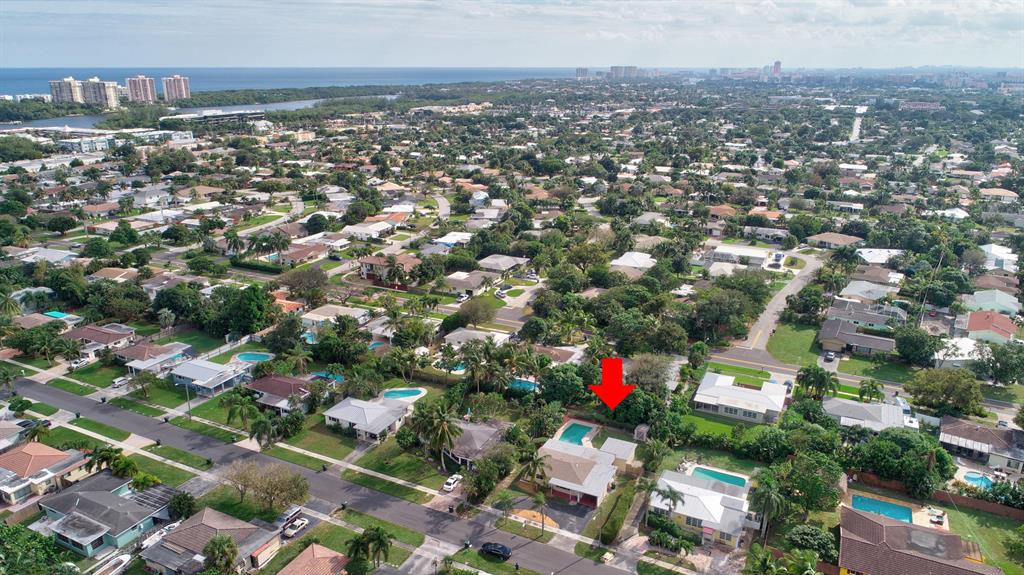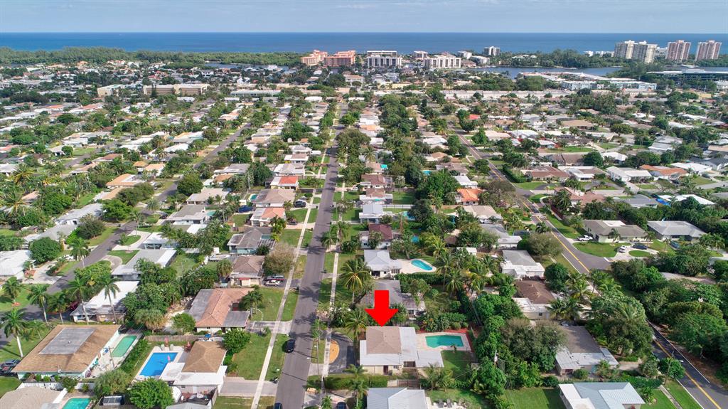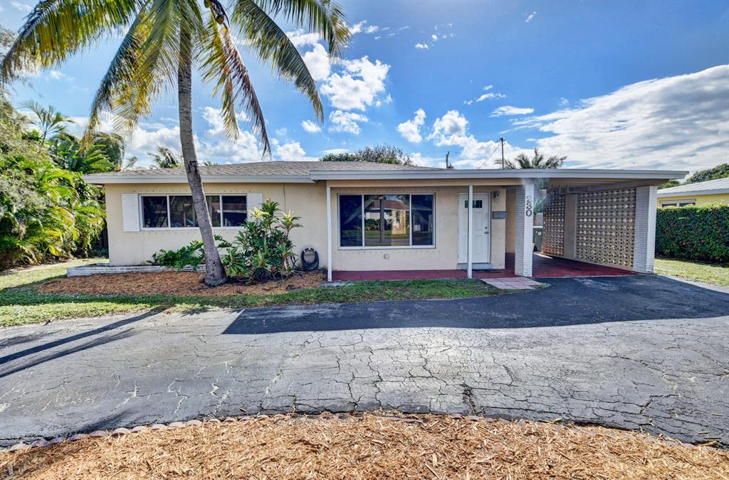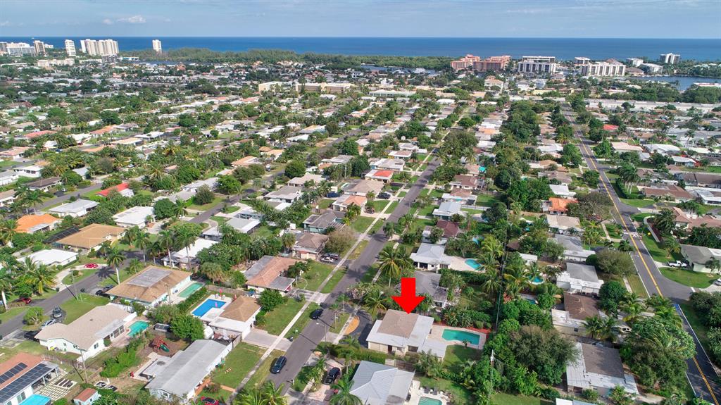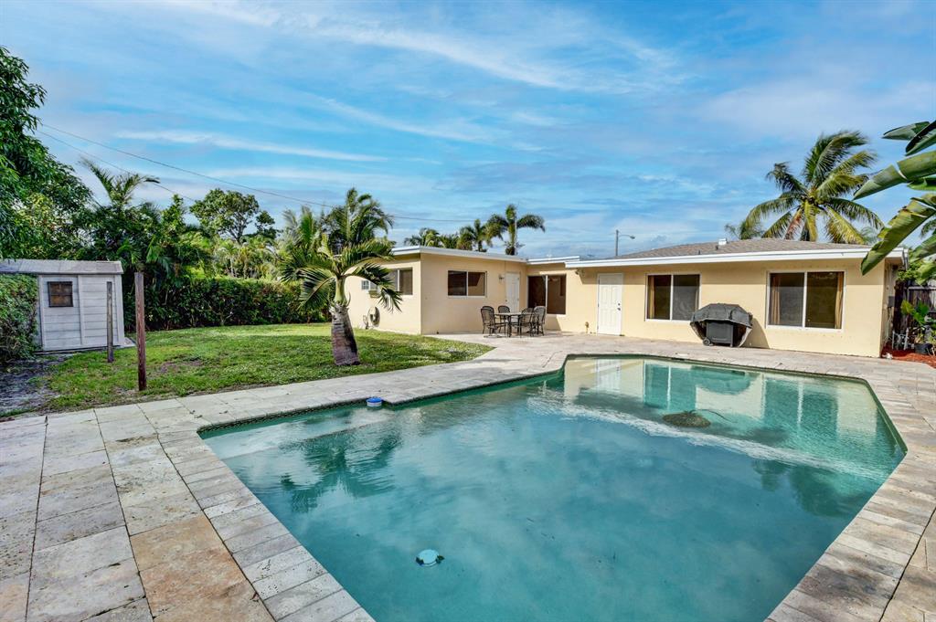 This charming 3 bed 2 bath pool home is in one of the hottest Neighborhoods in East Boca. Featuring full hurricane protection and a generator hookup (Portable generator conveys), beautiful wood-look porcelain tile floors throughout, brand new roof (2020), New A/C (2019), updated appliances, and a new electrical panel. The Kitchen features granite countertops and real wood cabinetry. Large pool with a gorgeous travertine pool deck and plenty of additional yard space. Walking distance to shopping and entertainment and a quick bike ride to the beach! With a circular driveway, natural gas, and a quiet street, this home is the perfect beach bungalow getaway!