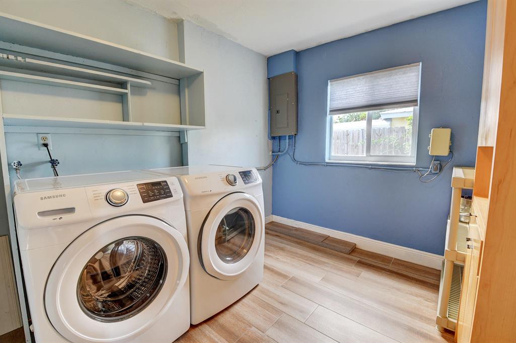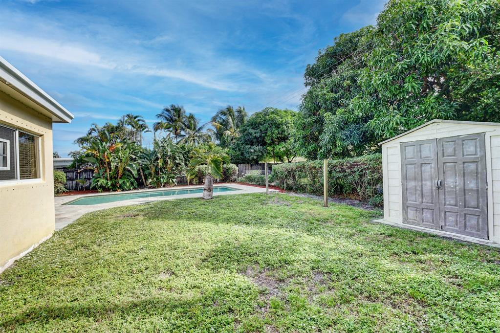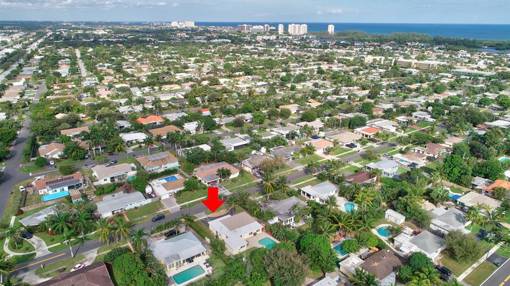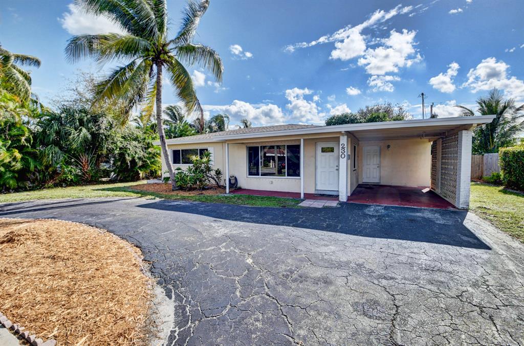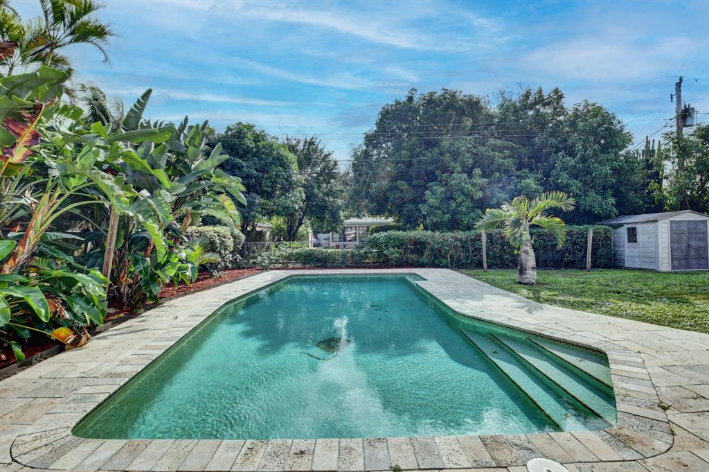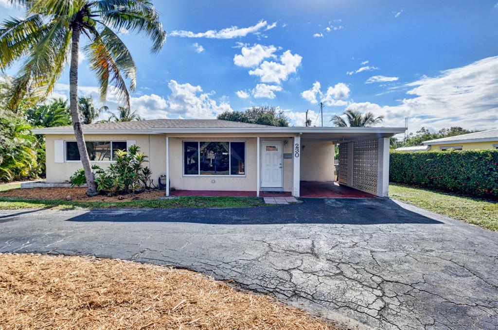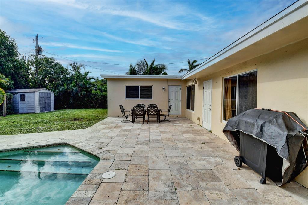This charming 3 bed 2 bath pool home is in one of the hottest Neighborhoods in East Boca. Featuring full hurricane protection and a generator hookup (Portable generator conveys), beautiful wood-look porcelain tile floors throughout, brand new roof (2020), New A/C (2019), updated appliances, and a new electrical panel. The Kitchen features granite countertops and real wood cabinetry. Large pool with a gorgeous travertine pool deck and plenty of additional yard space. Walking distance to shopping and entertainment and a quick bike ride to the beach! With a circular driveway, natural gas, and a quiet street, this home is the perfect beach bungalow getaway!
