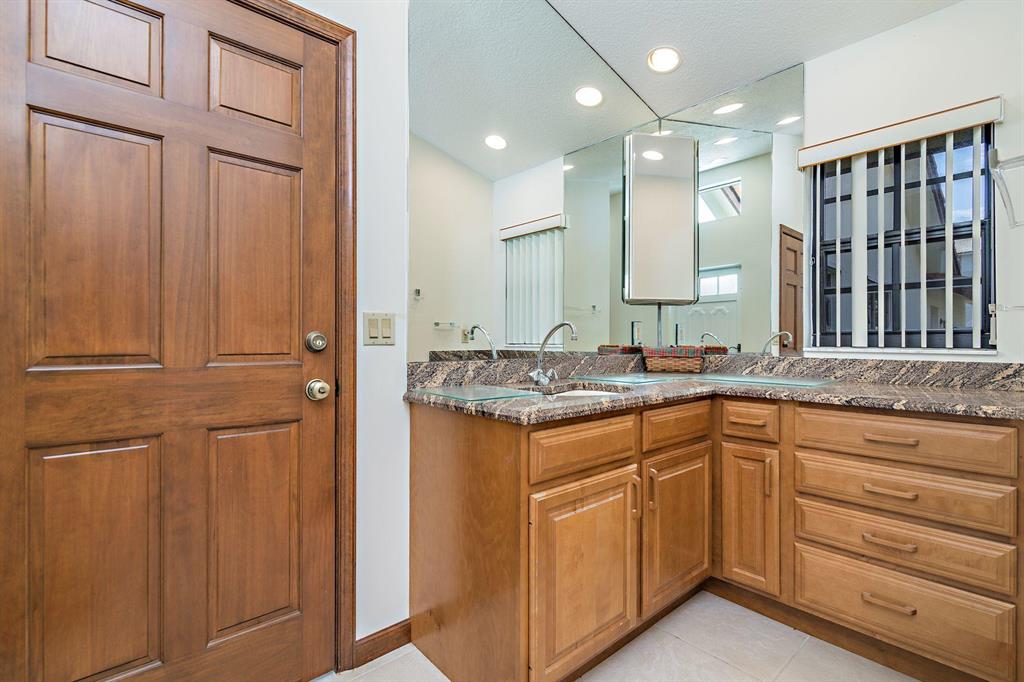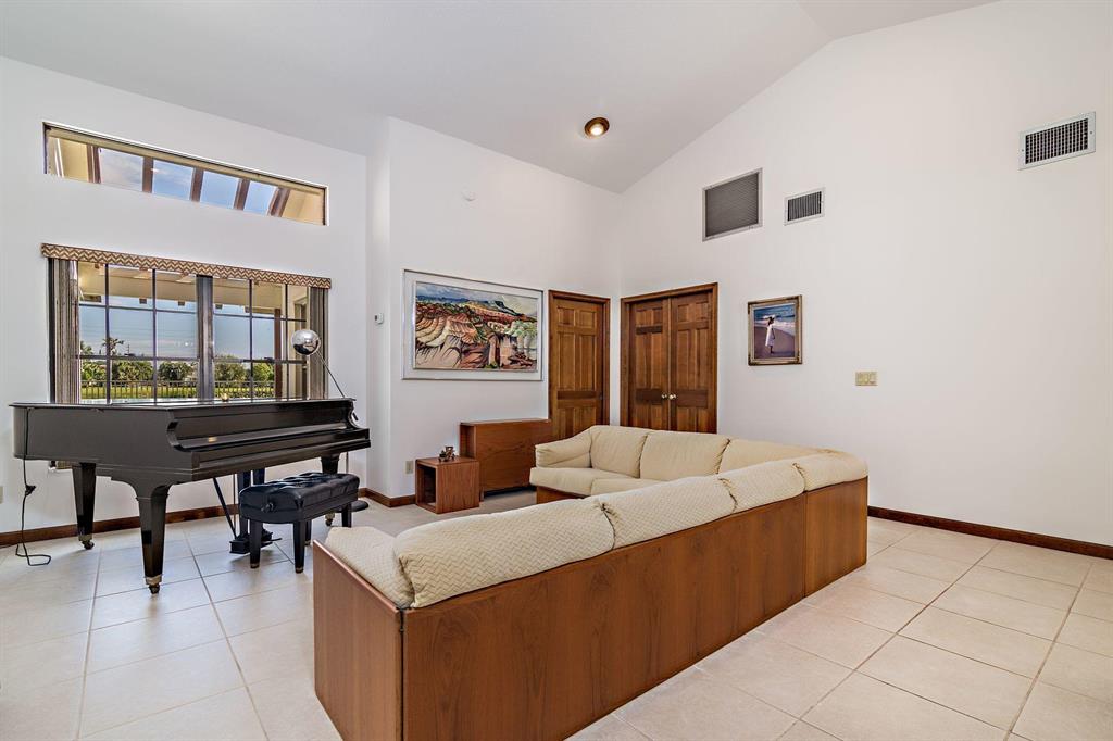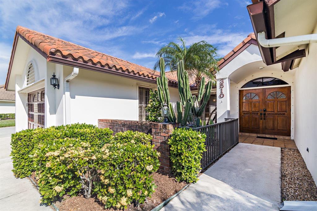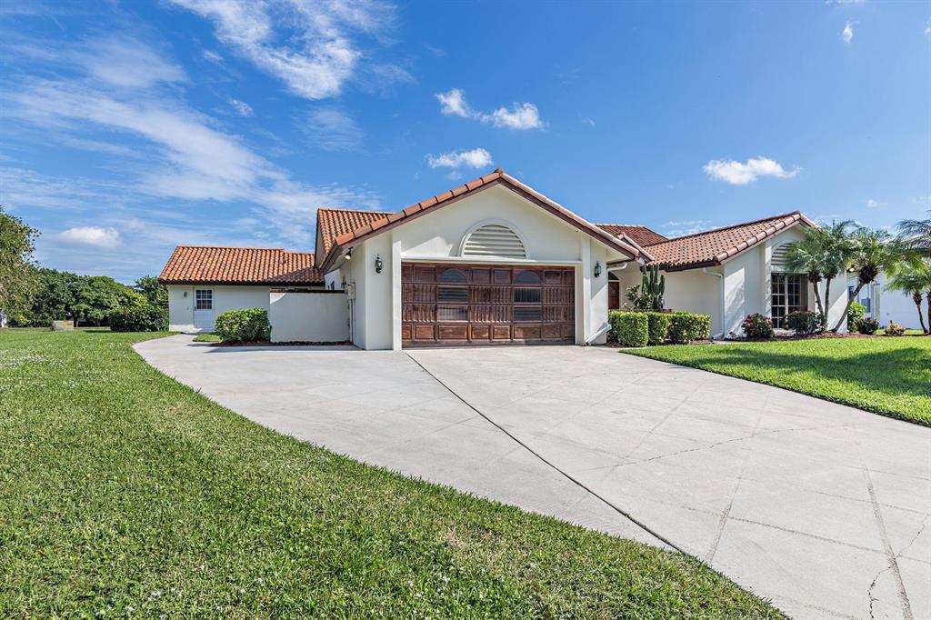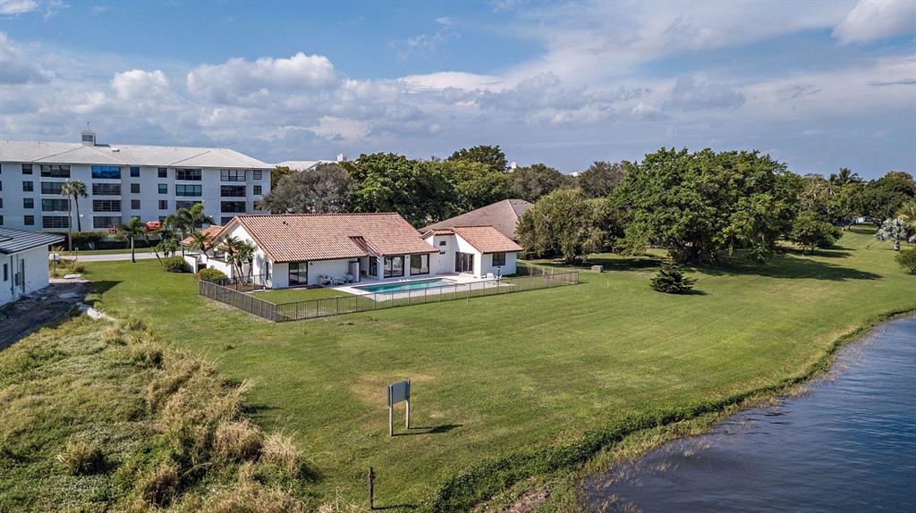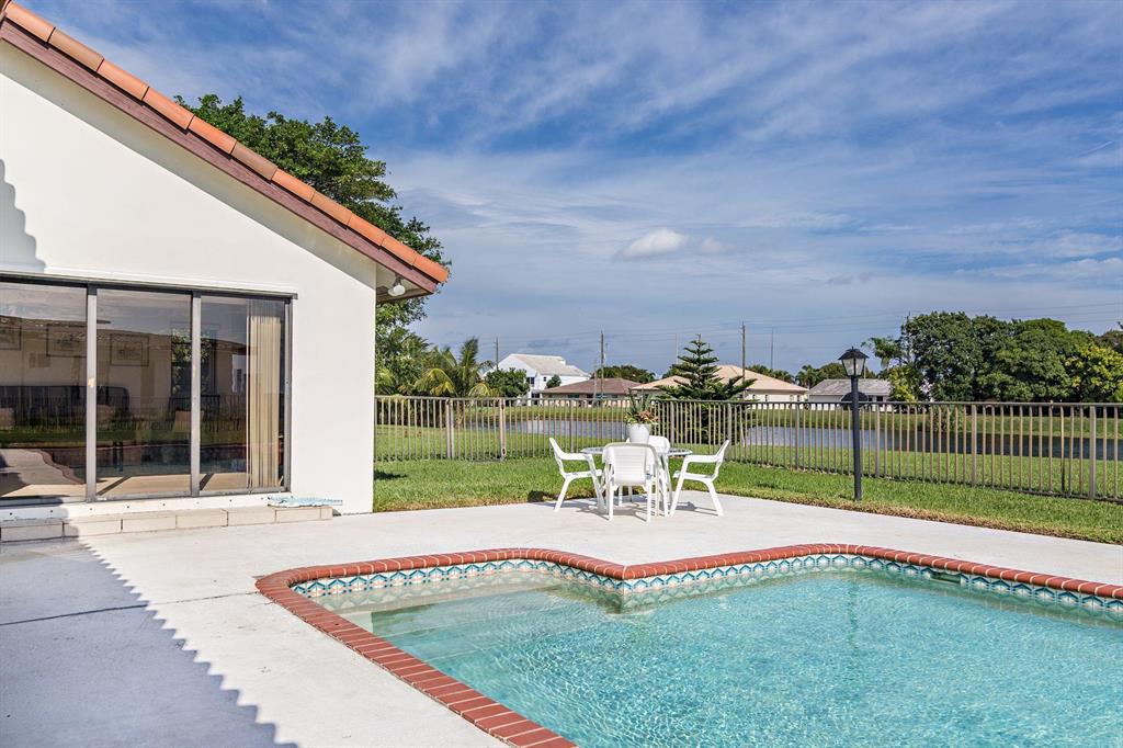 First time on the market! Centrally located in a gated and manned community, this custom built, beautiful home will not disappoint! Featuring 4 bedrooms / 3 bathrooms, separate office and high ceilings on an oversized and fenced backyard overlooking a peaceful lake. The ''guest suite'' or cabana can be used as a mother-in-law area, boasting its own kitchenette and separate entrance. Other desirable elements include private pool, 2-car garage, large driveway, sun room, stained wood doors and trim, granite counter tops and lovely views. Convenient location near Whole Foods, Outlet Mall, PBI Airport, WPB downtown and beaches. Low HOA. Golf membership is not mandatory. Don't miss out!