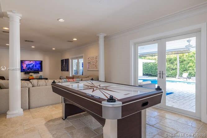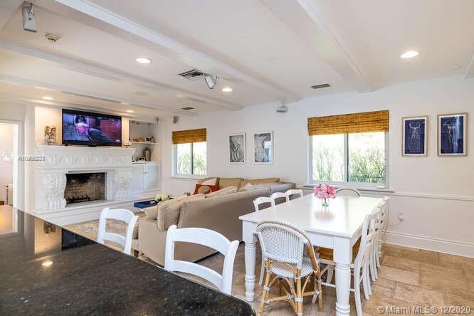 Beautiful 4B/3B home in the heart of Pinecrest! Amazing layout - perfect for entertaining with open kitchen/family room with fireplace and living/dining room. Travertine marble floors throughout living areas, wood floors in bedrooms. Master suite complete with two walk-in closets + cozy den, office or exercise room! Portion of garage was converted to make small office. Fabulous pool with covered patio. Plantation shutters, Impact windows and doors and 2020 roof. Move into this gem - don't miss out!!